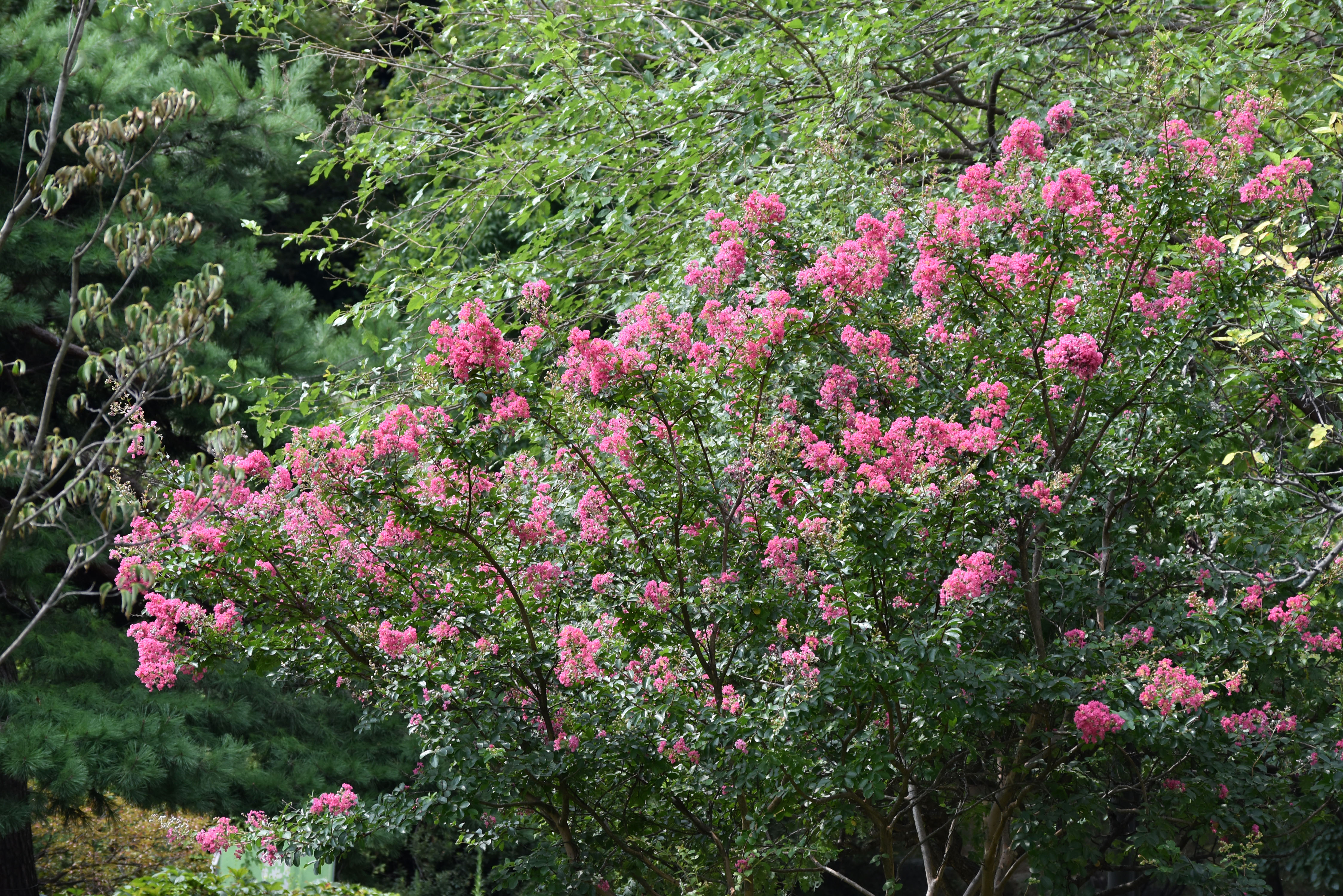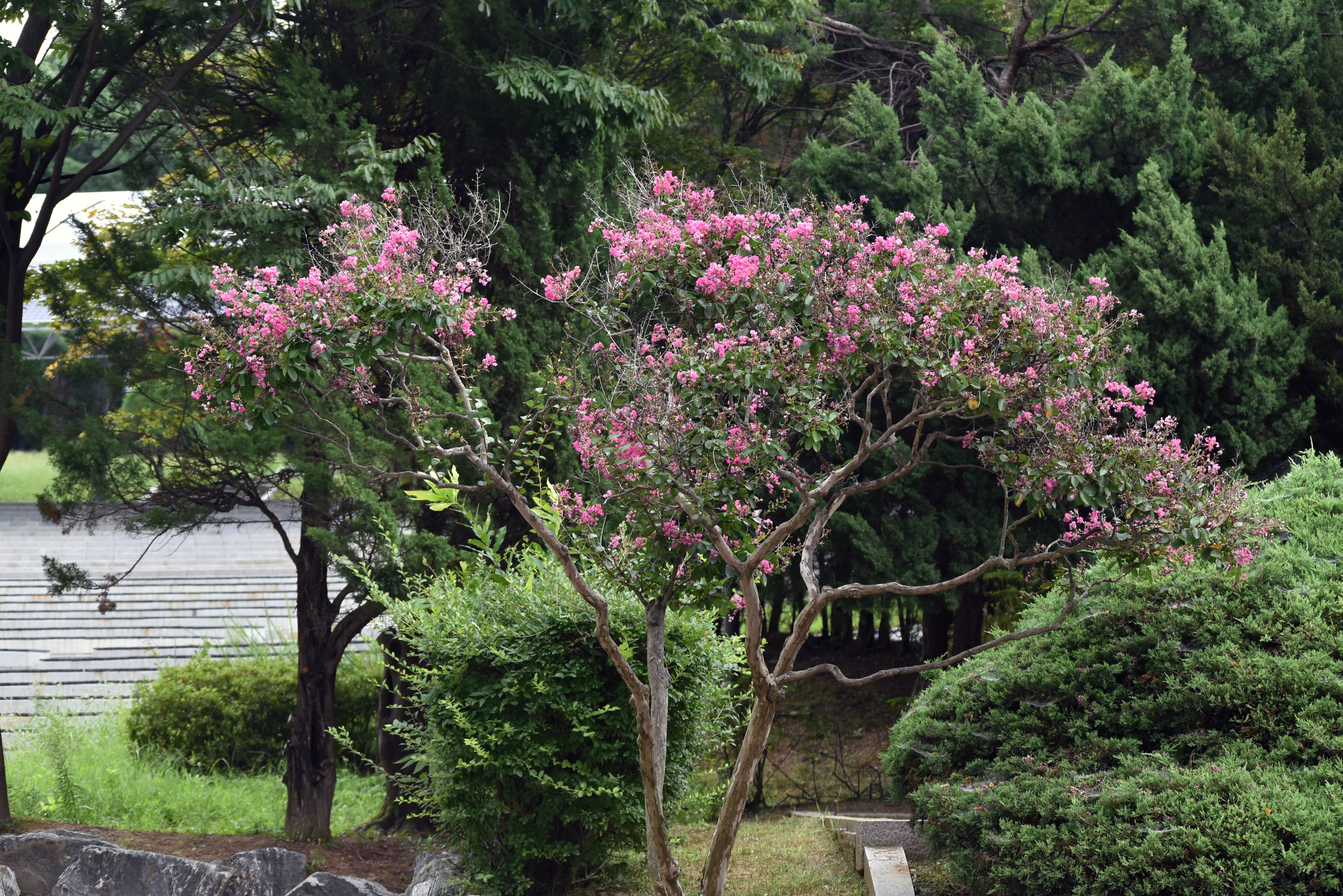 실제로 보면 배롱나무 꽃 색상이 훨씬 아름다운데 사진으로 담으니 어두운 적색으로 나와