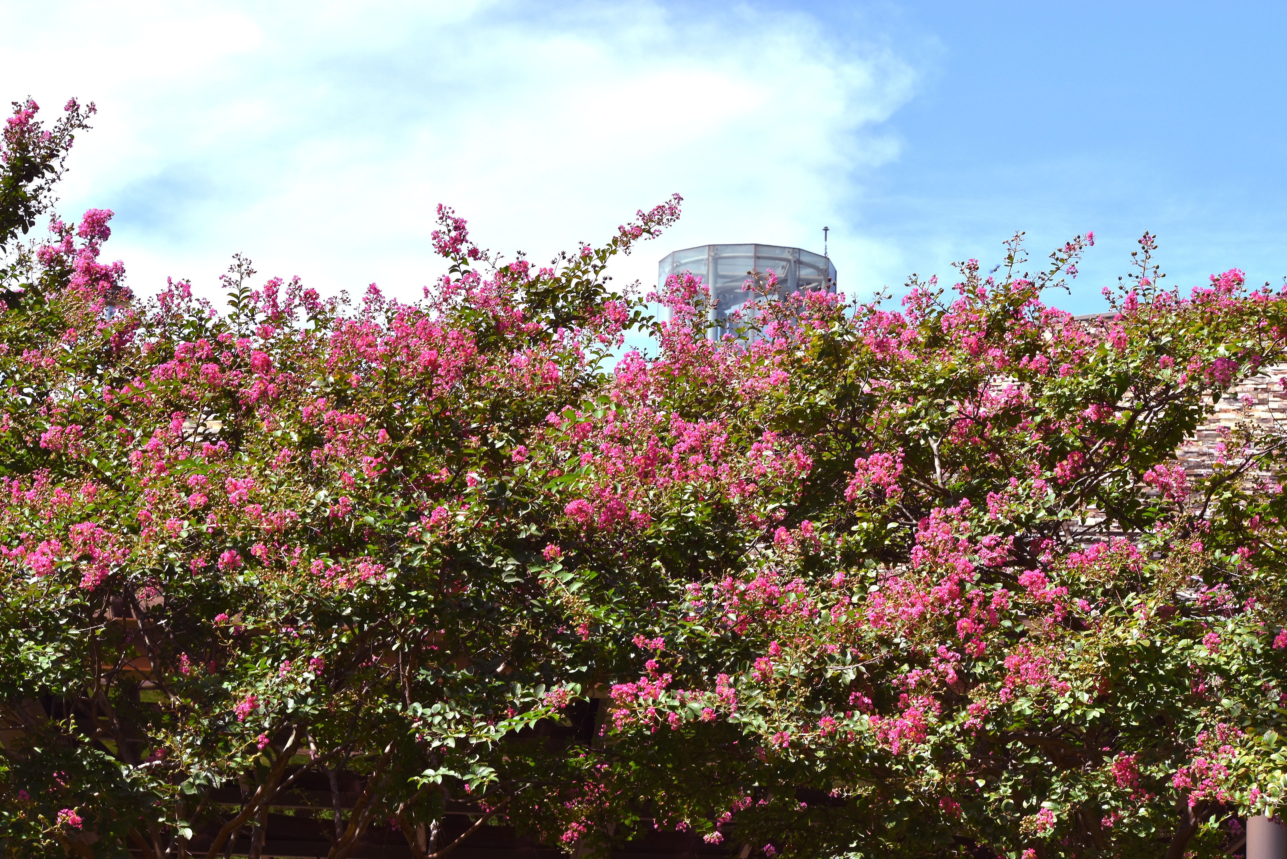 며칠 전에 올렸던 해바라기와 배롱나무 꽃이 절정기를 살짝 넘긴 모습을