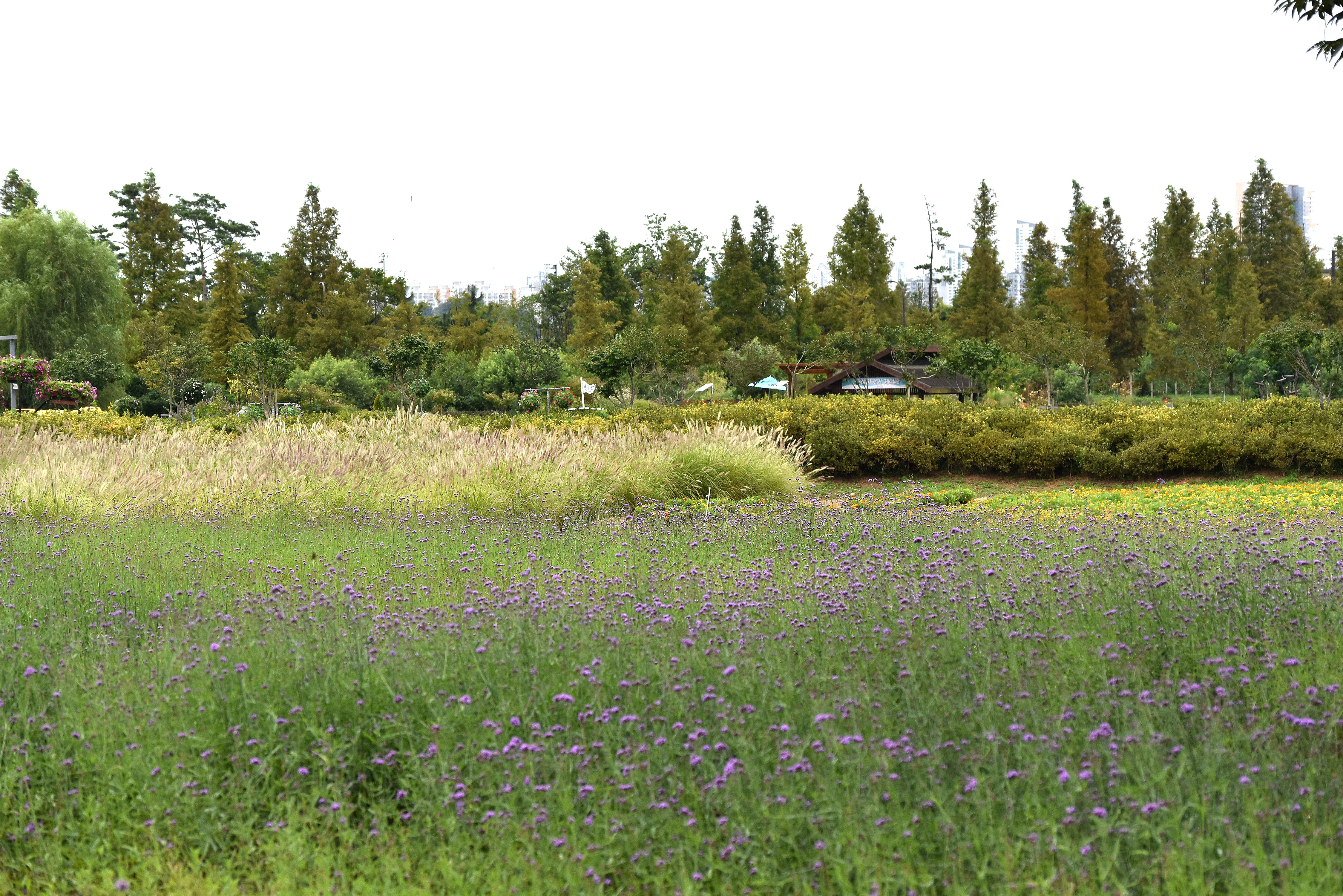 버베나와 황화코스모스, 메리골드등 일부 꽃들은 아직 만개 상태는 아니였지만 대신 해바라기나