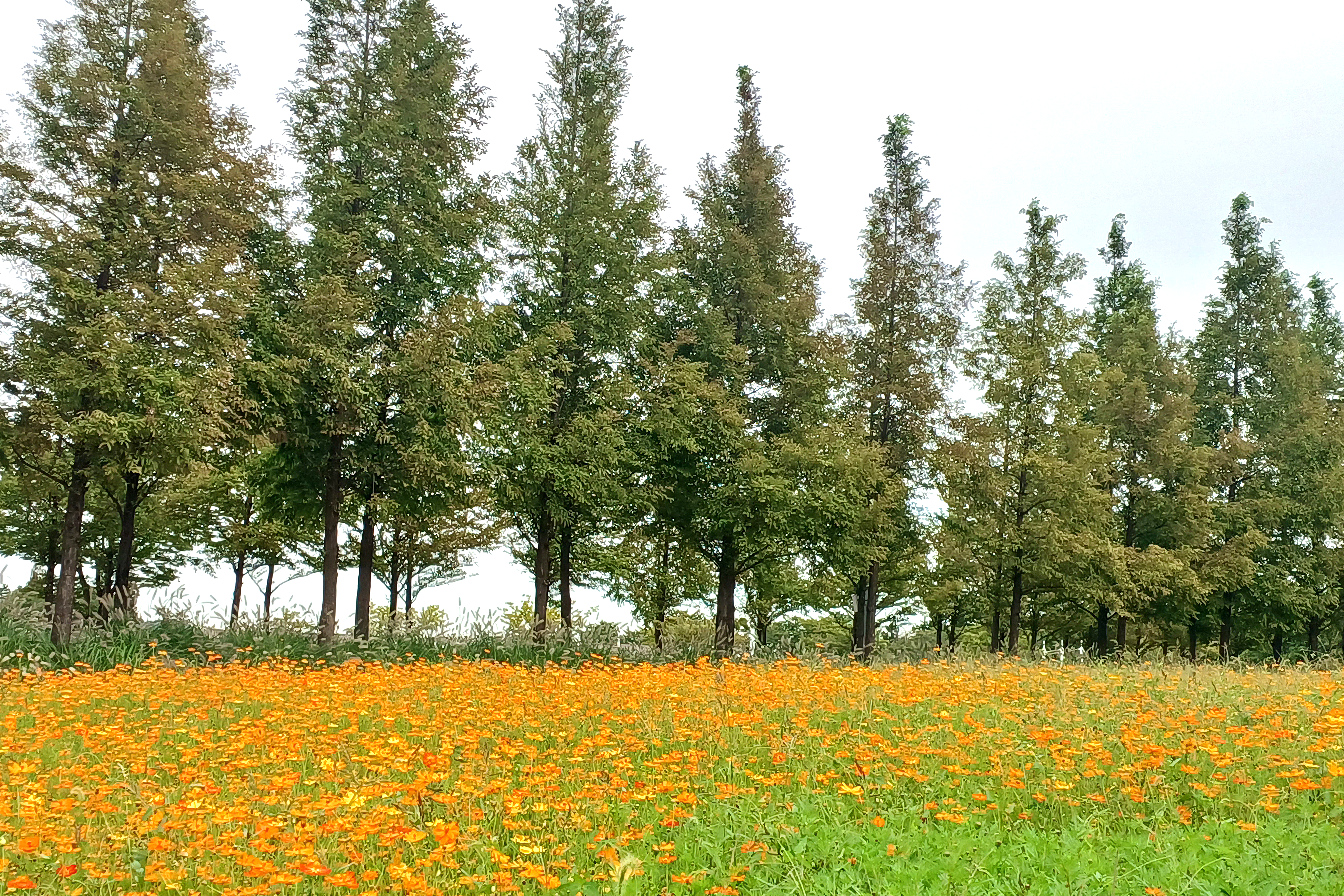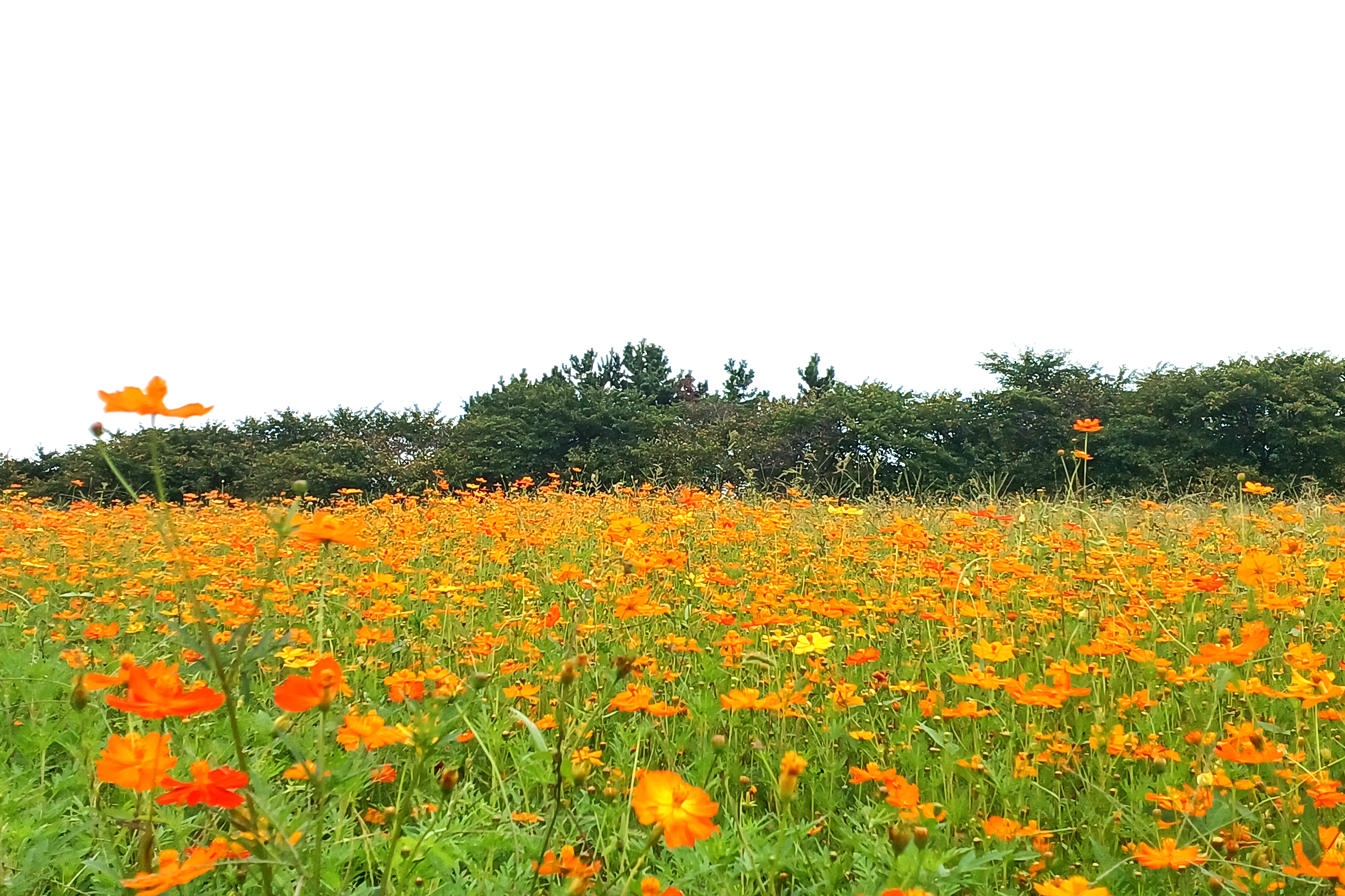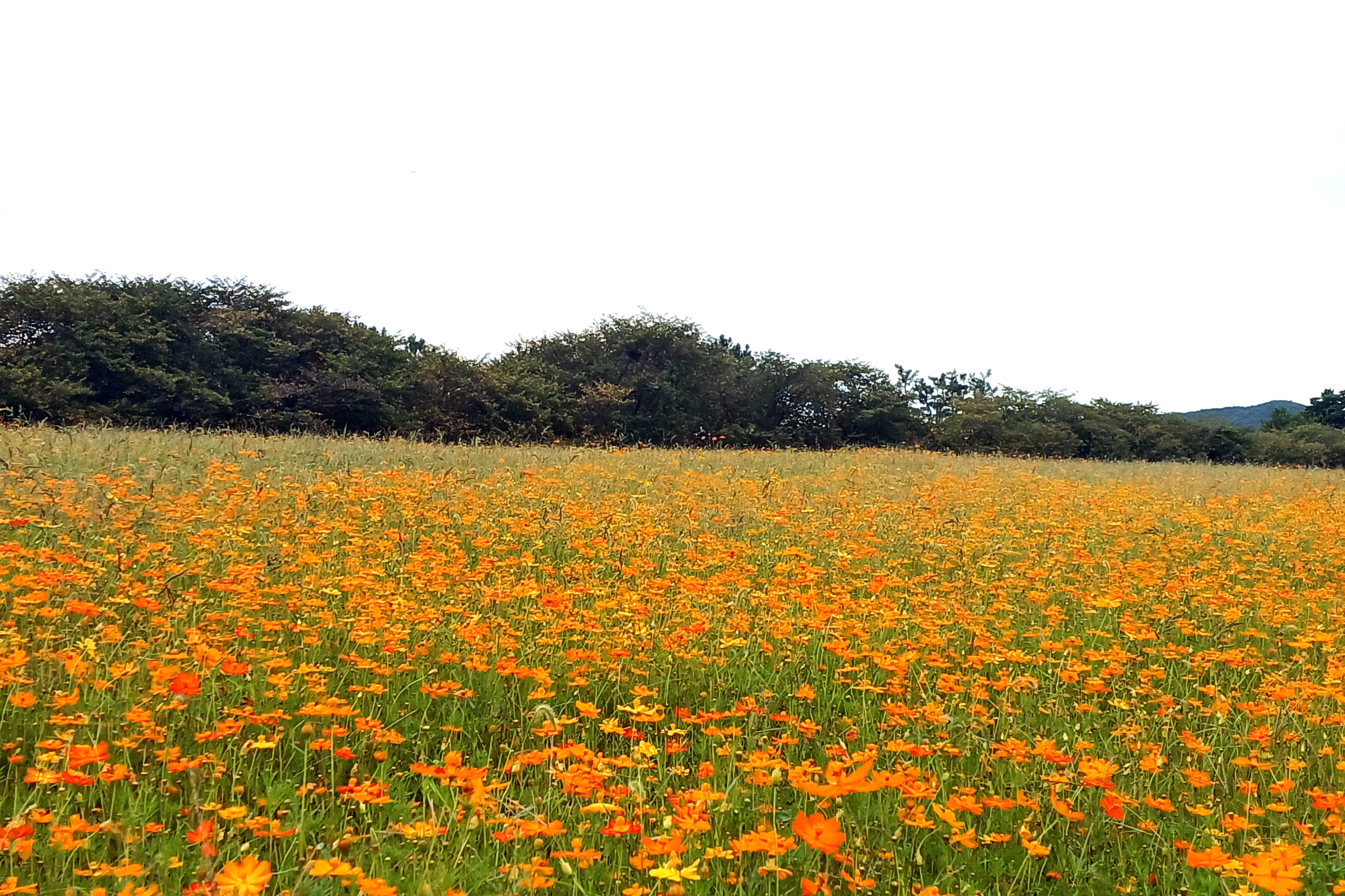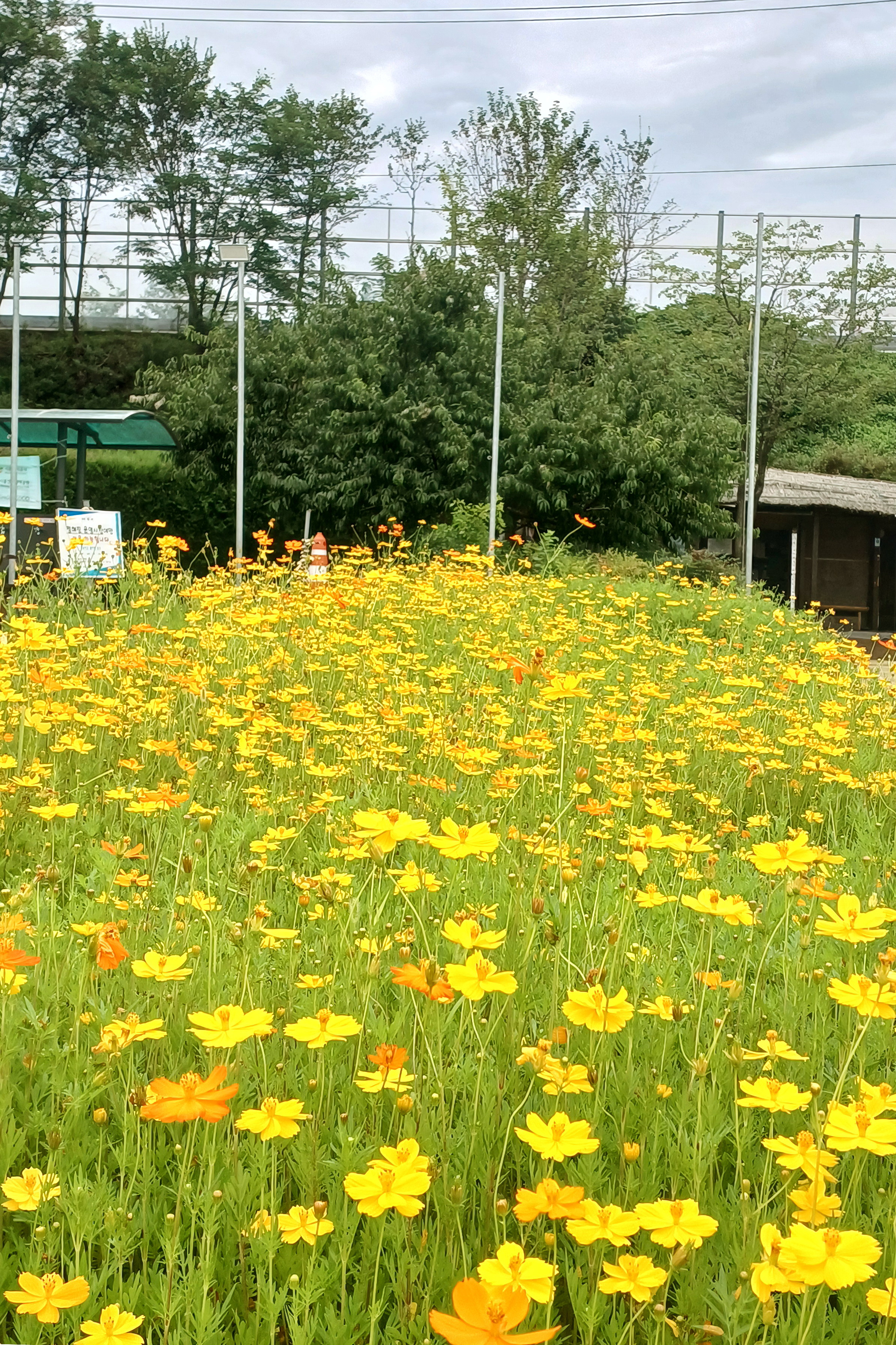 일반 황화코스모스는 대부분 주황색이나 주홍색인데 주차장 끝자락 쉼터 앞 황화코스모스는 거의 노랑색이다.