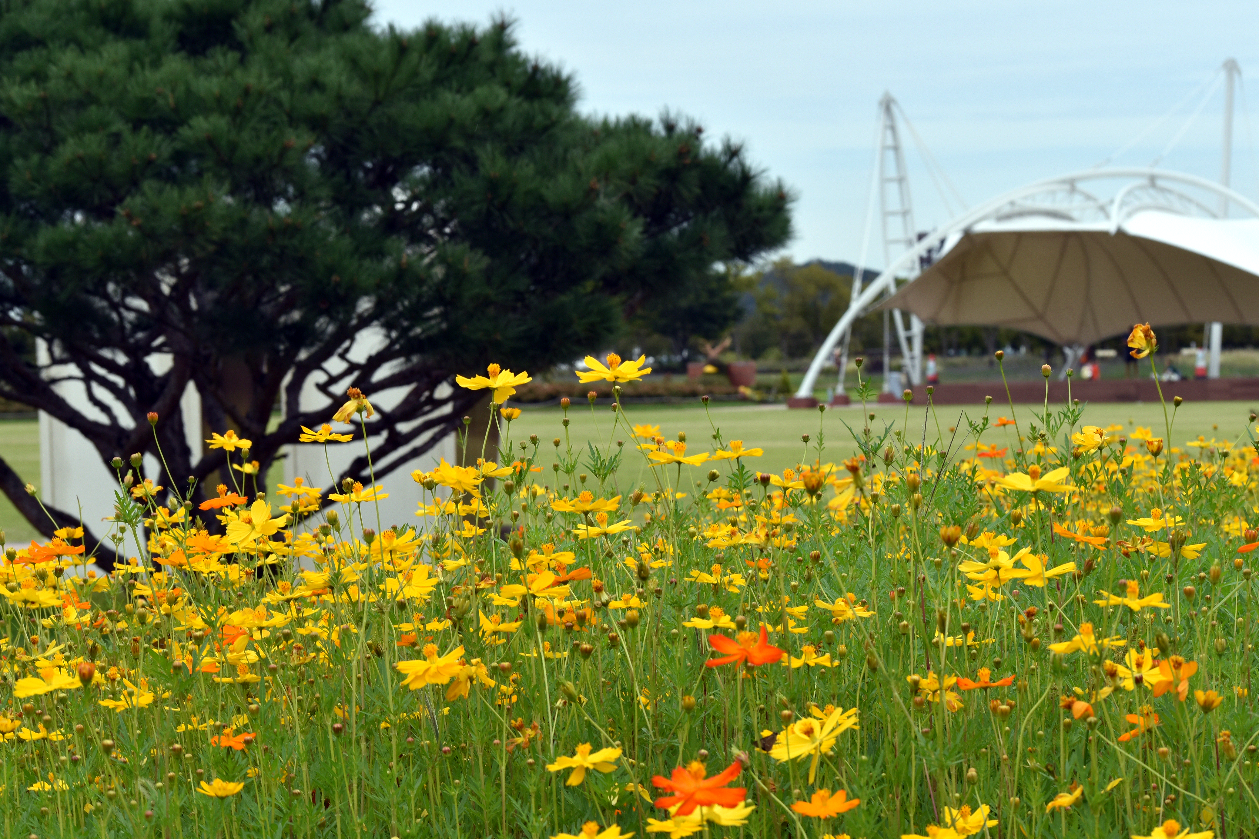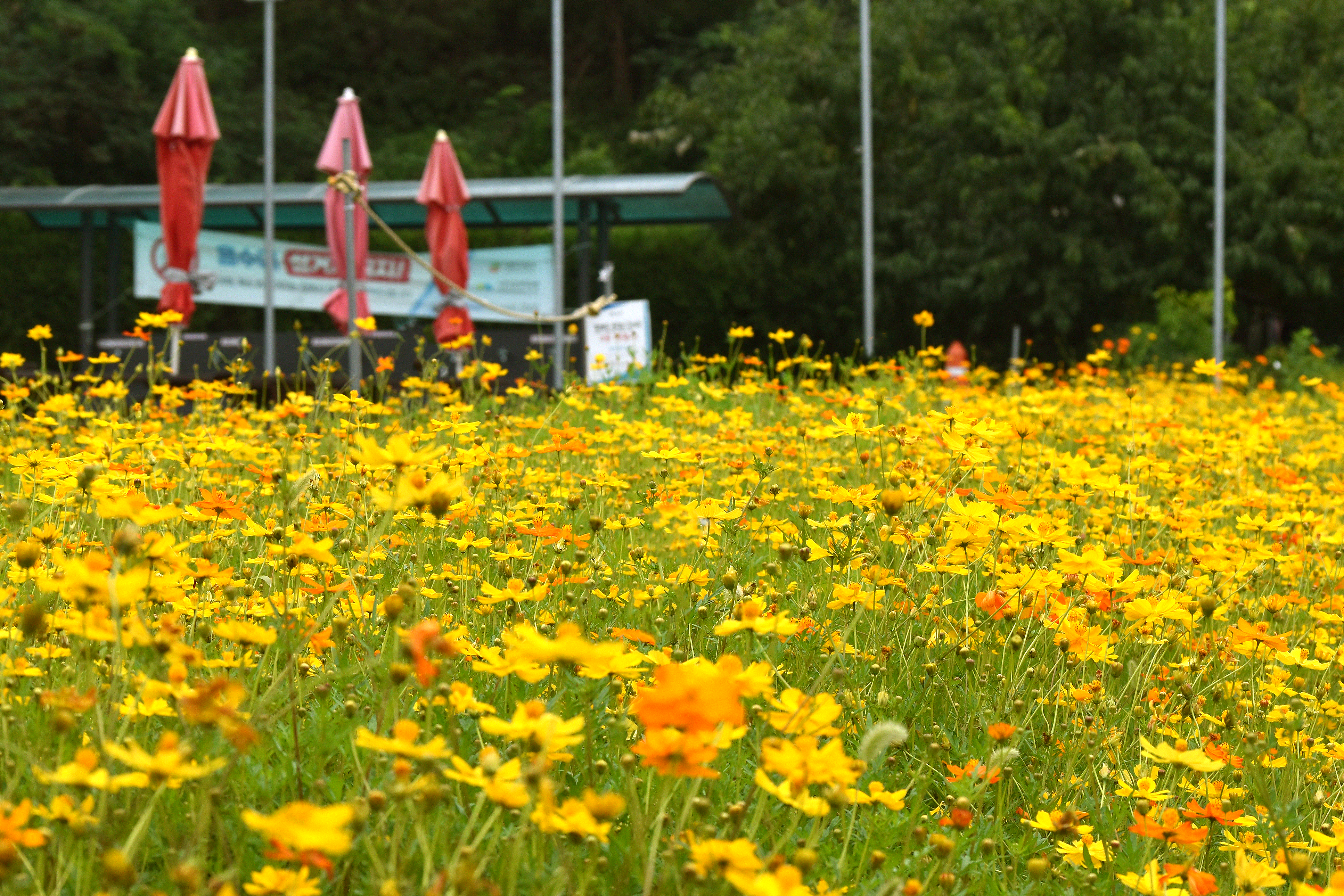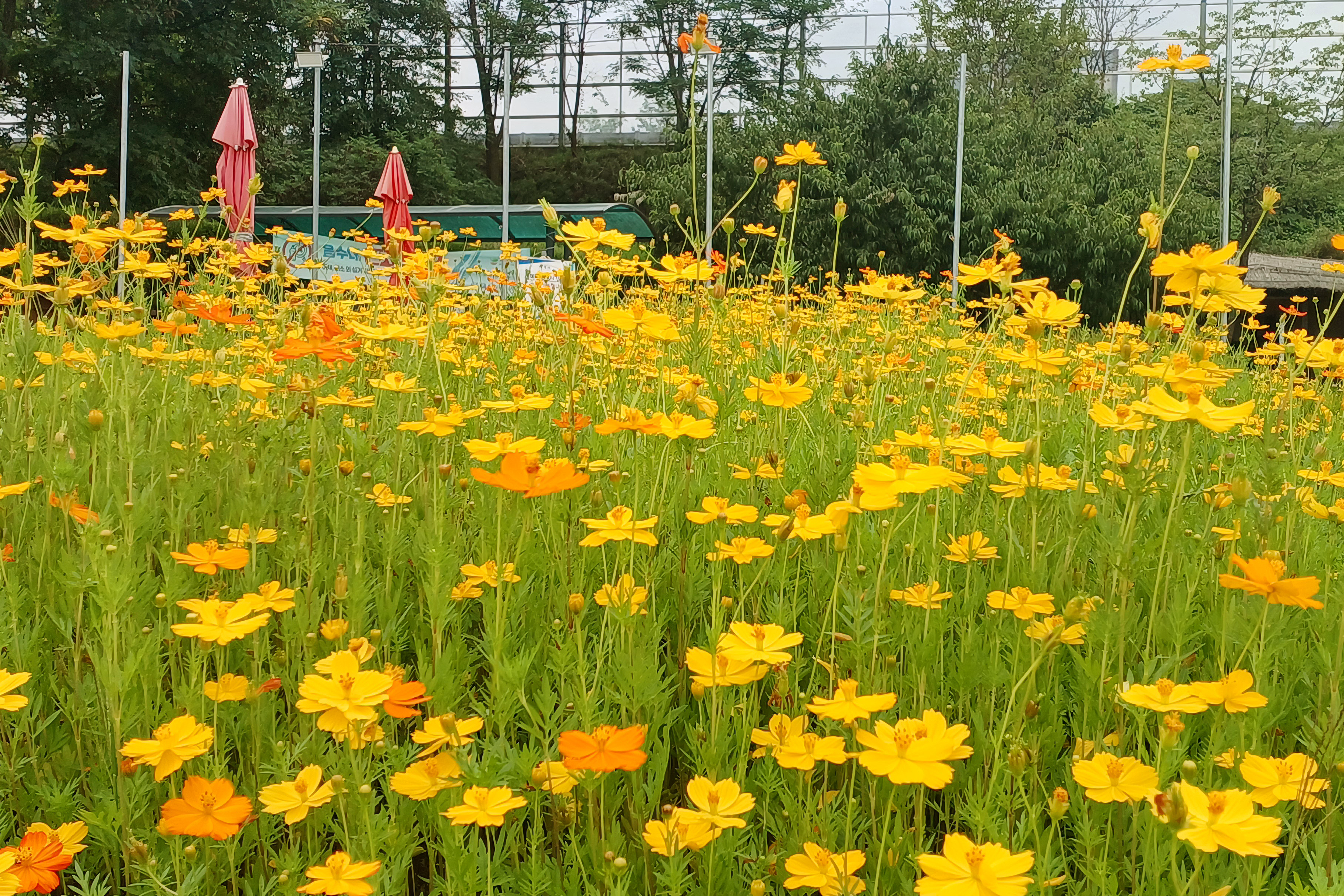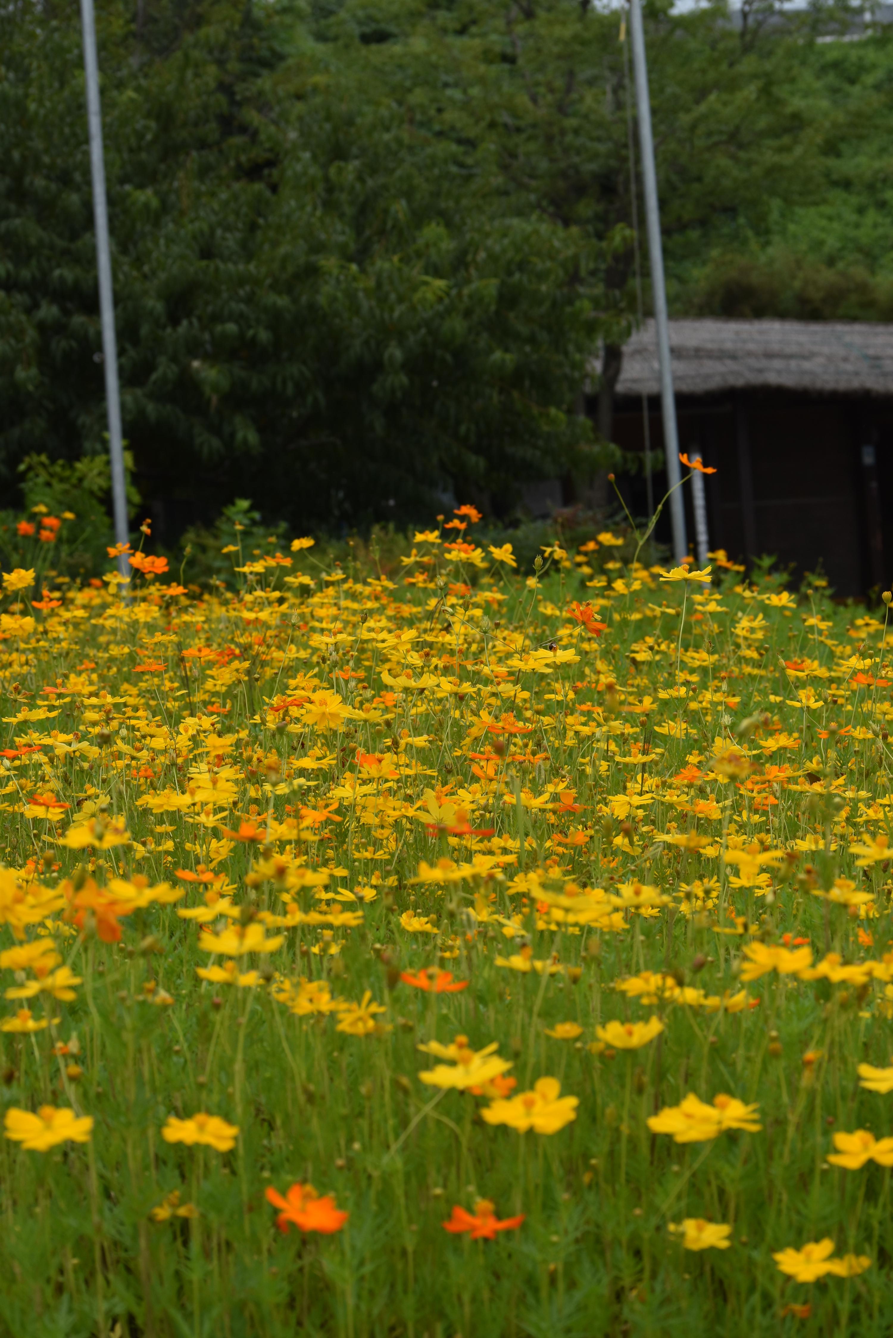 예전에는 일반 코스모스가 있었는데 올해는 황화코스모스로 교체했다