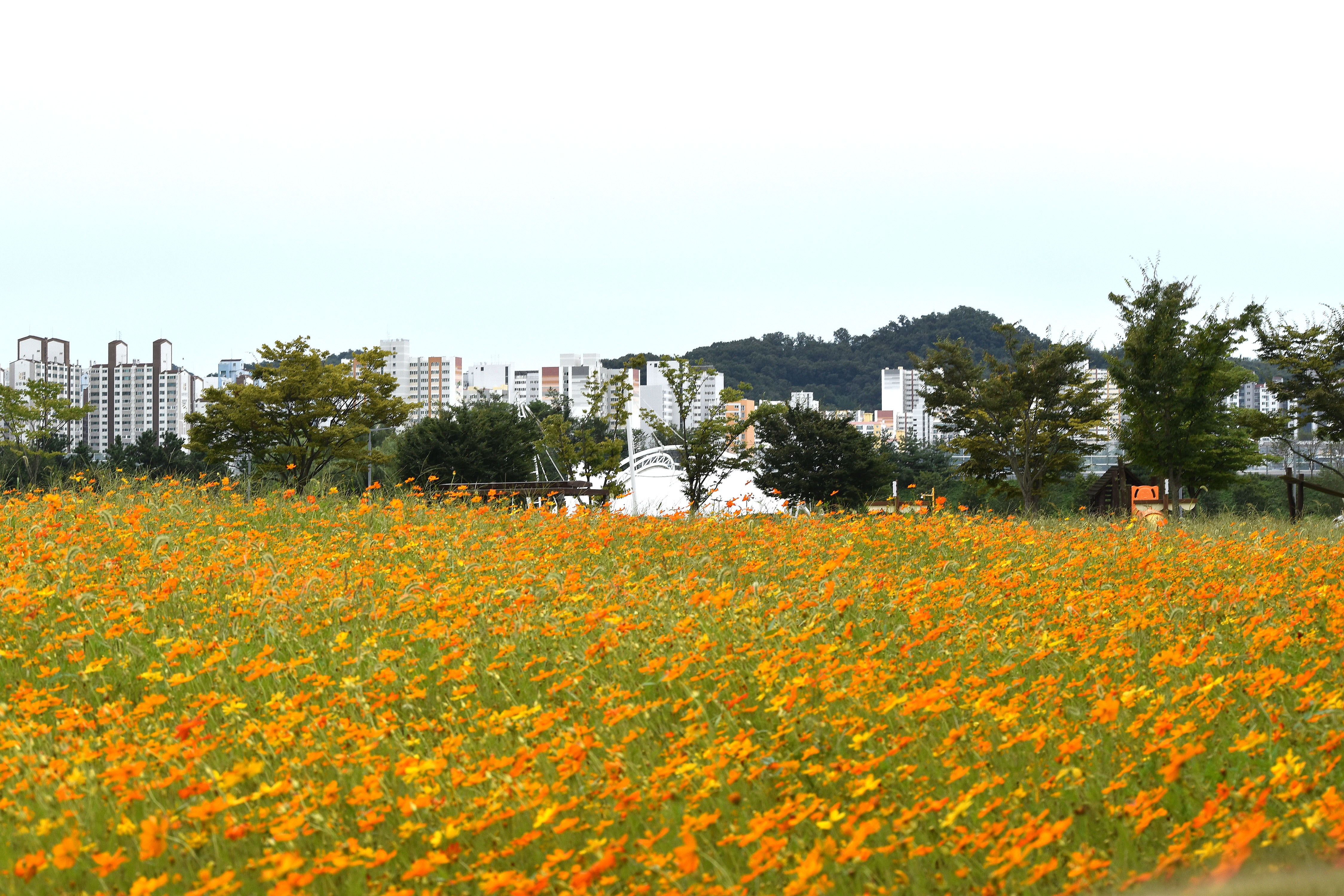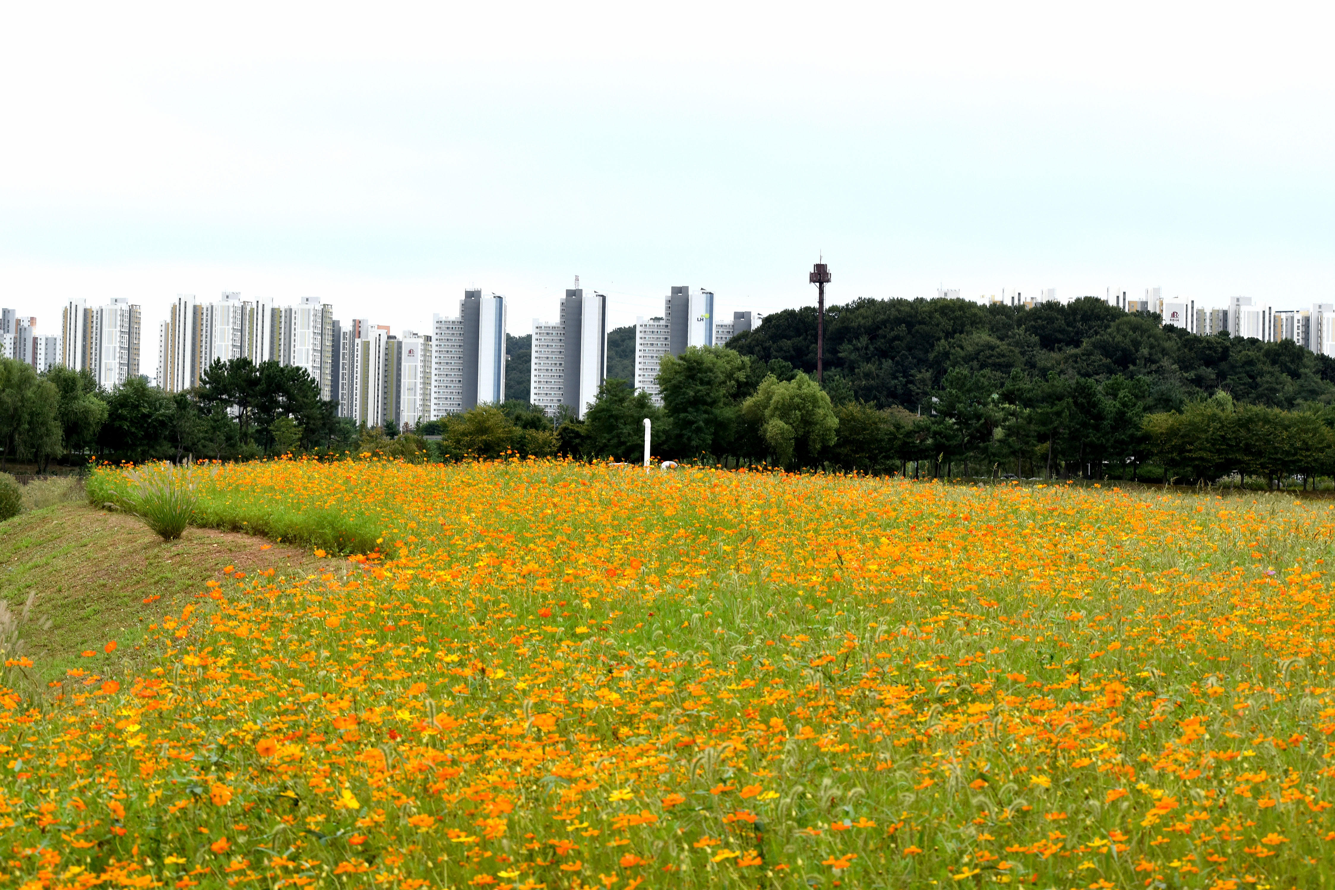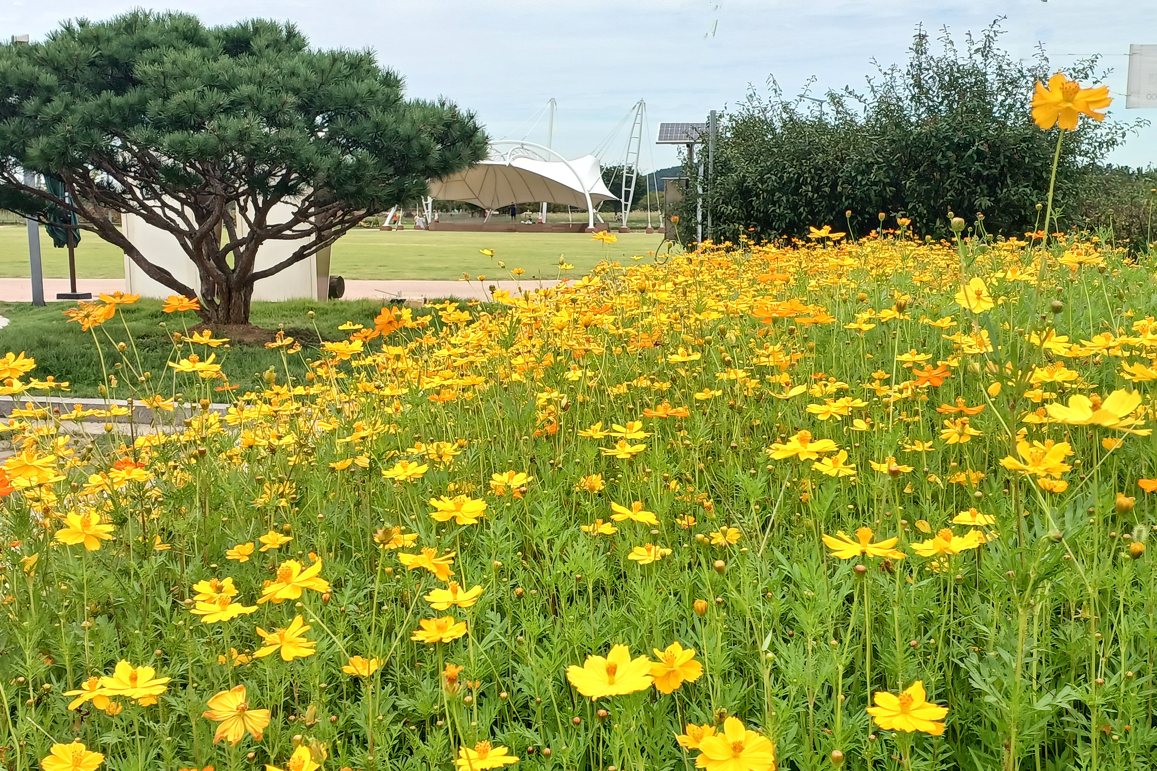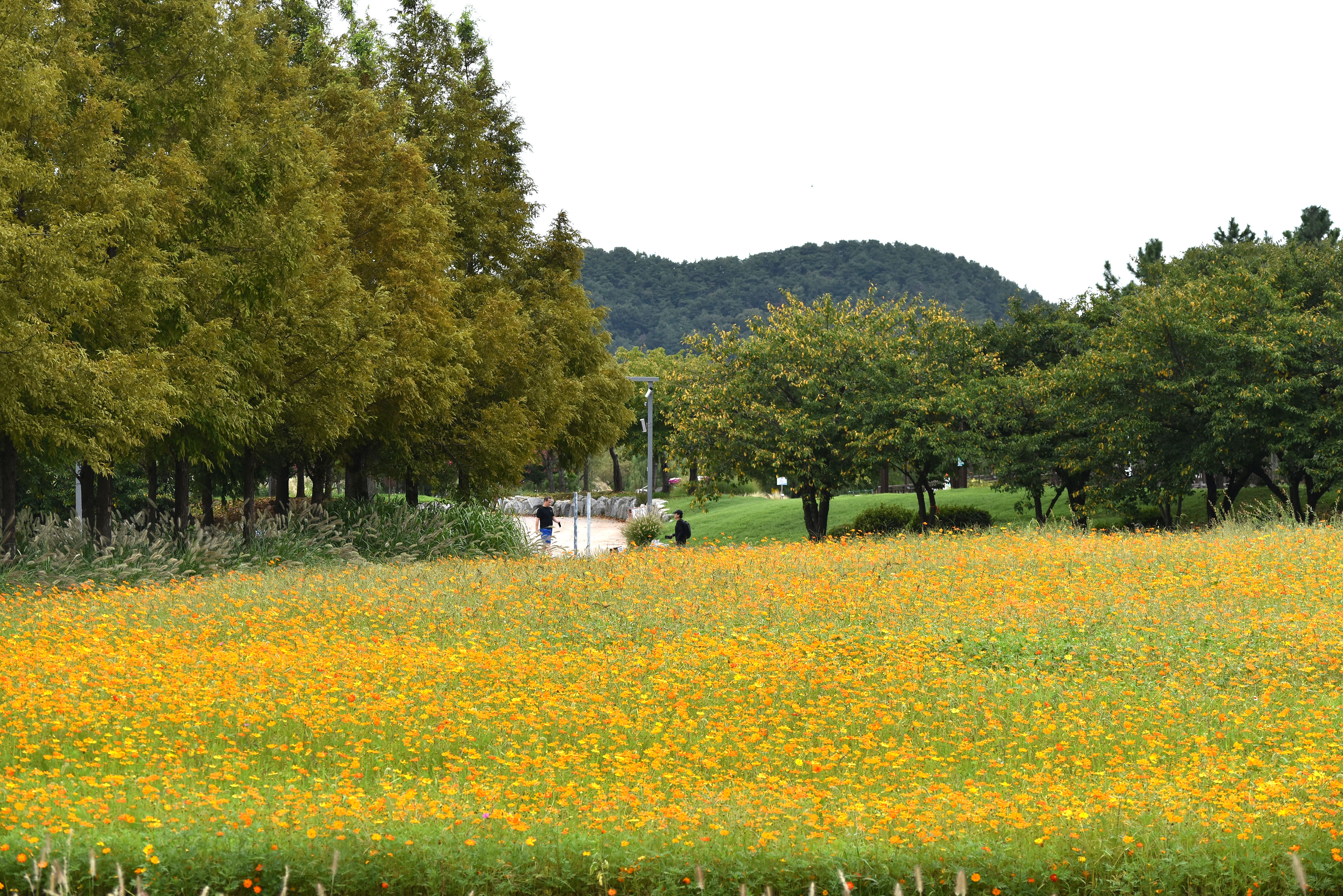 예전에는 일반 코스모스가 있었는데 올해는 황화코스모스로 교체했다