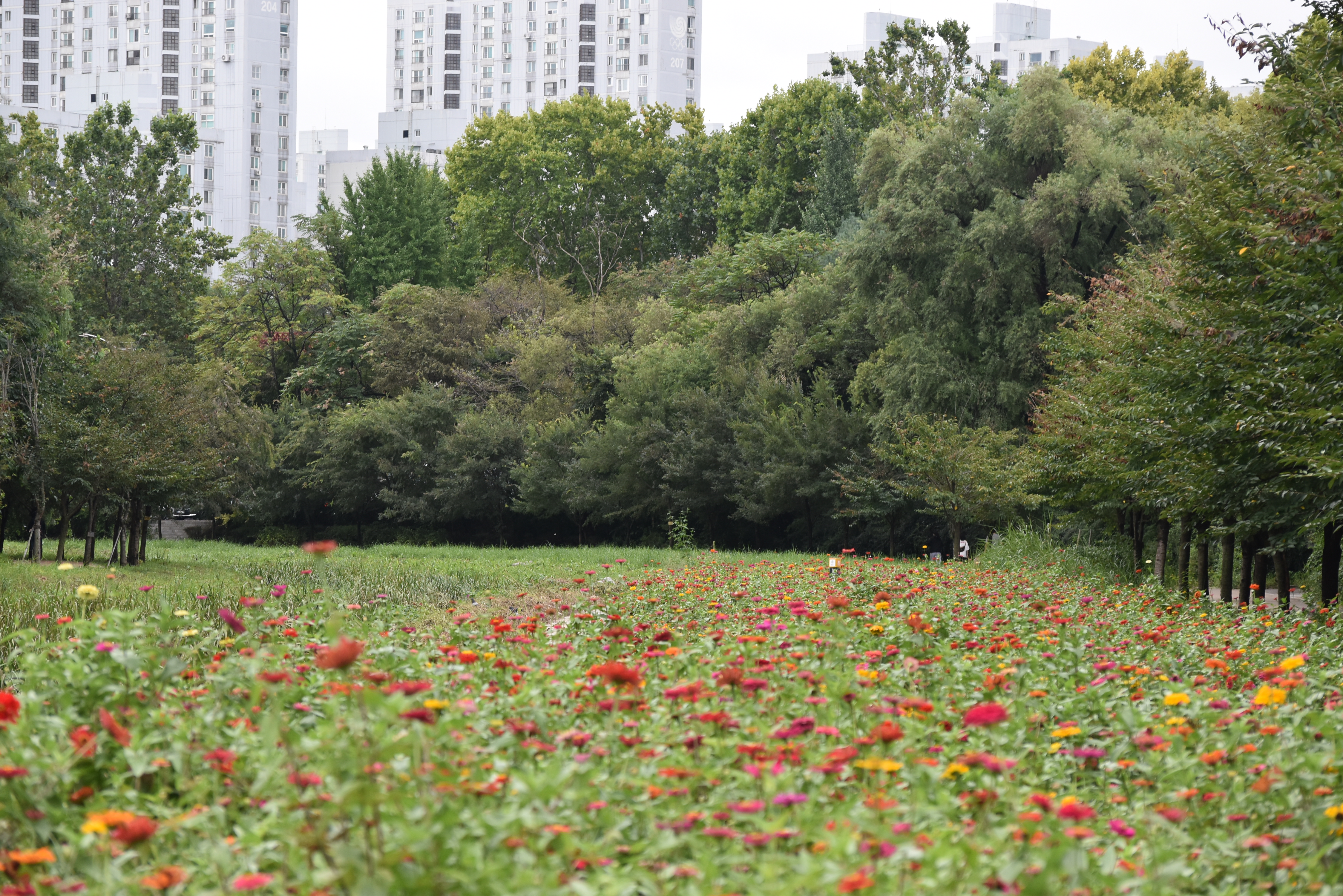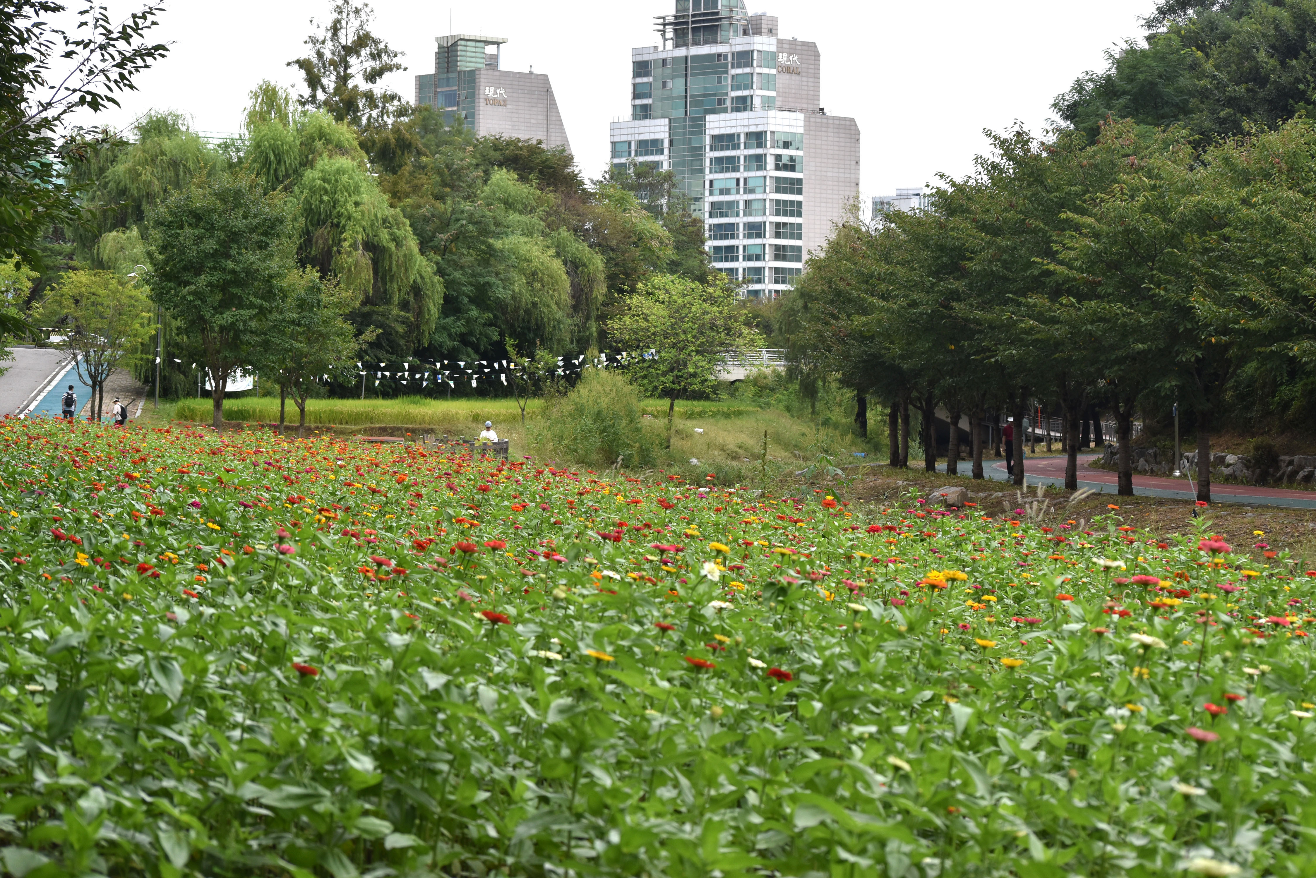 당시 백일홍 꽃이 반도 개화하지 않아 일주일쯤 후면 훨씬 아름다운 모습으로
