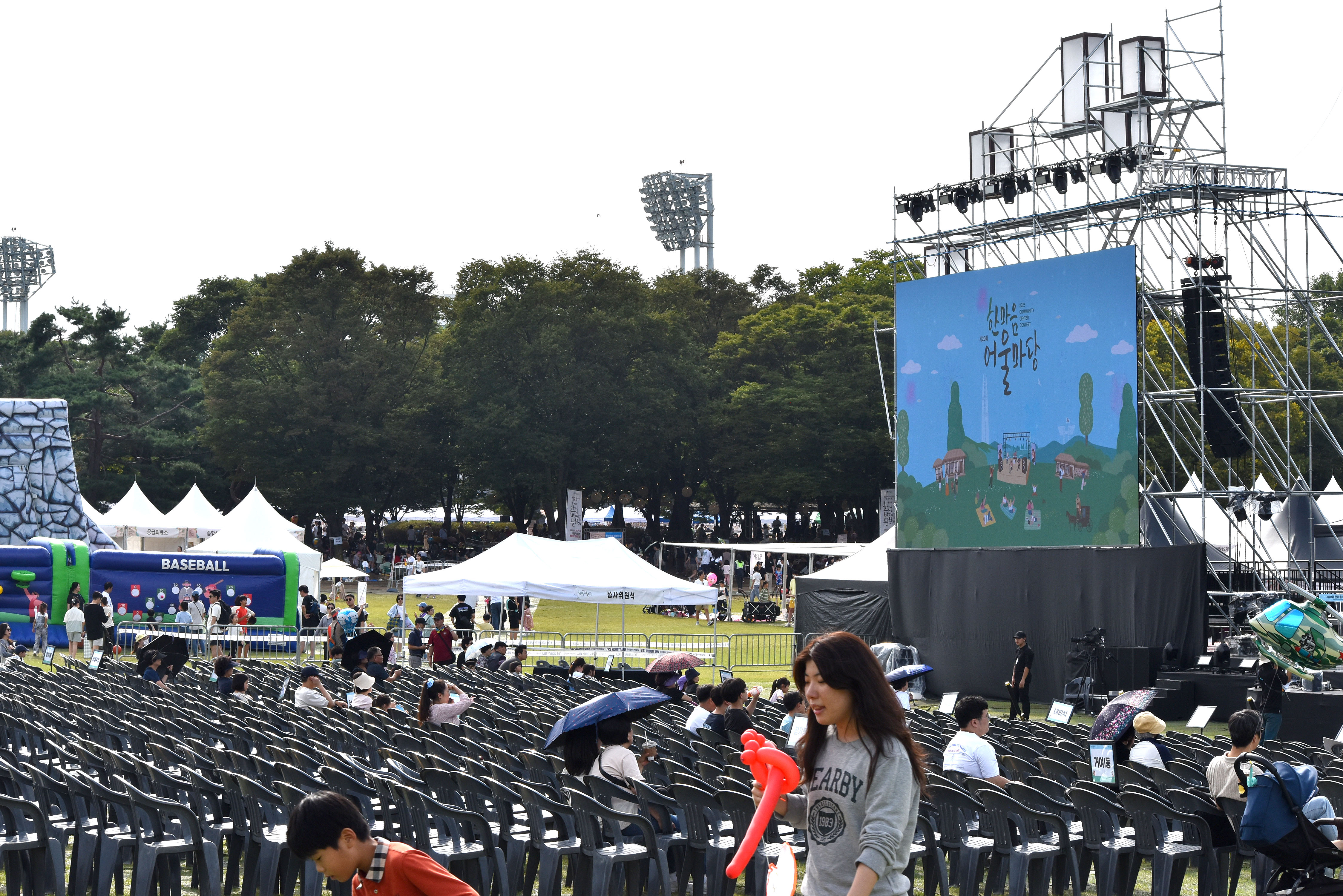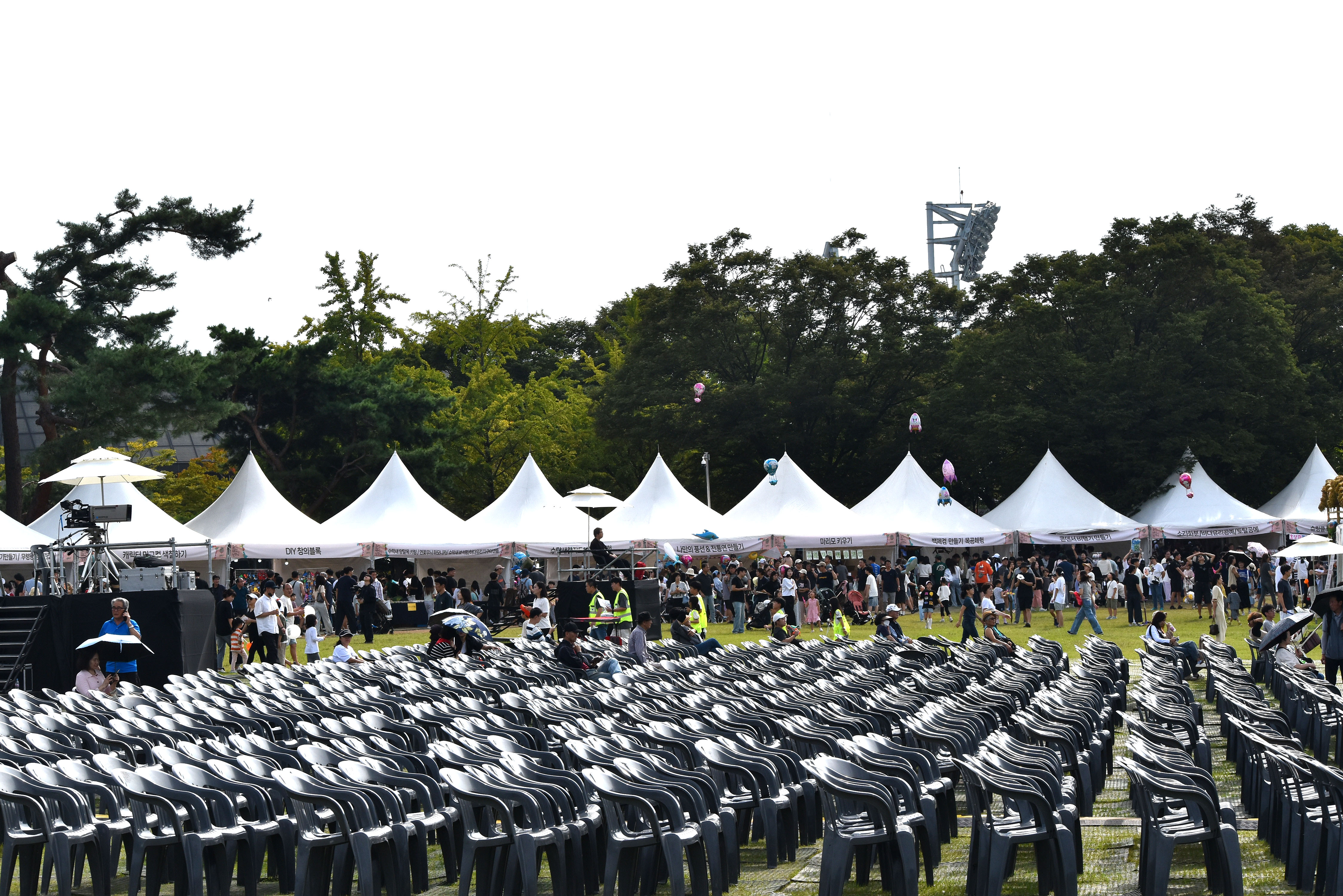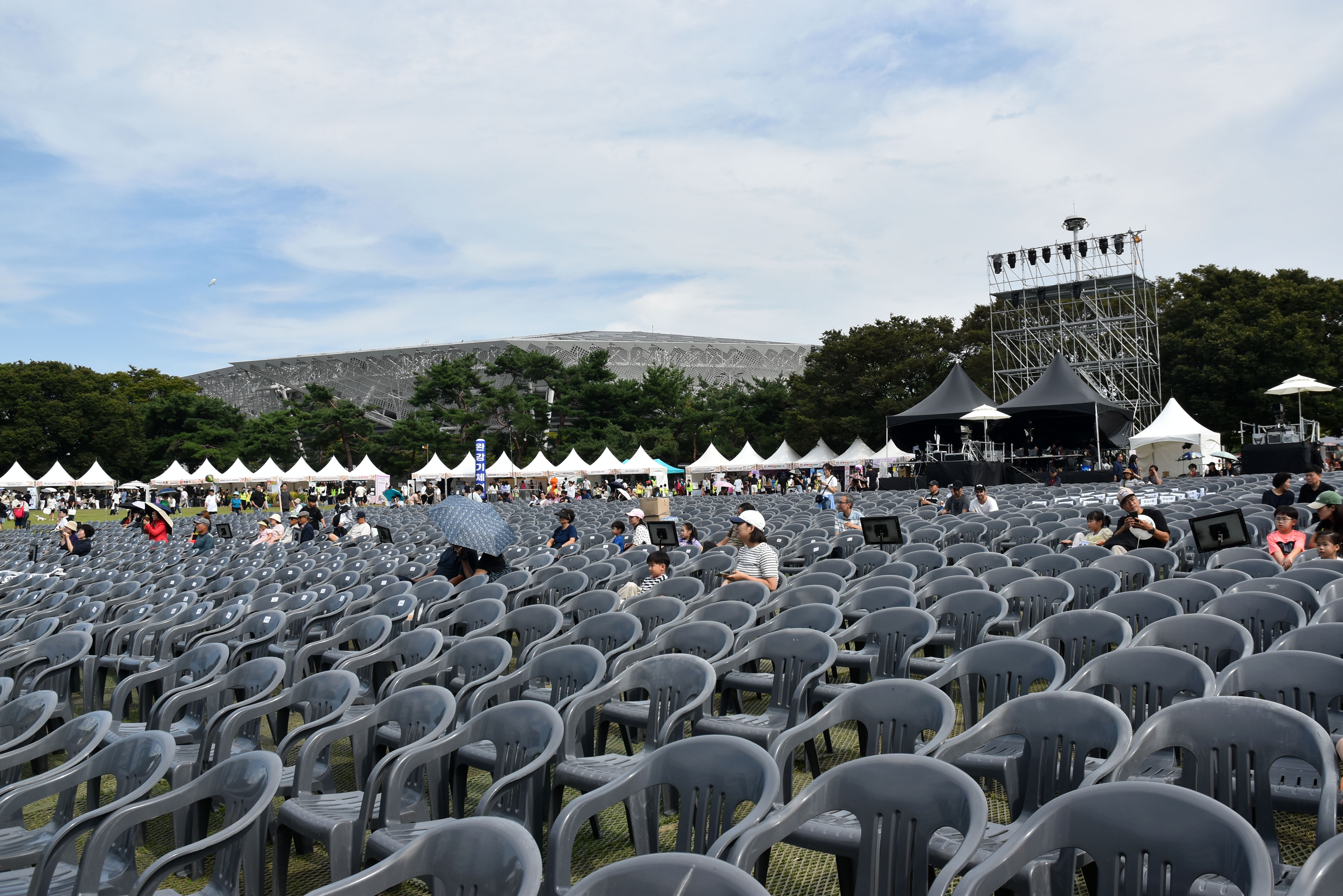 잔디광장 중앙에 대형무대와 관람석이 배치되어 있고 이를 둘러 체험장과 관련 시설들이 들어섰다.