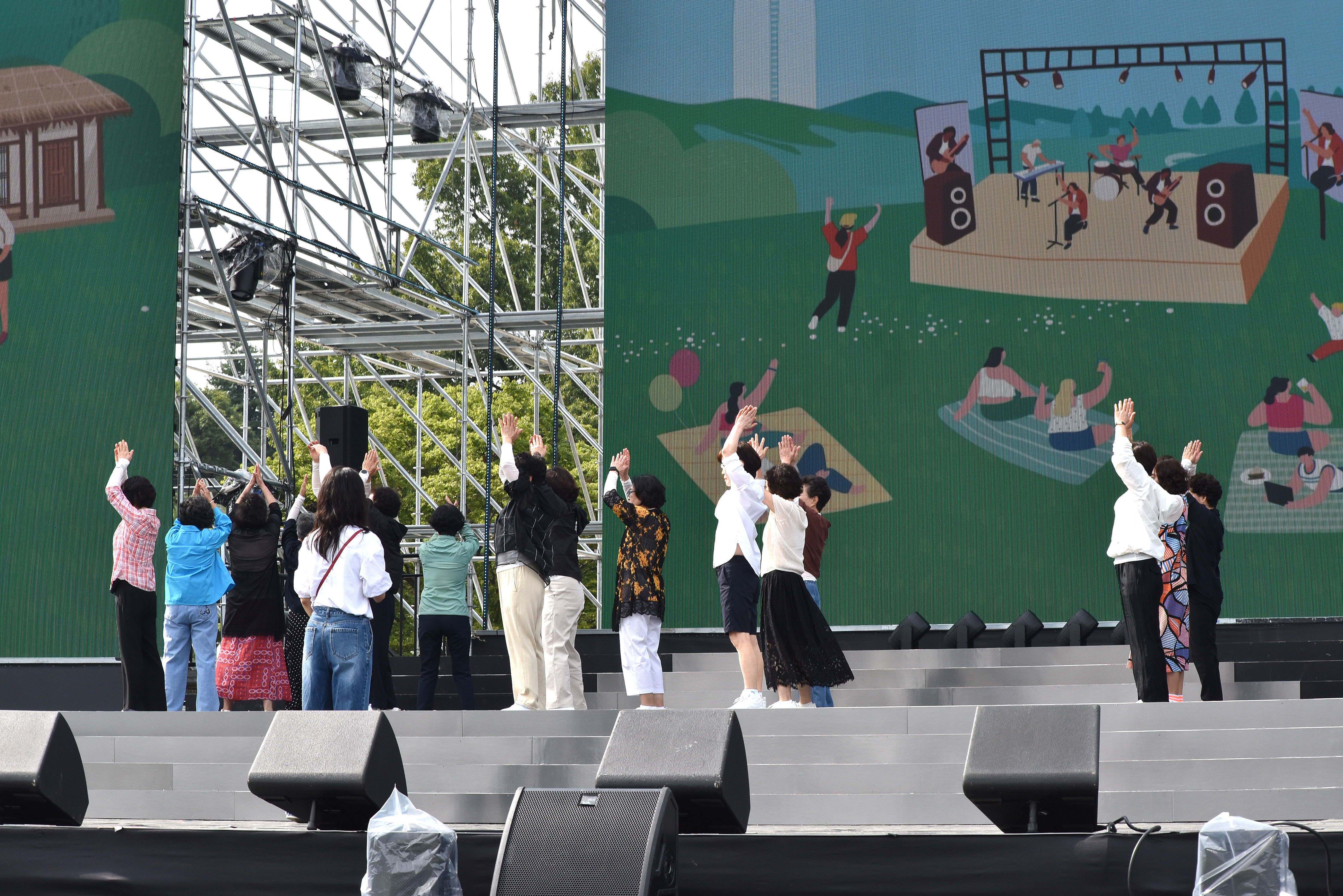 리허설을 하고 있는 어느 동 참가자들