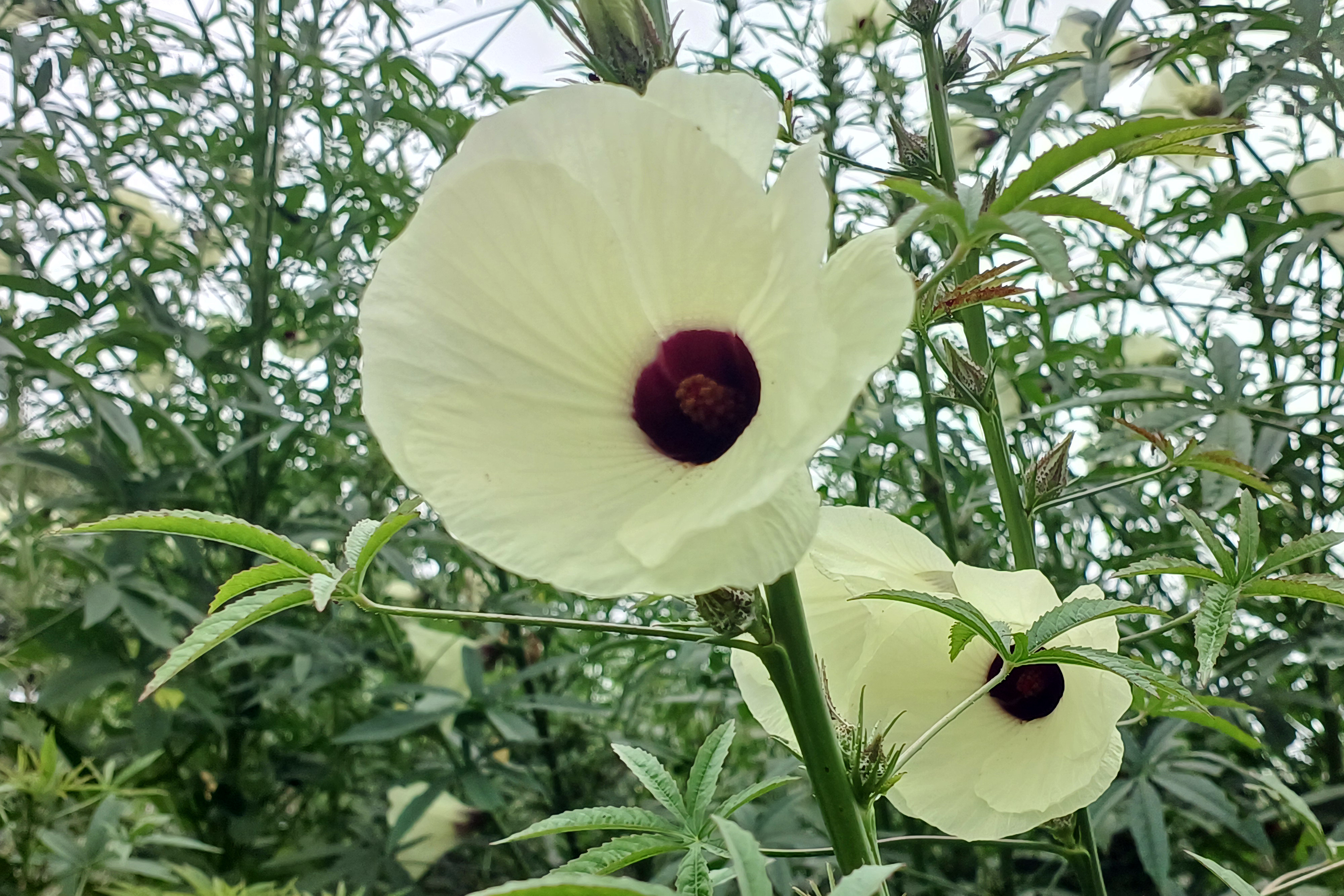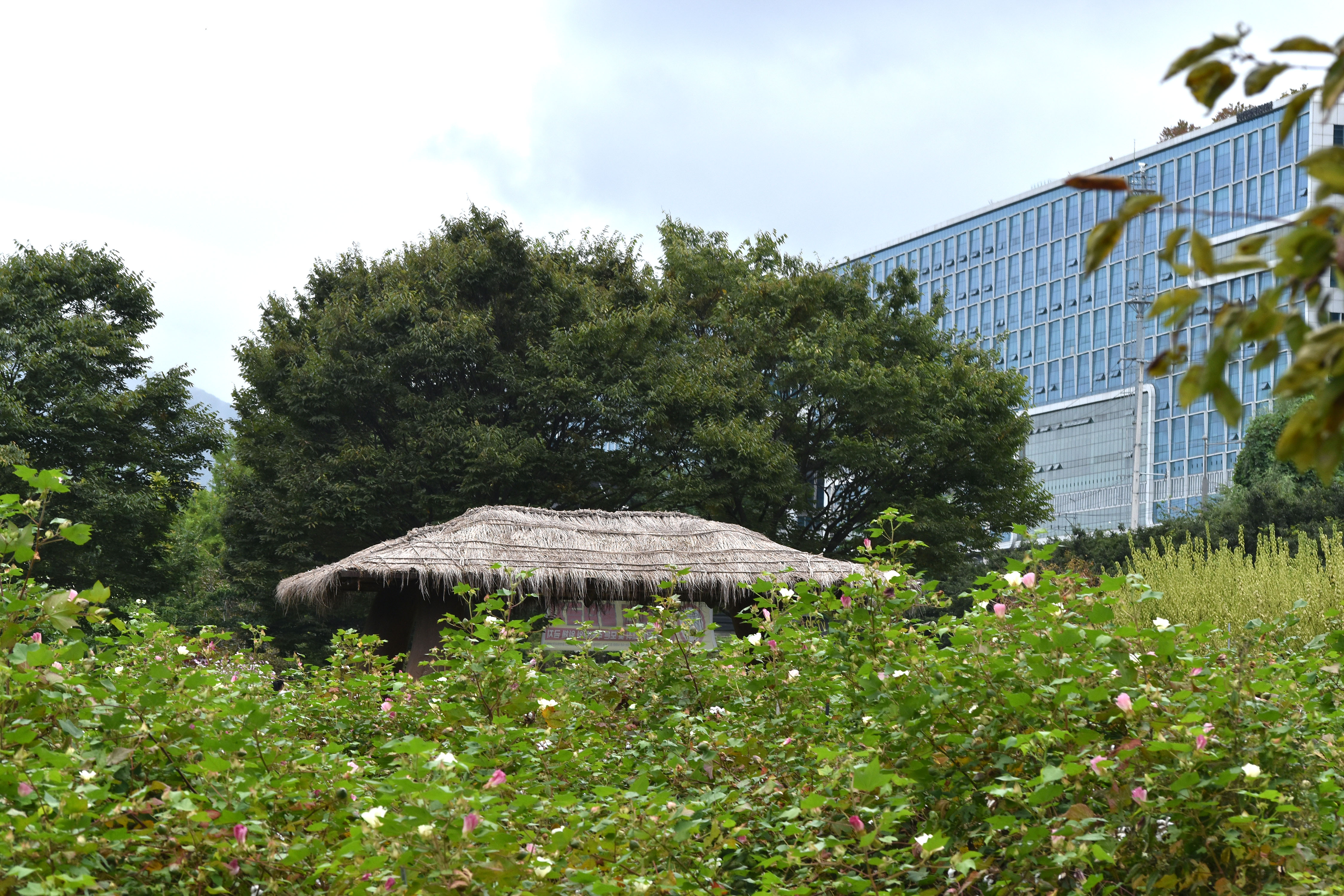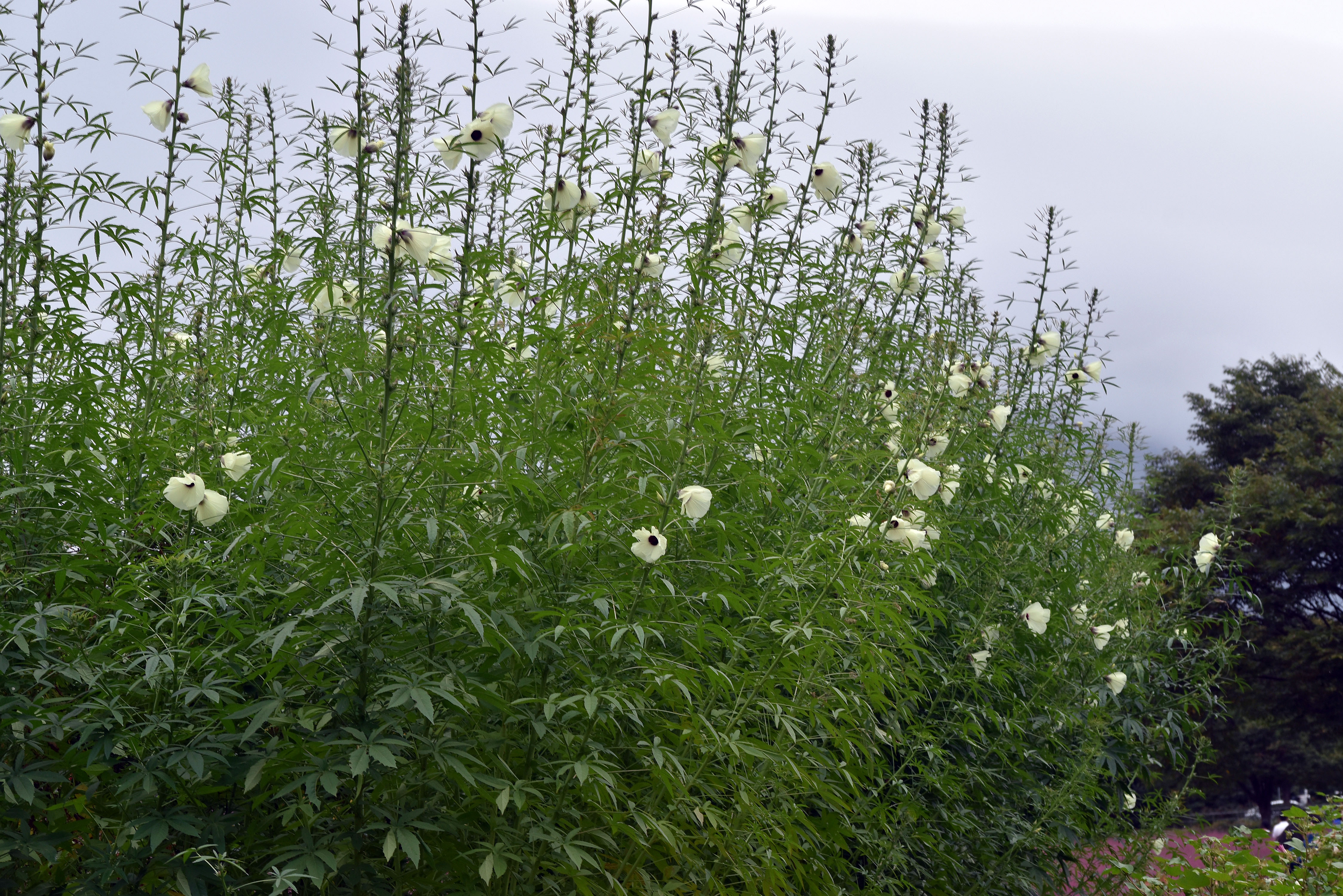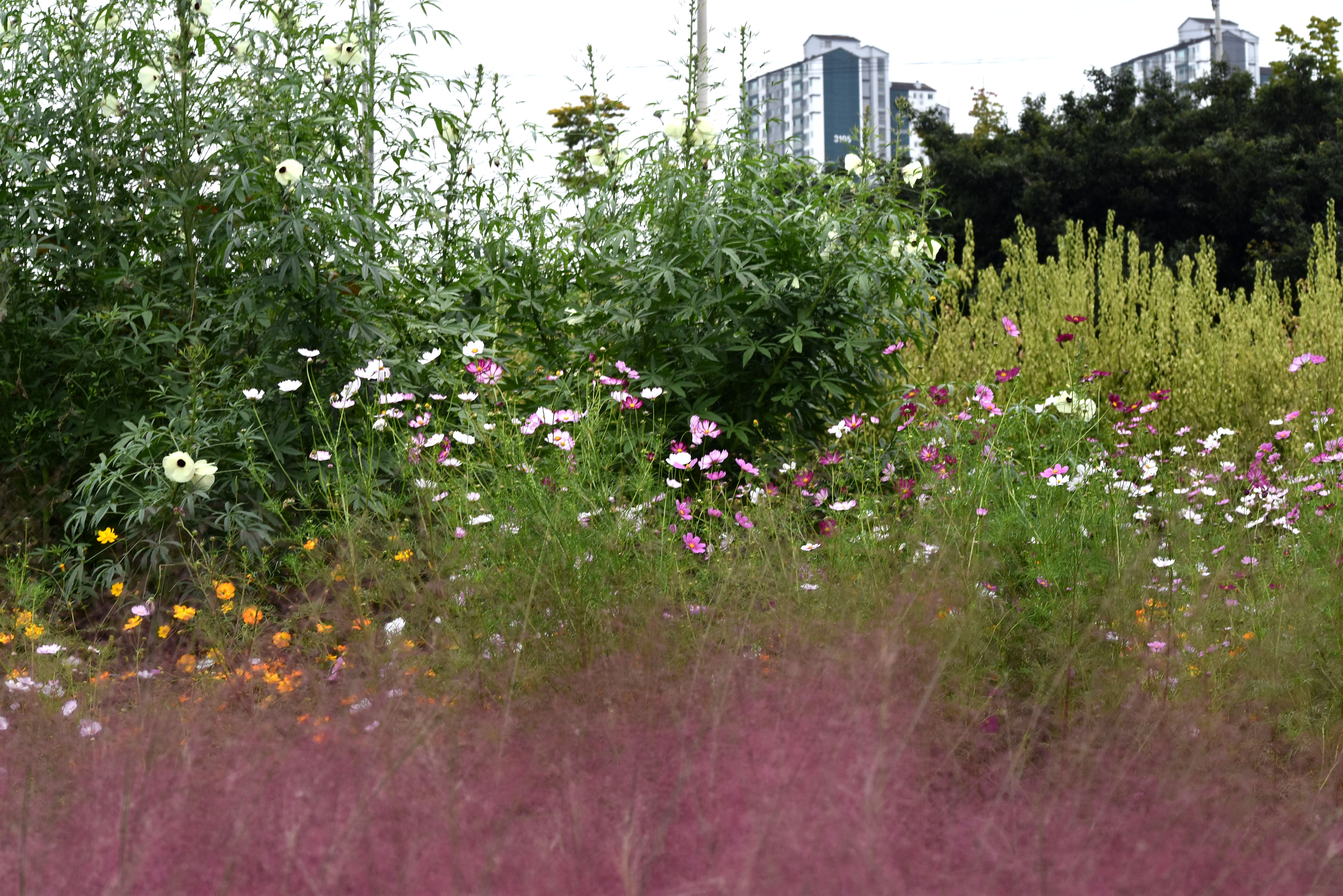 핑크뮬리밭 입구에 개화한 닥풀 꽃. 닥종이 만들때 사용되는 원료로 쓰인다는 닥풀인데 꽃이 제법 아름답다