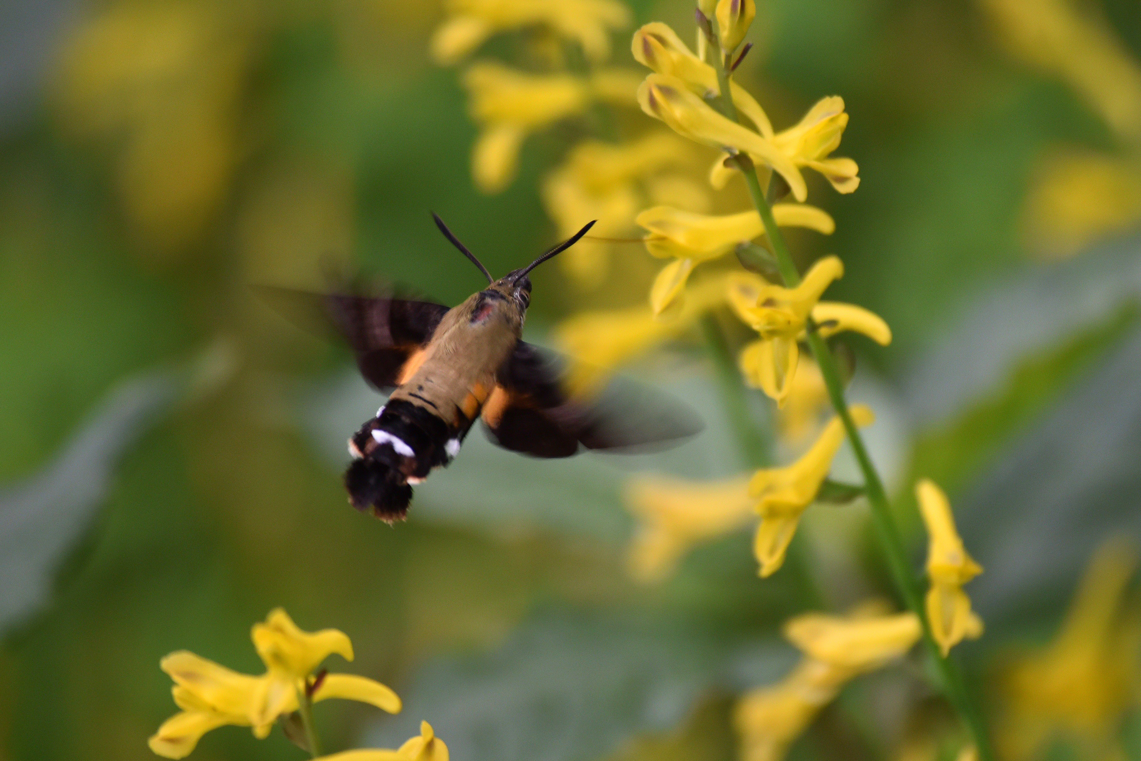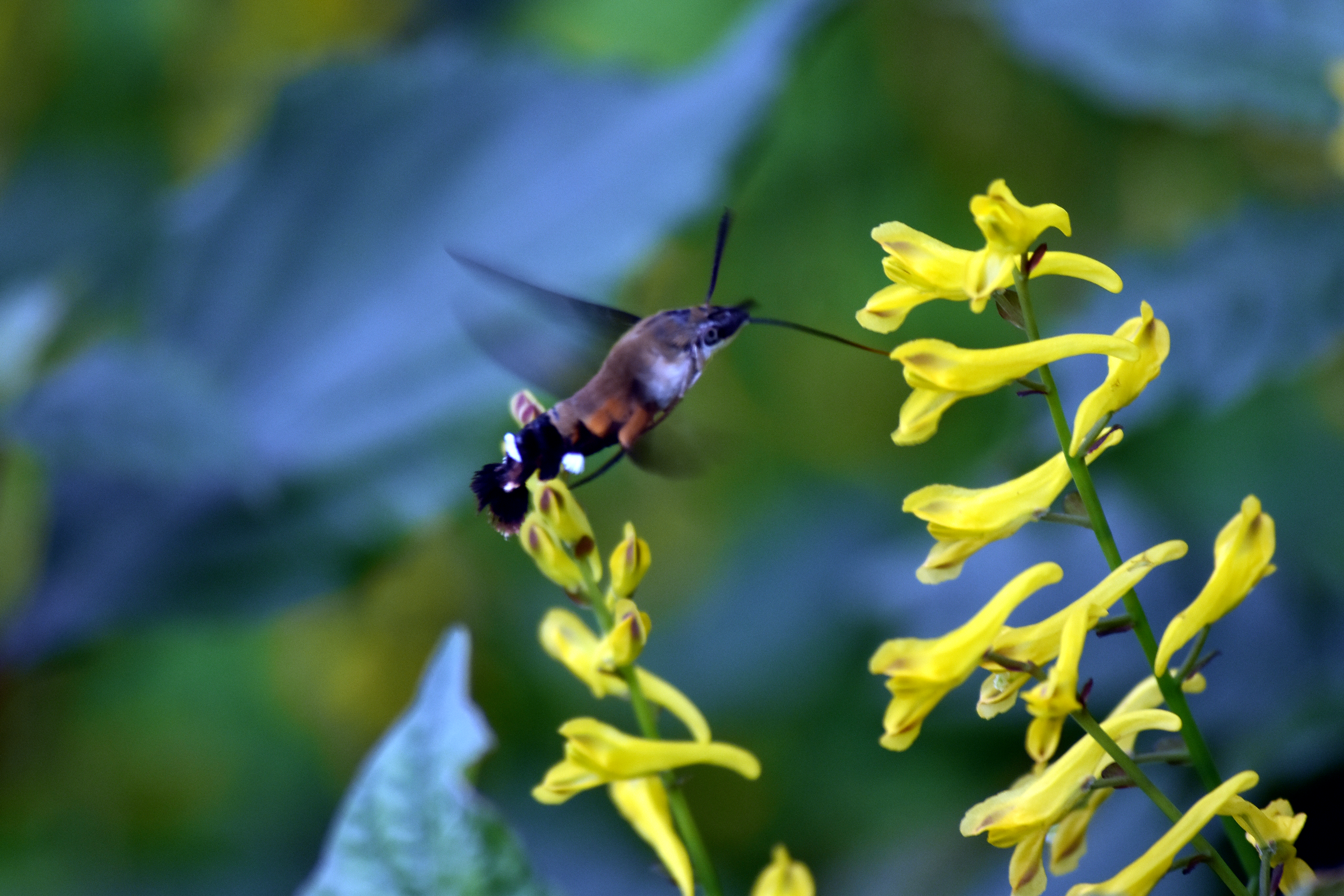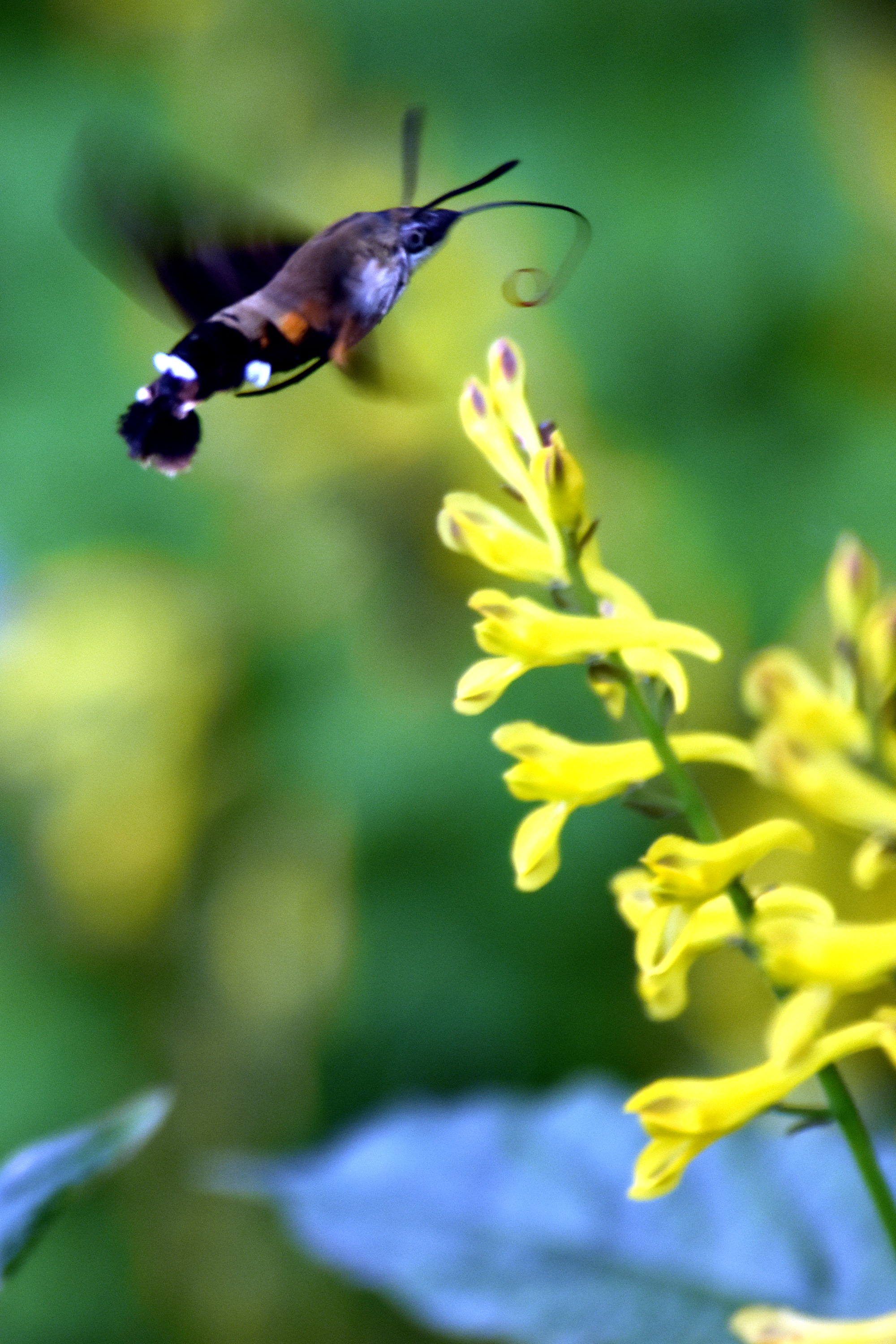 현호색 꿀을 채취하려는 꼬리박각시 나방