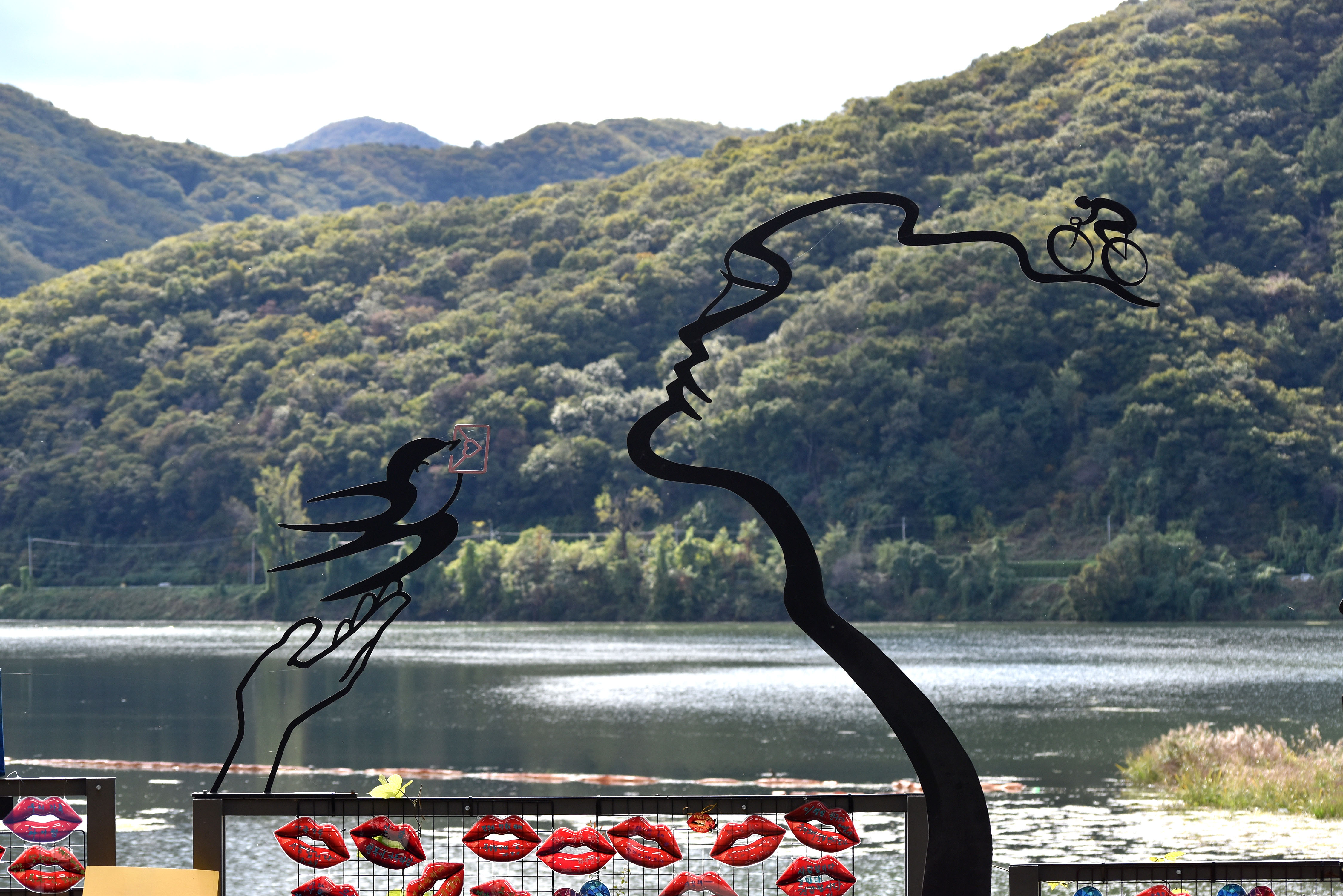 봉주르 팔당 앞 자전거길 쉼터에 전시 중인 작품들은 모두 고석용 작가의 작품들이다.