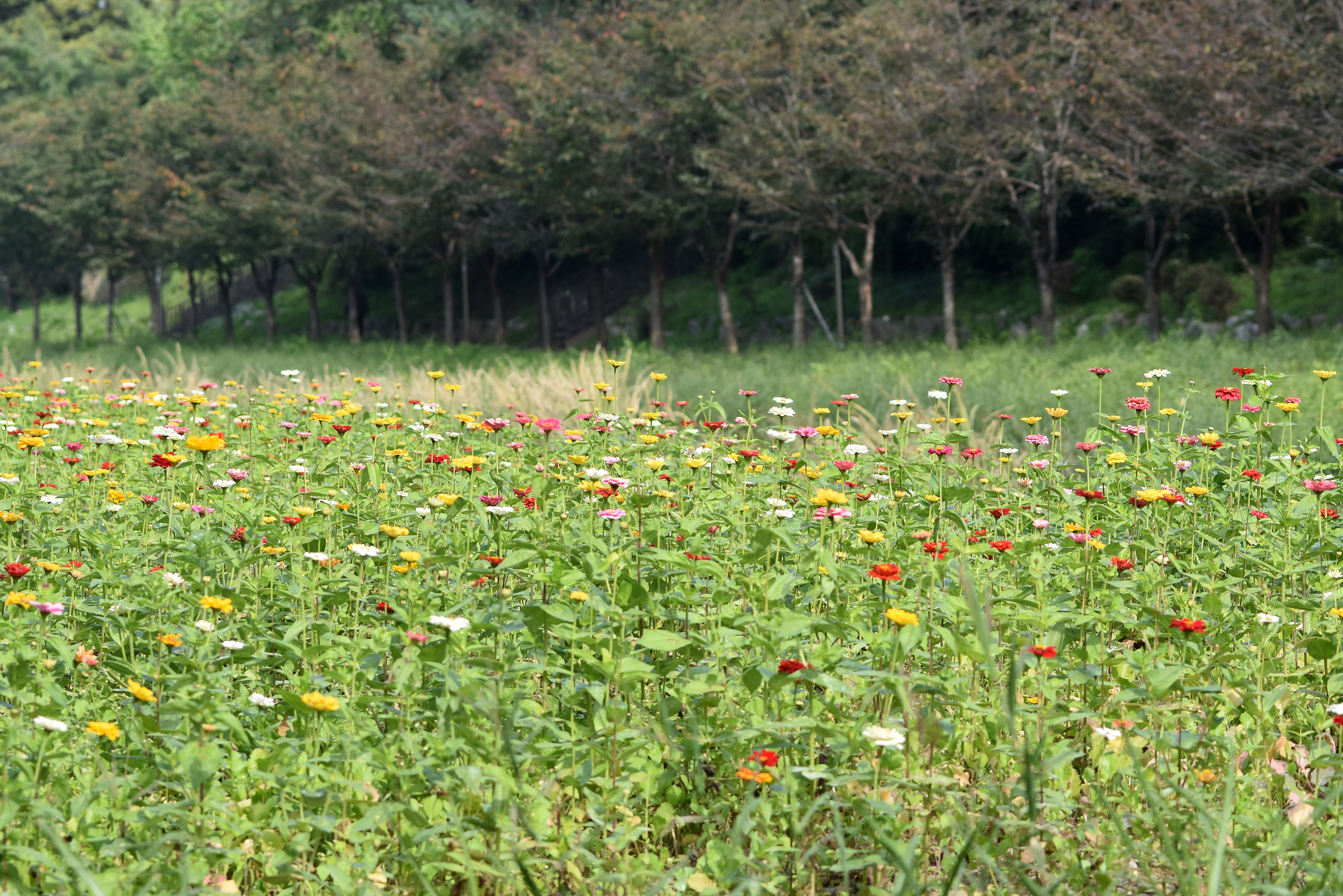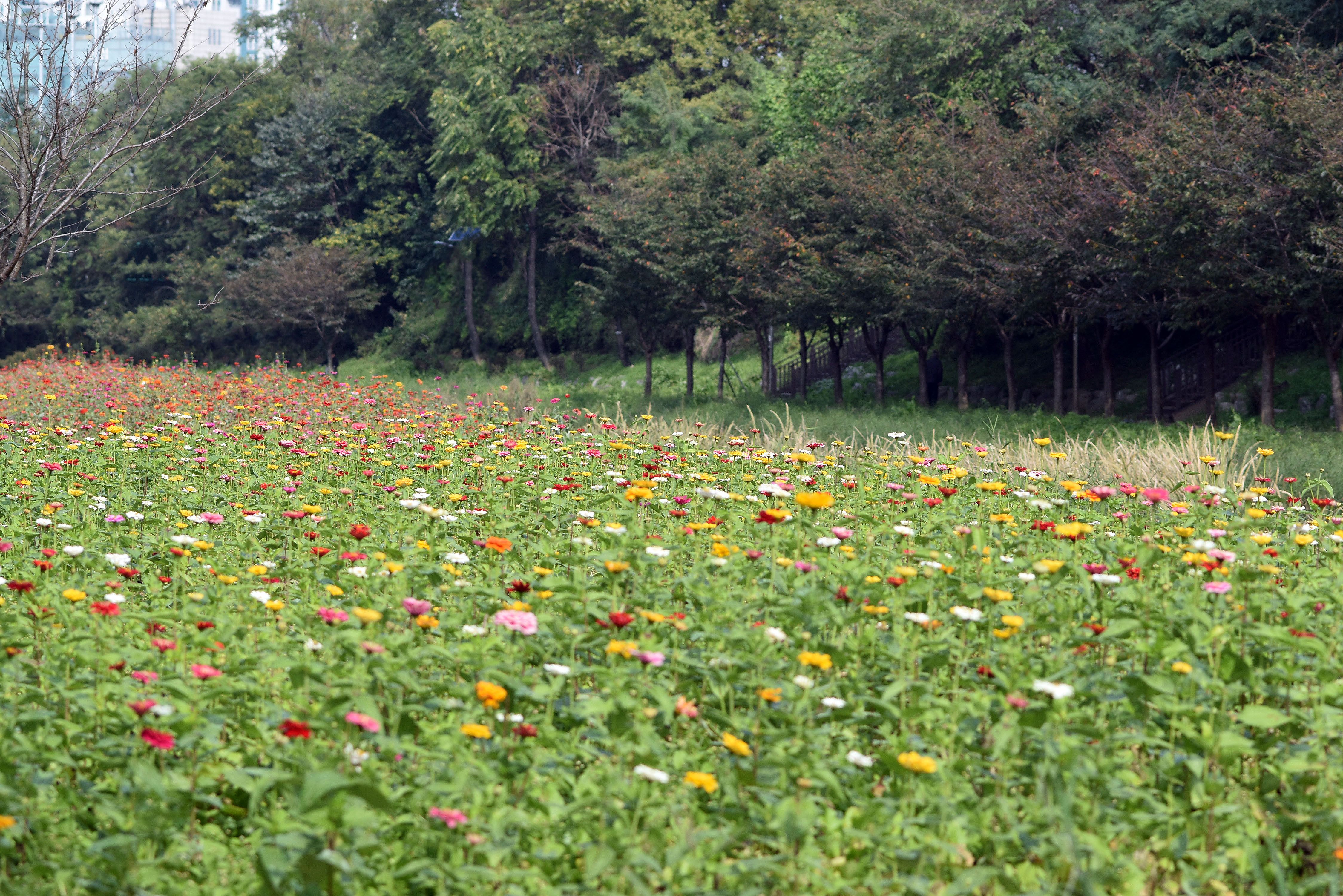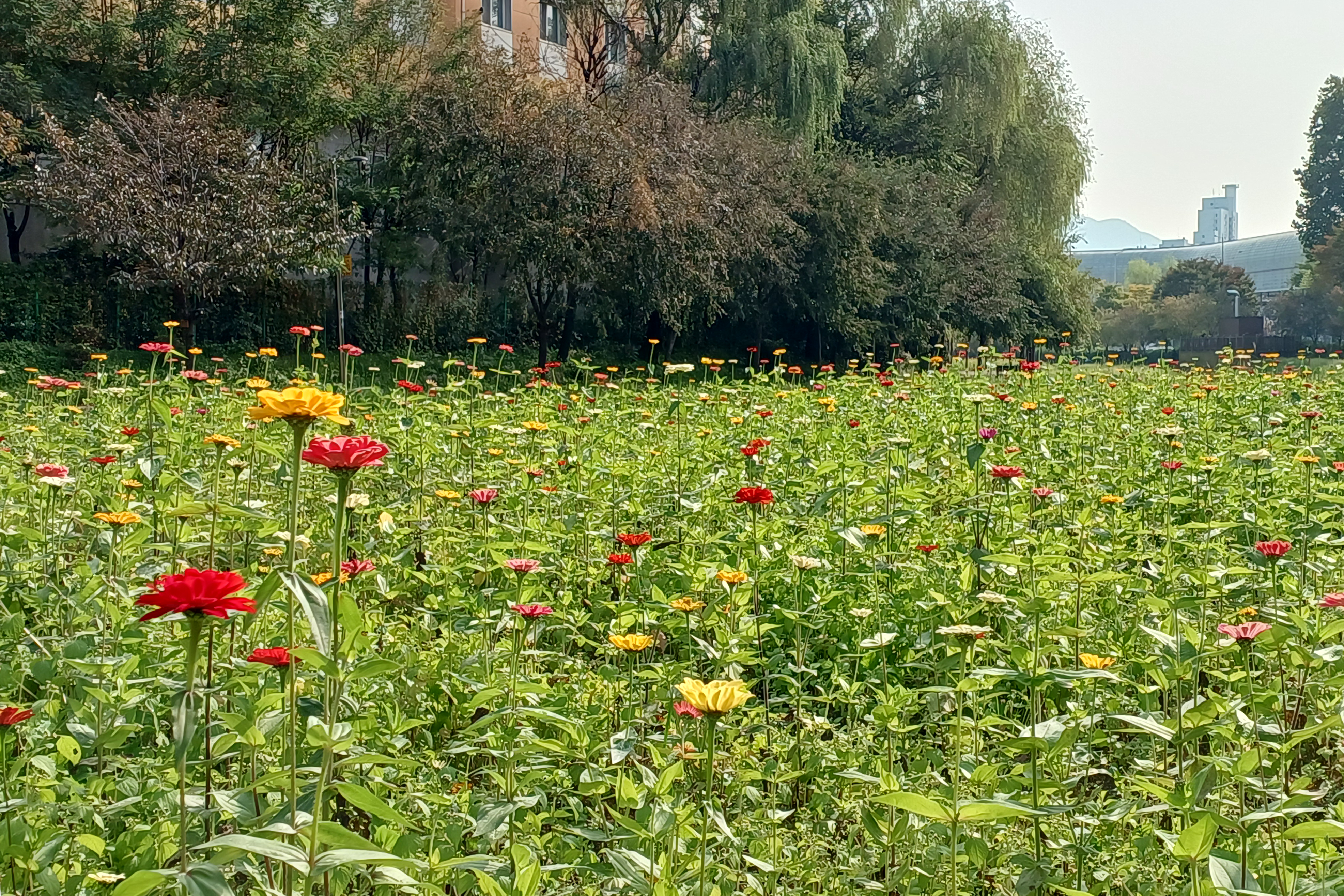 것은 아니고 구역별로 단계적으로 씨앗을 파종해 한쪽이 만개 했을 때 다른 한쪽에서는 막