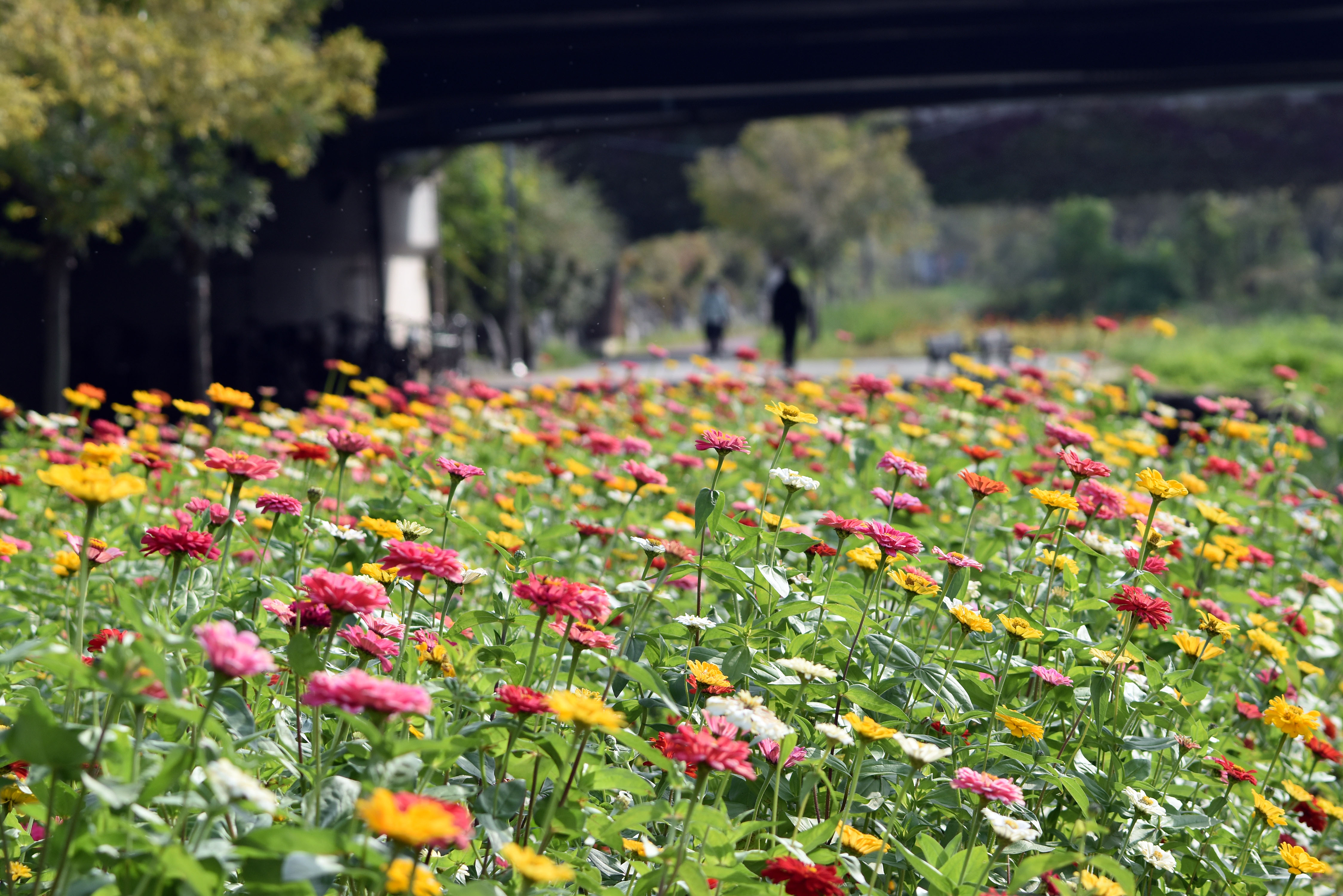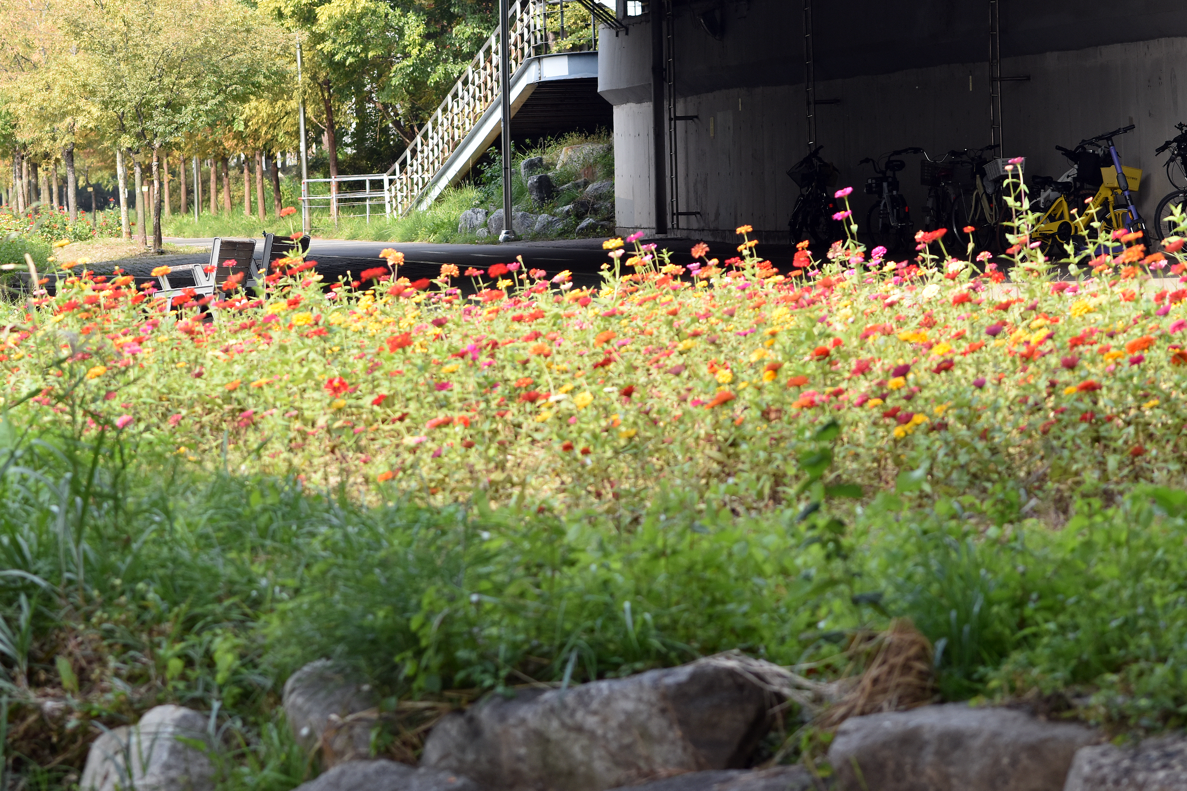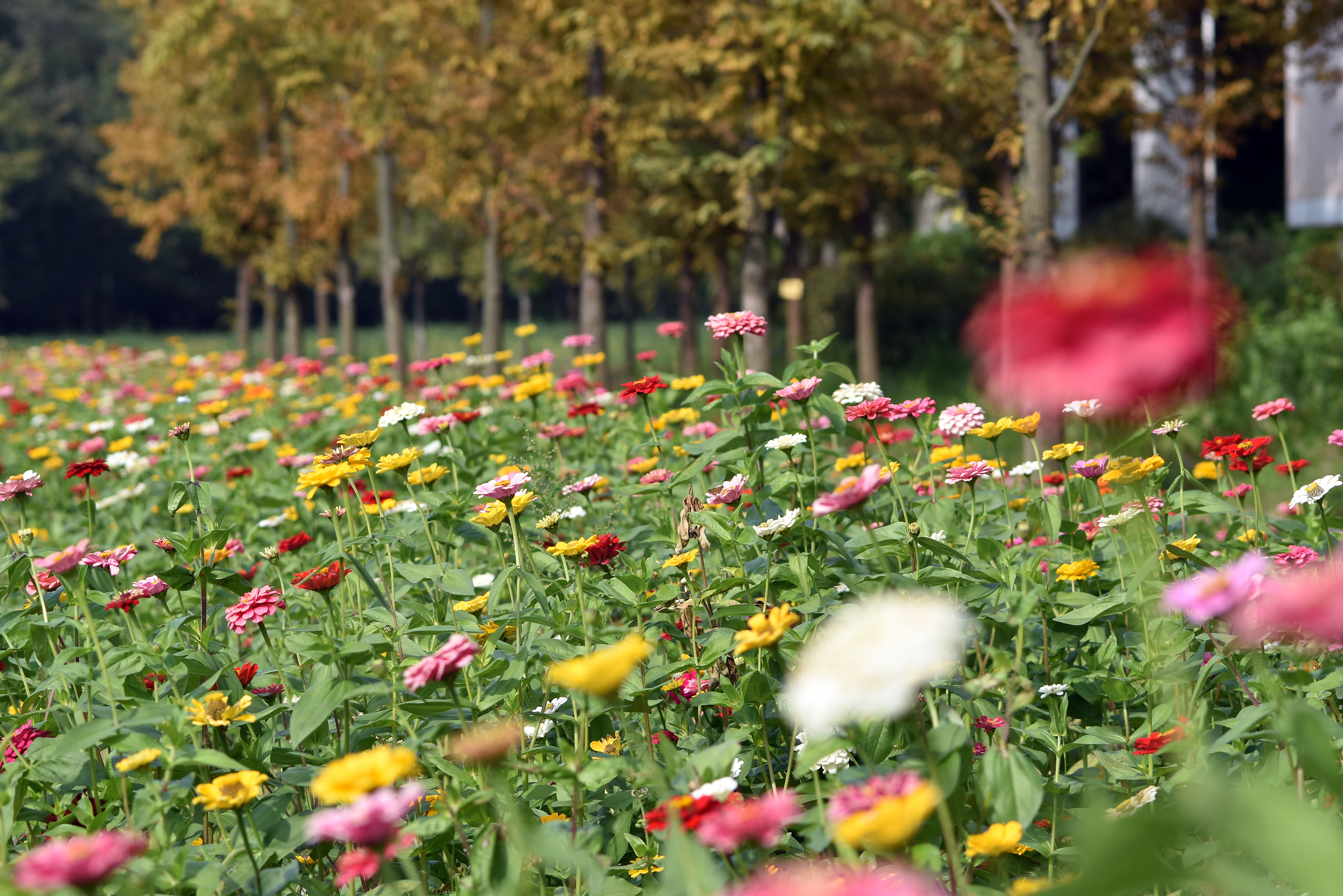 것은 아니고 구역별로 단계적으로 씨앗을 파종해 한쪽이 만개 했을 때 다른 한쪽에서는 막