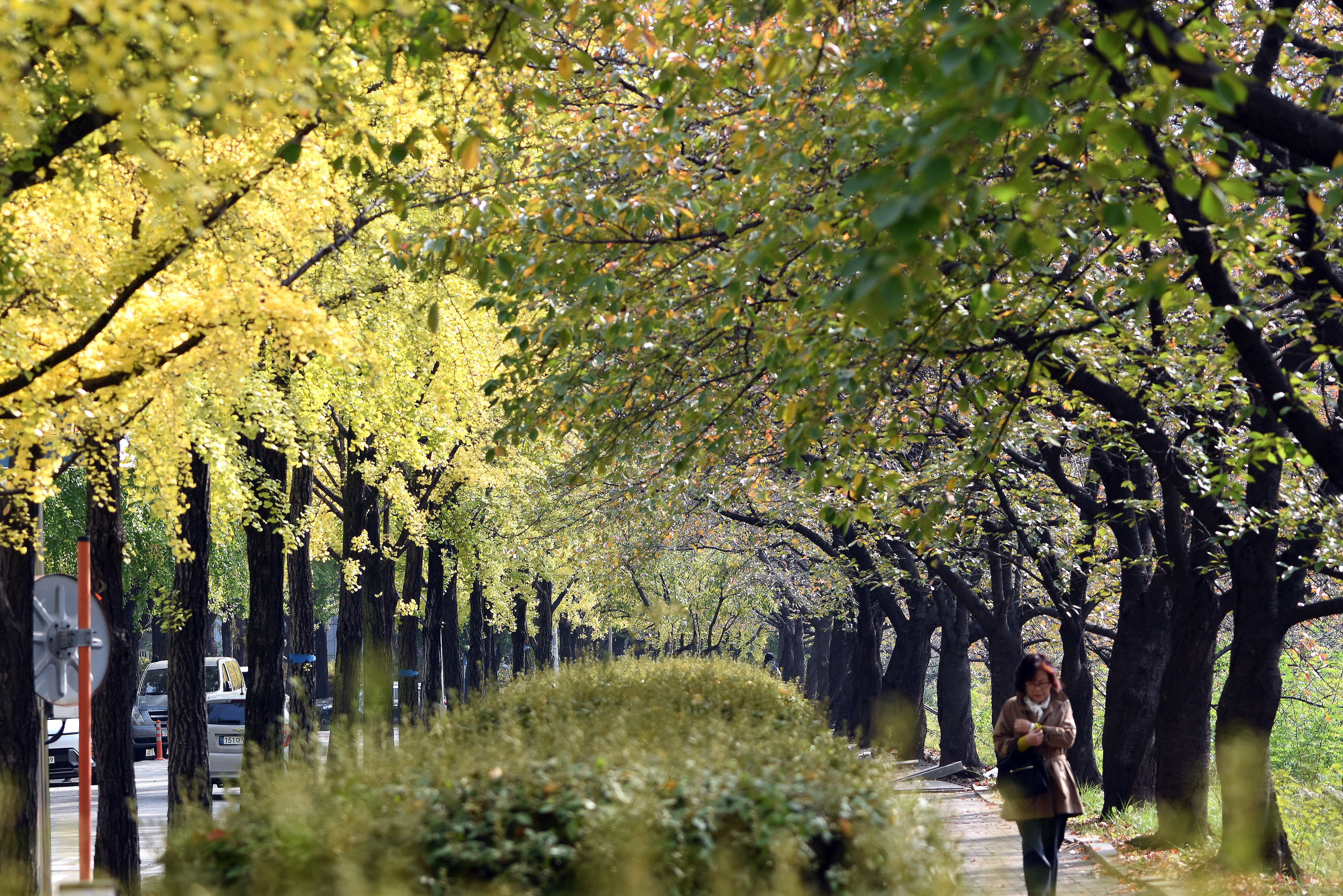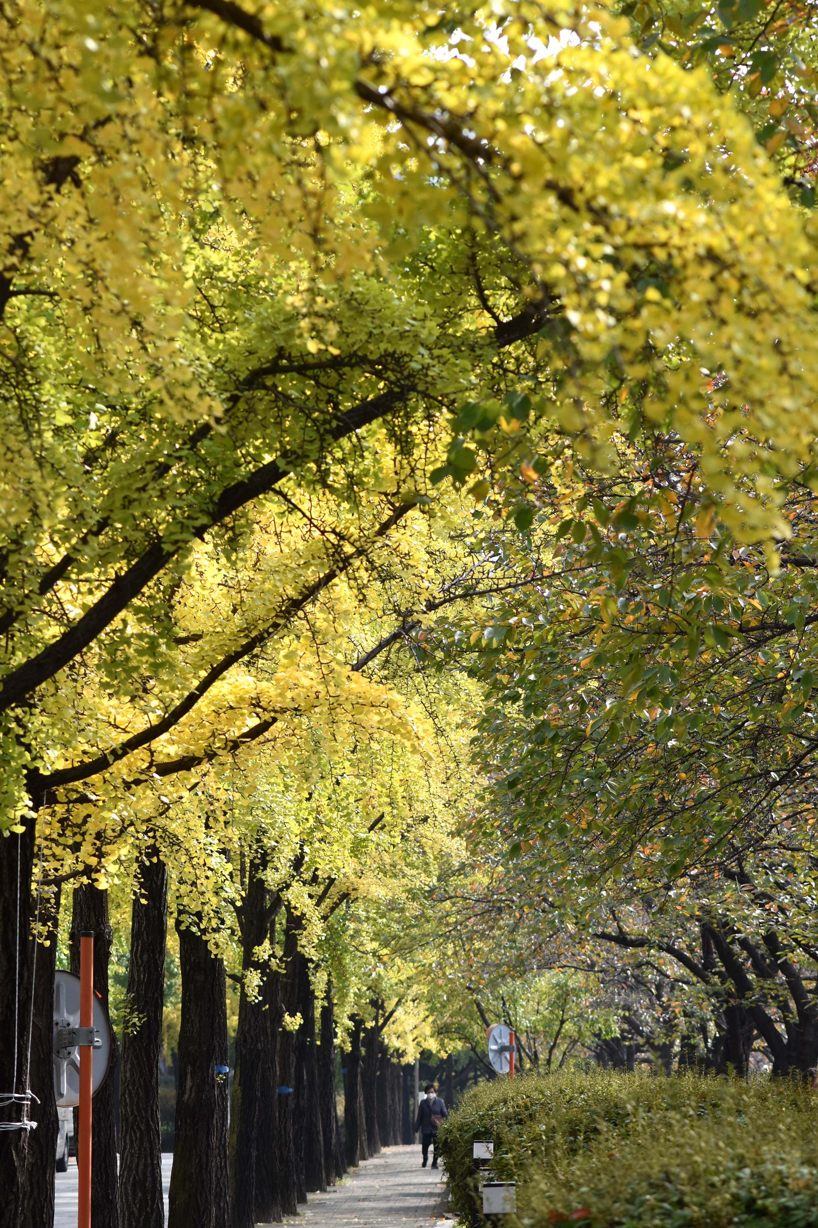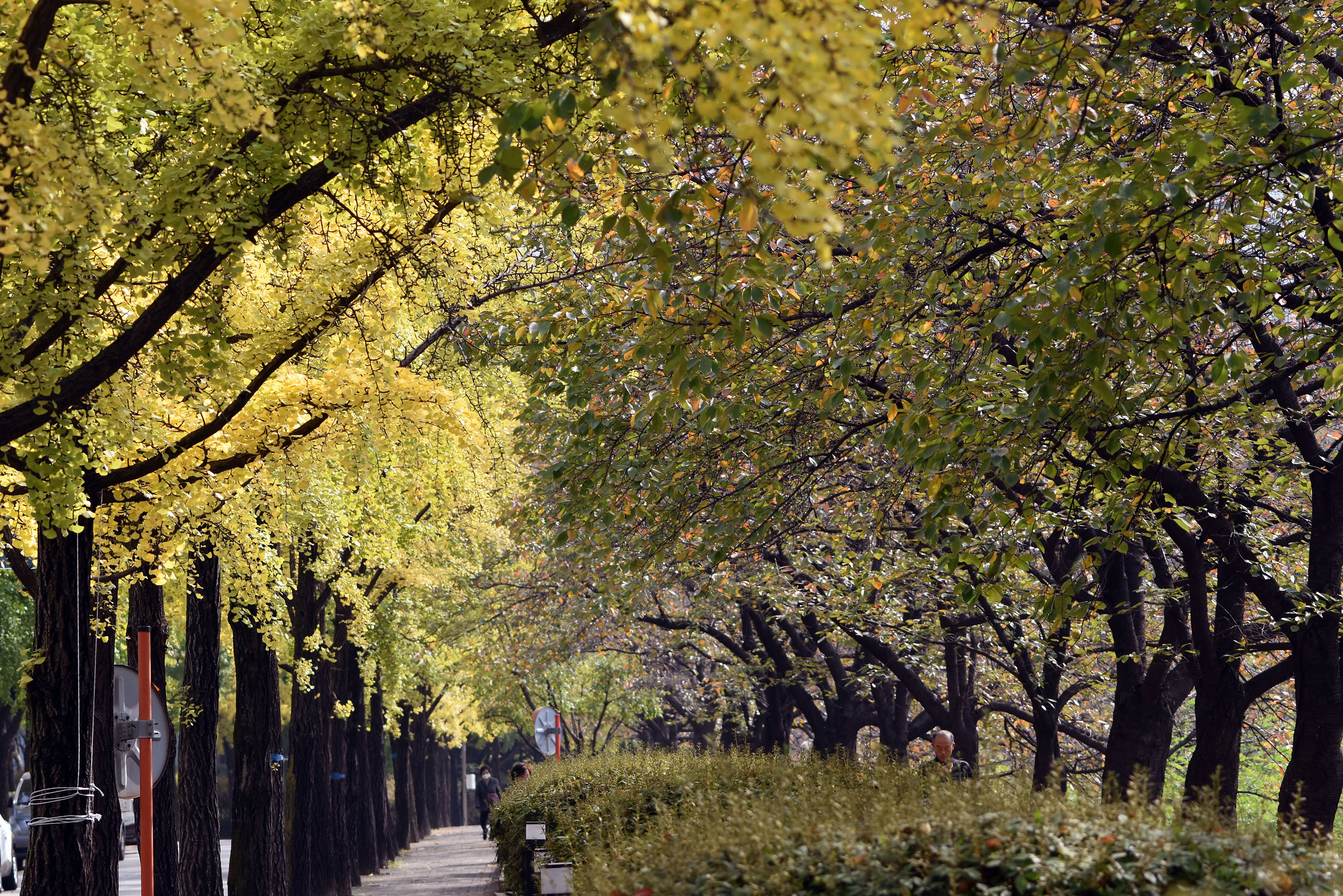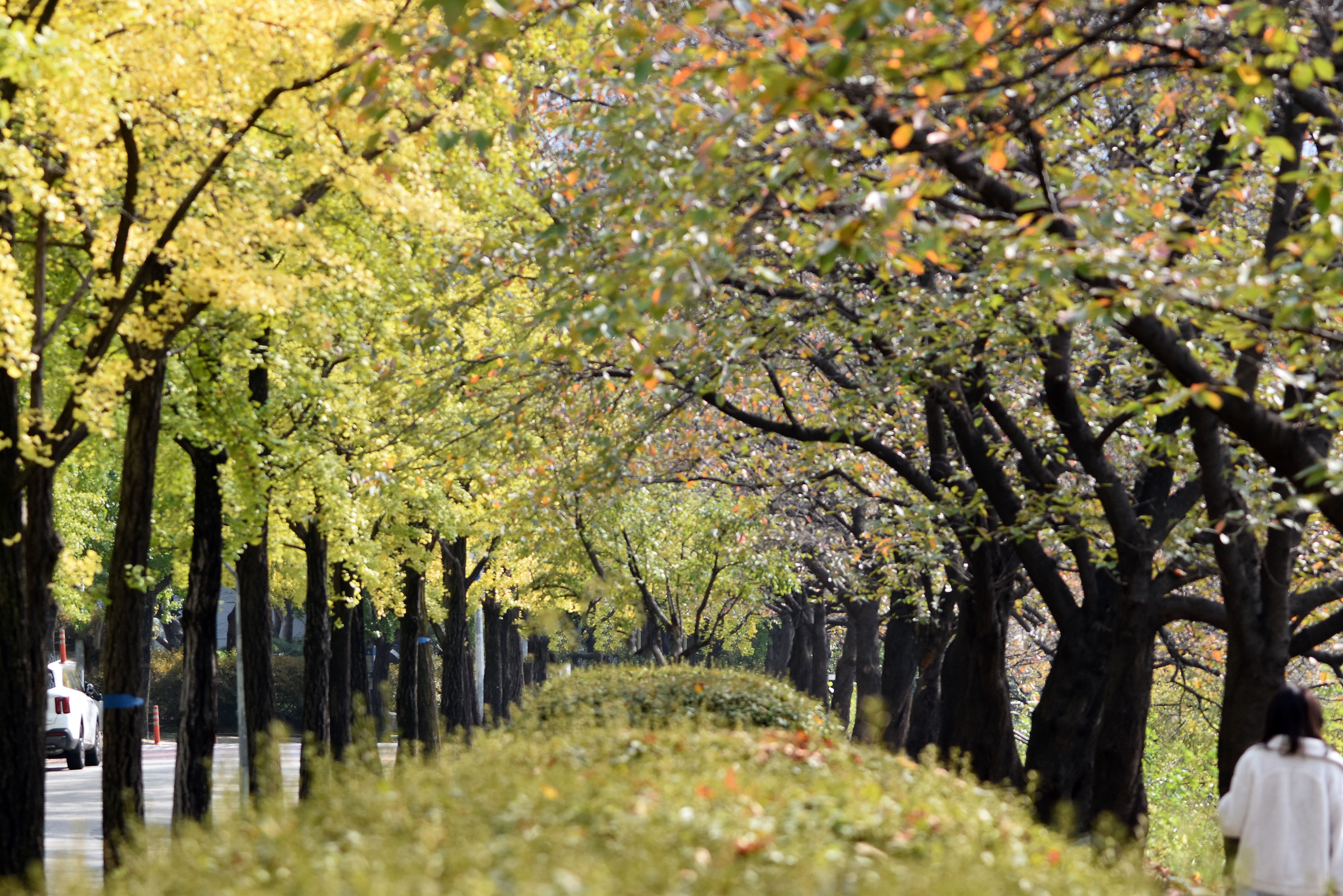 성내천과 올림픽선수촌 아파트 사이에 물들어가는 은행나무들