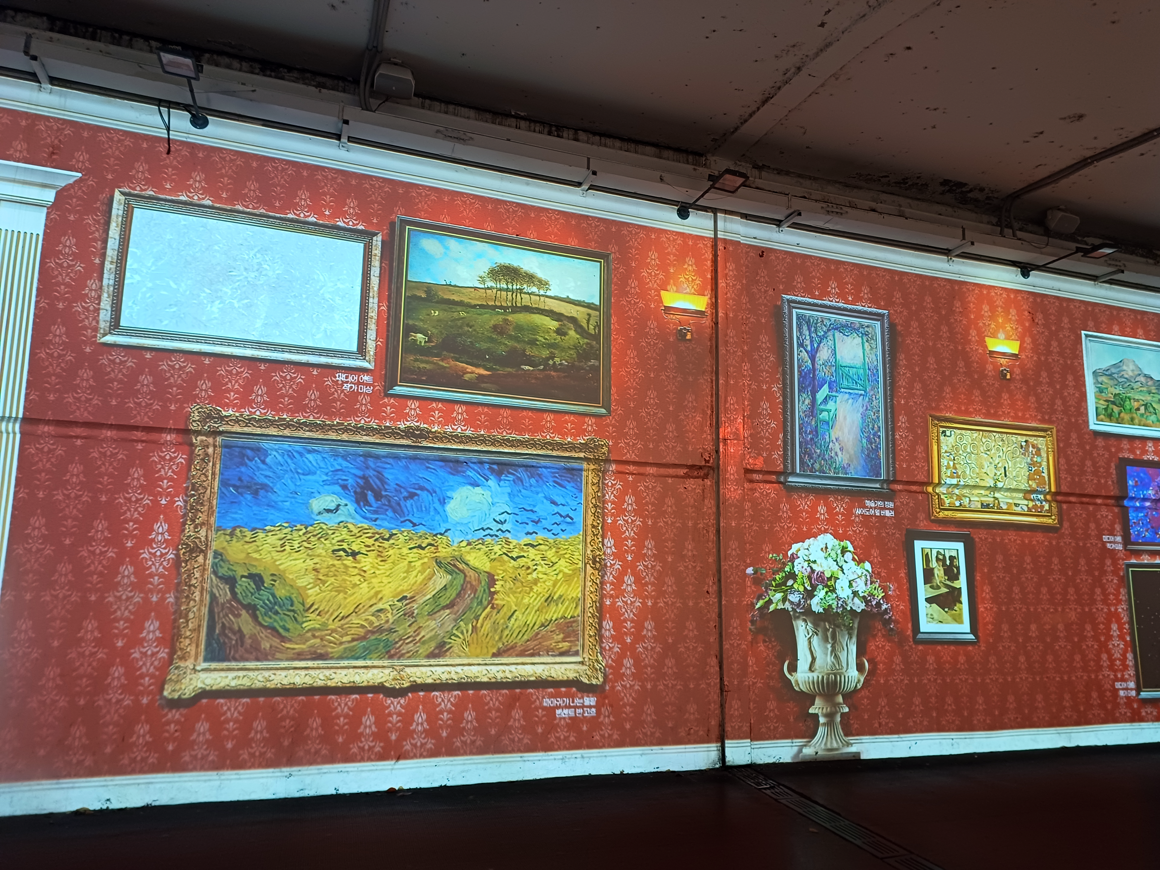 동호와 서호를 연결하는 지하 통로 벽의 유명작가들 작품의 파사드 쇼
