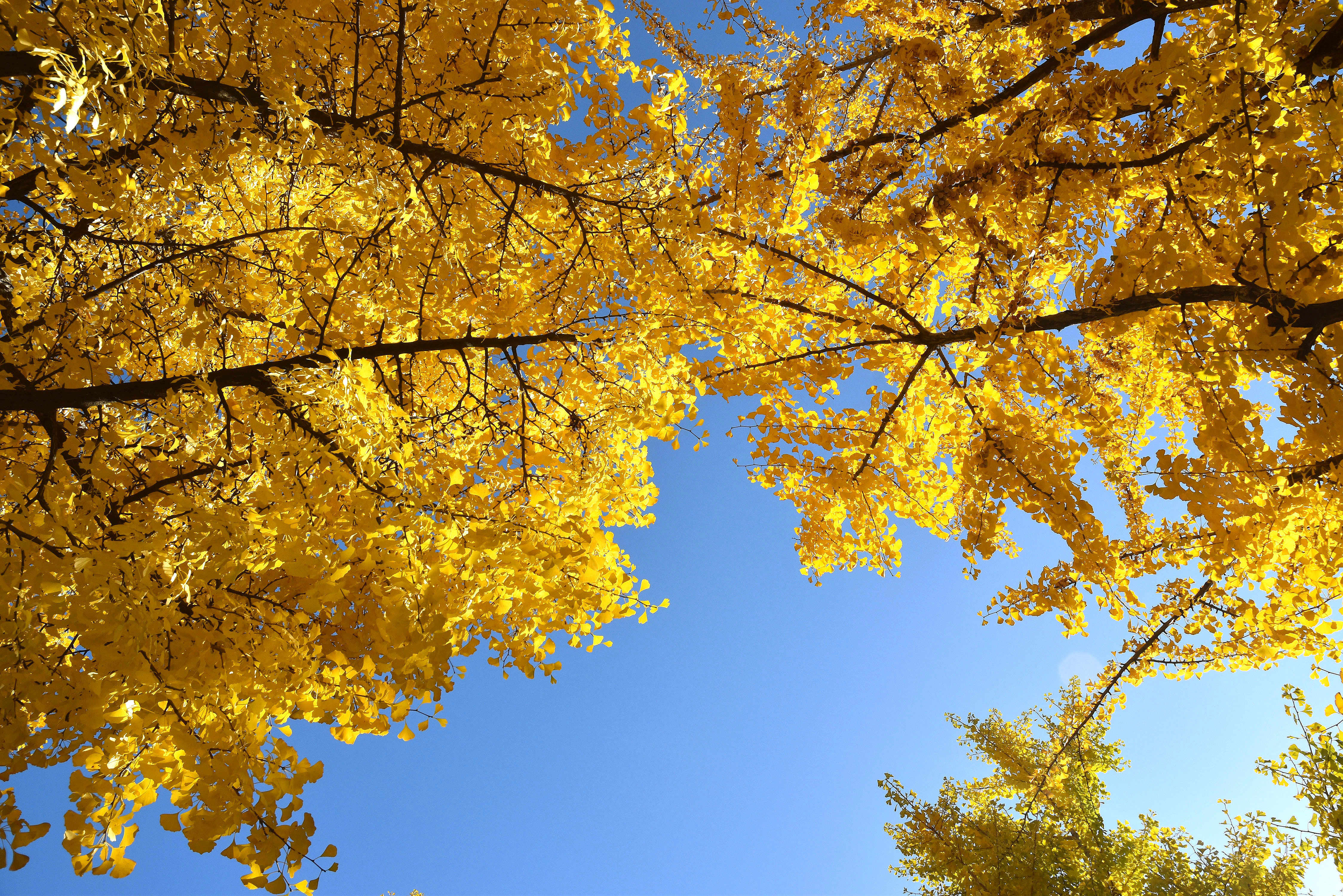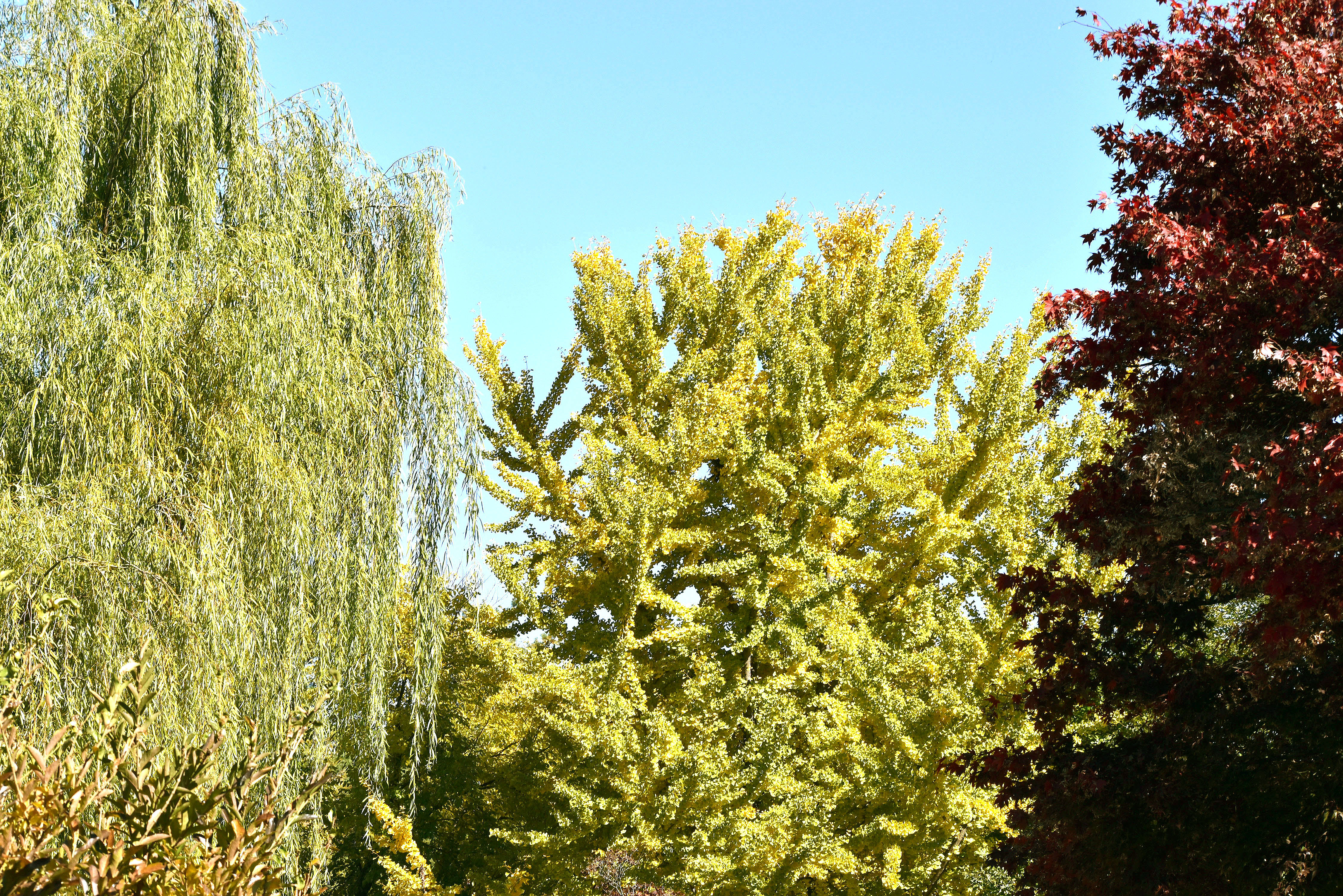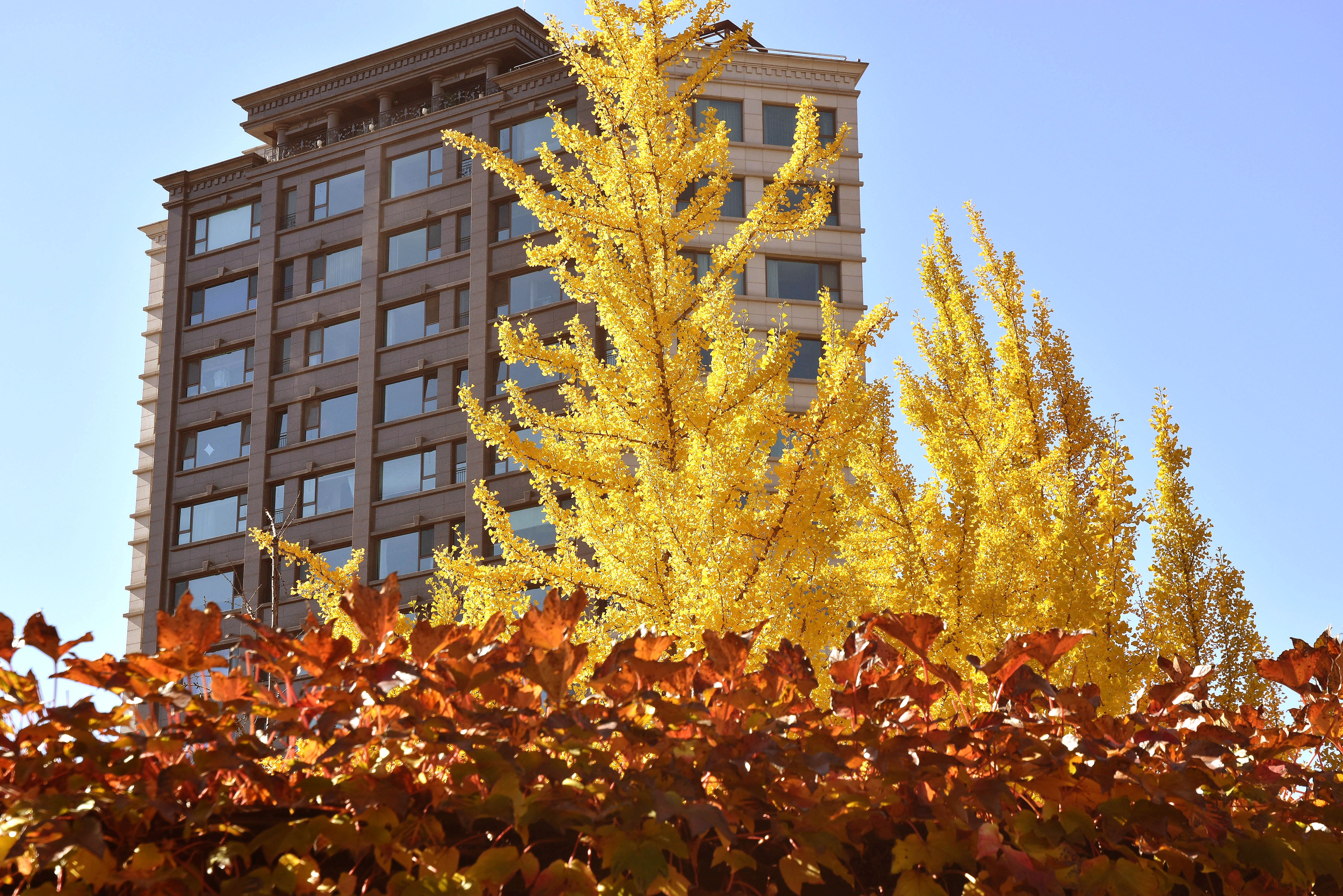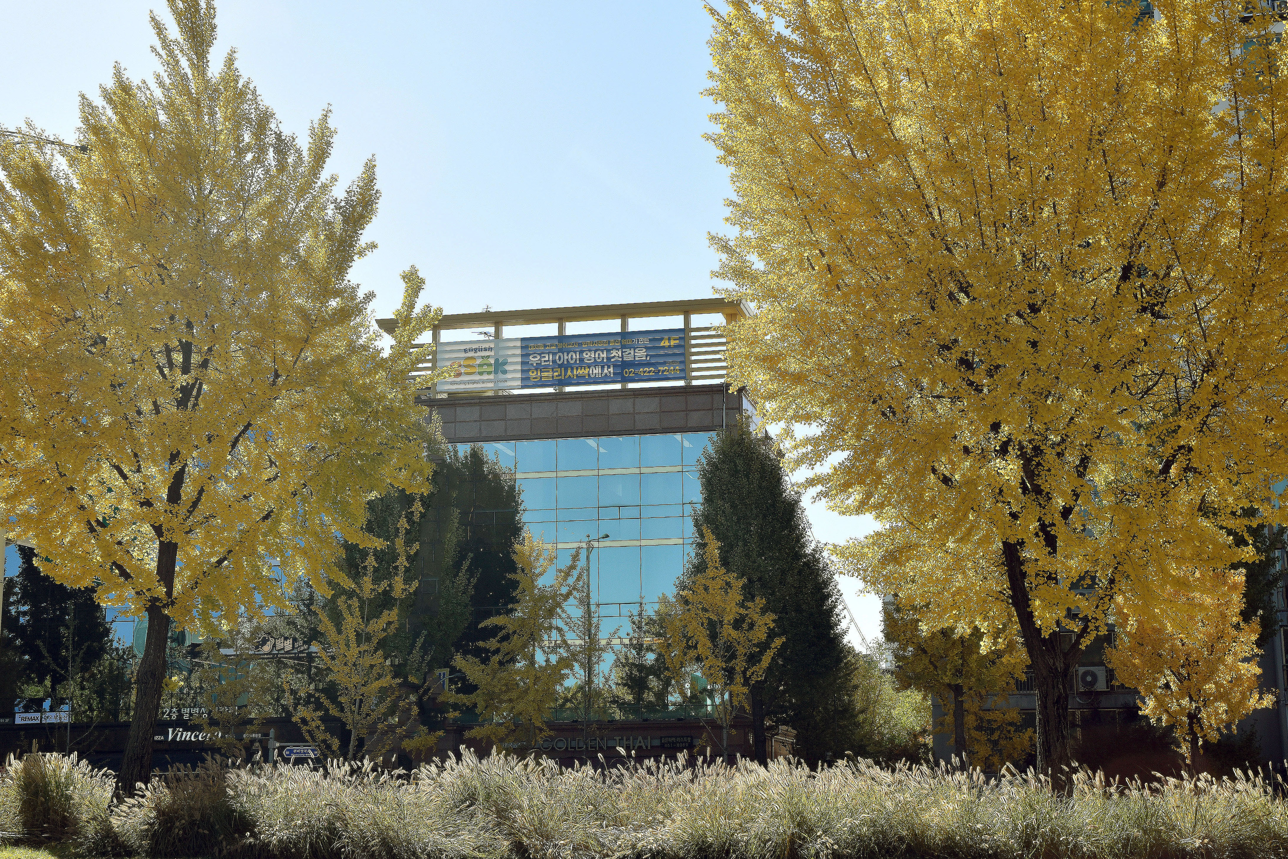 붉게 물들어가는 담쟁이와 노란 은행나무와의 조화