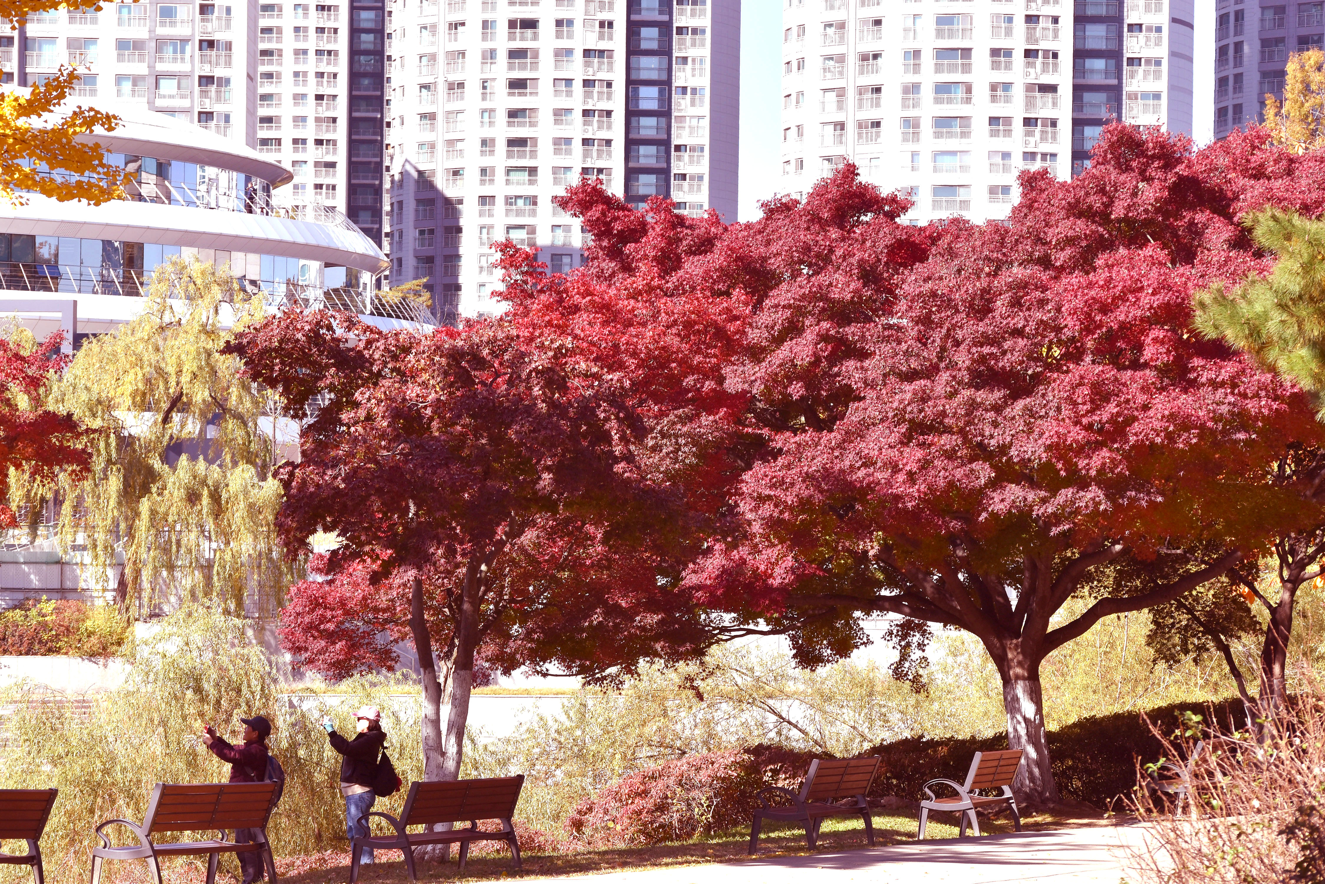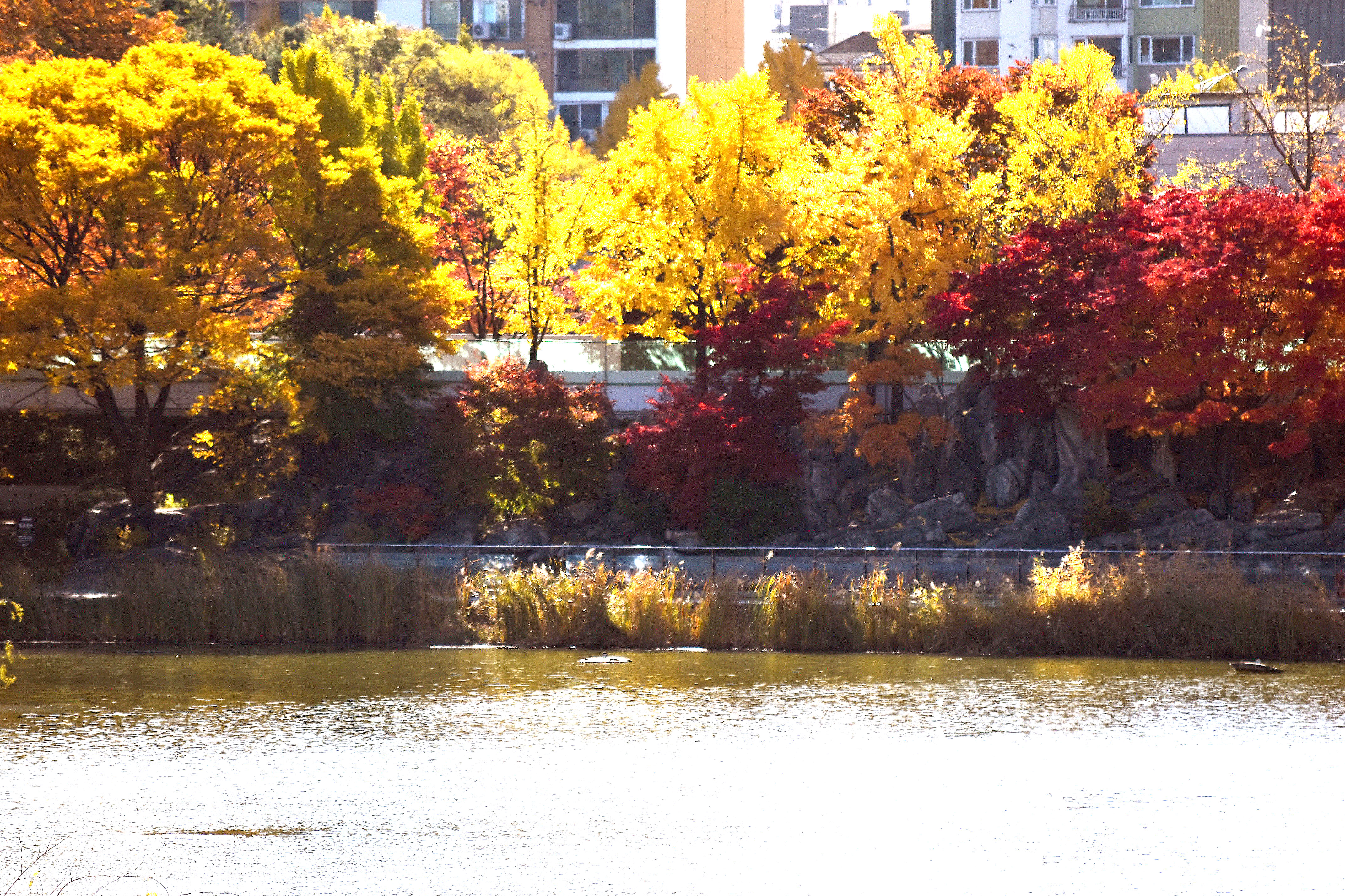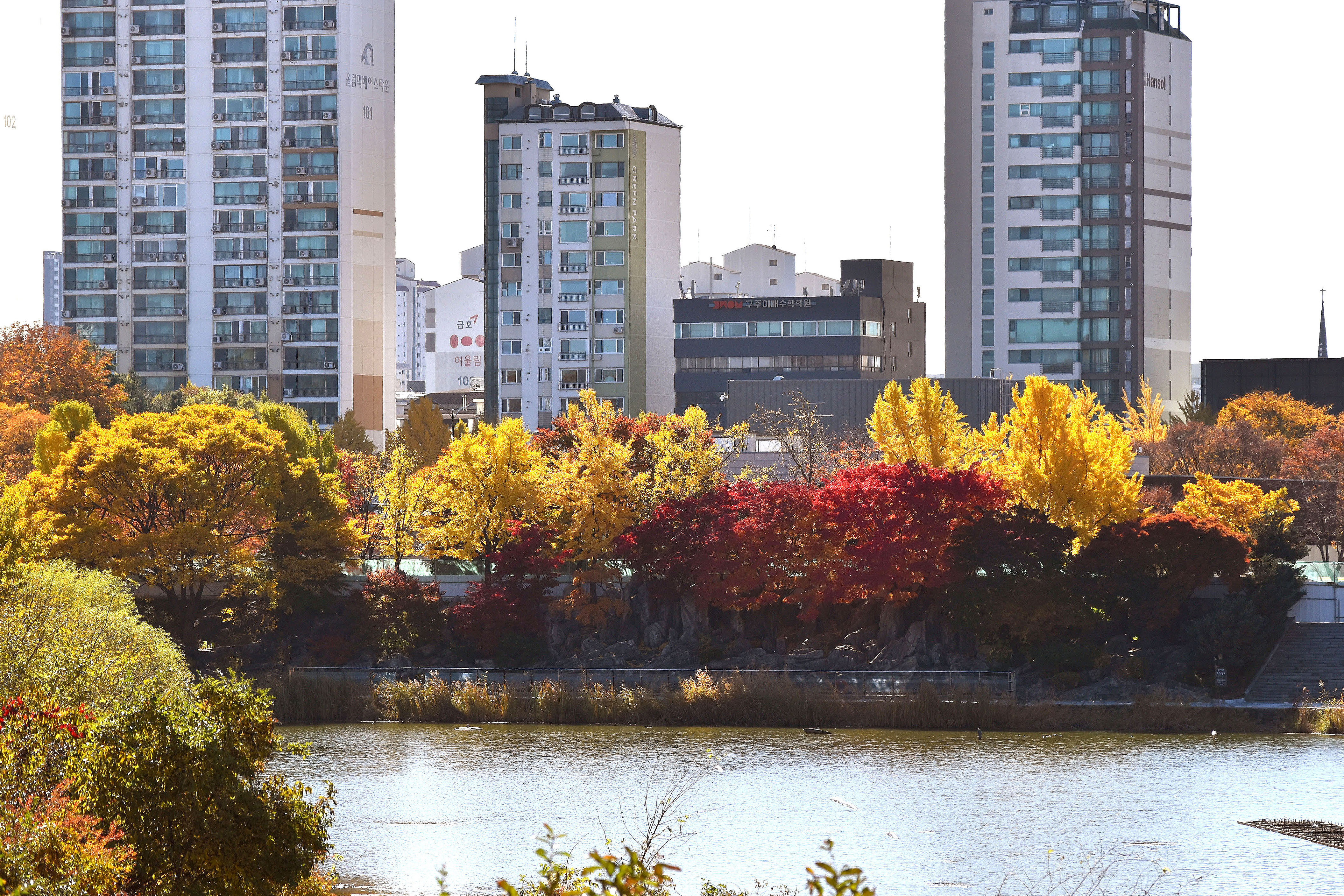 몽촌호수가의 아름다운 단풍은 요즘 몽촌호숫가에 큰 공사가 진행 중이라 진입할 수 없어 멀리서 최대한 줌인해서 담아