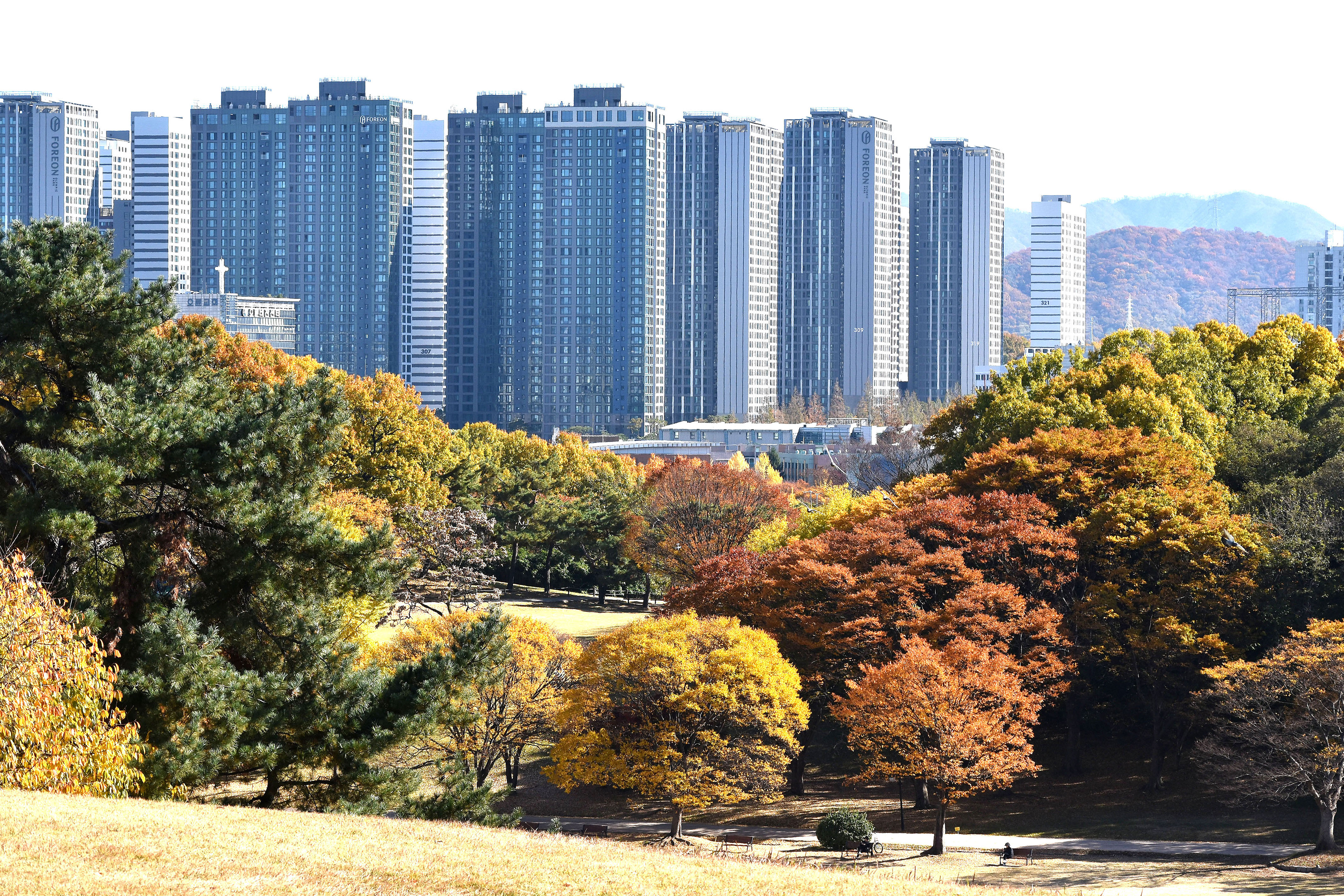해맞이 언덕에서 본 포레온 아파트(옛 둔촌 주공)