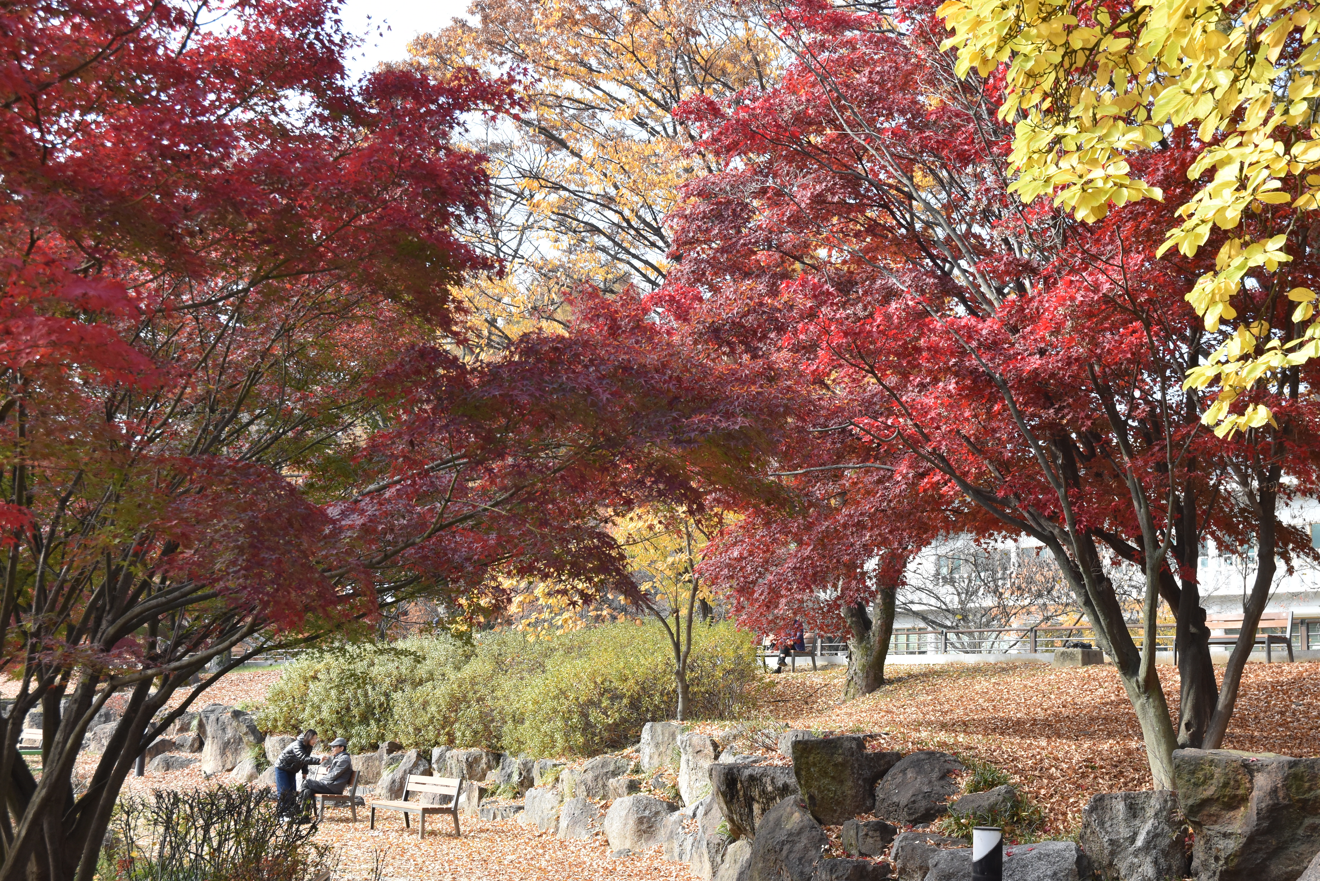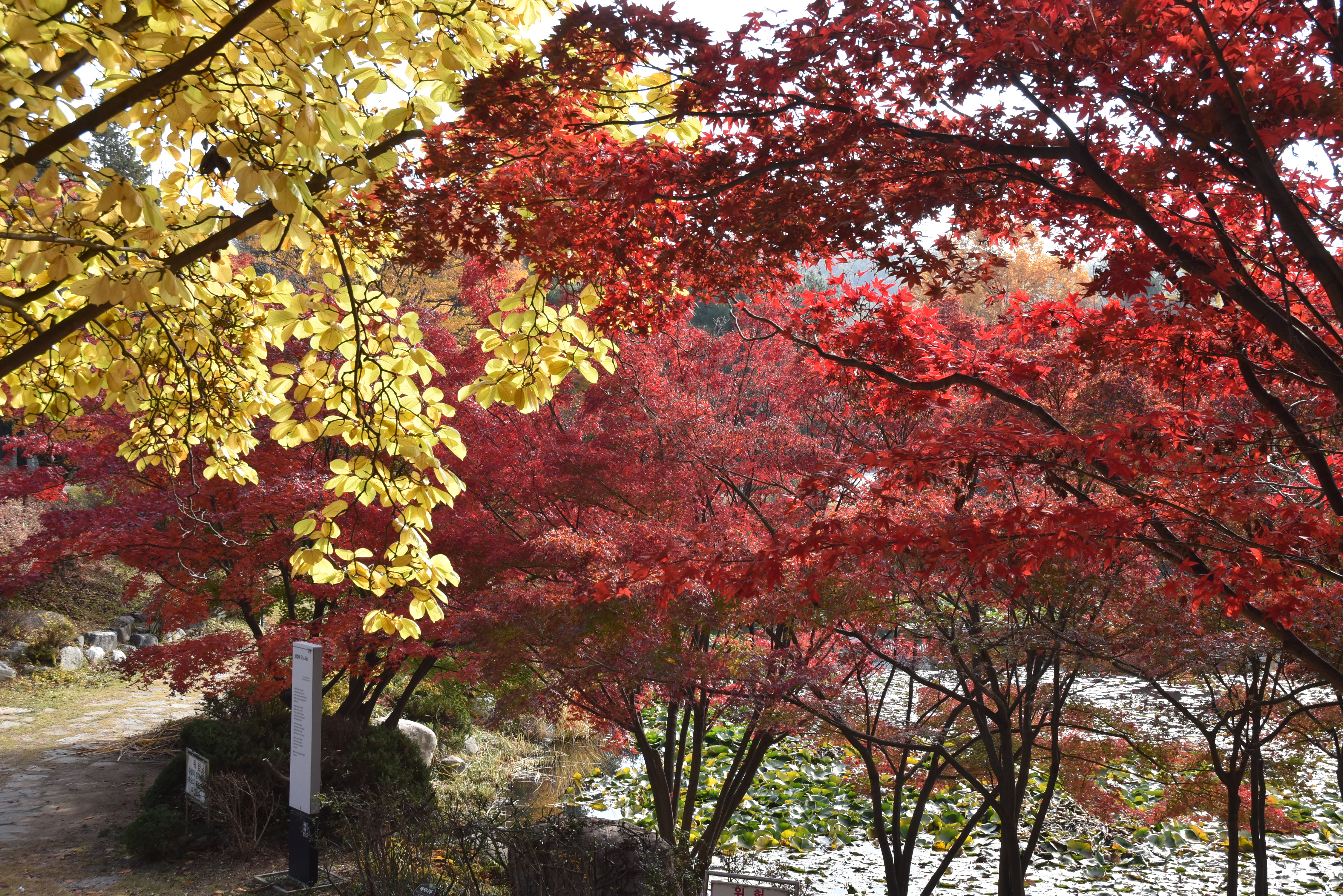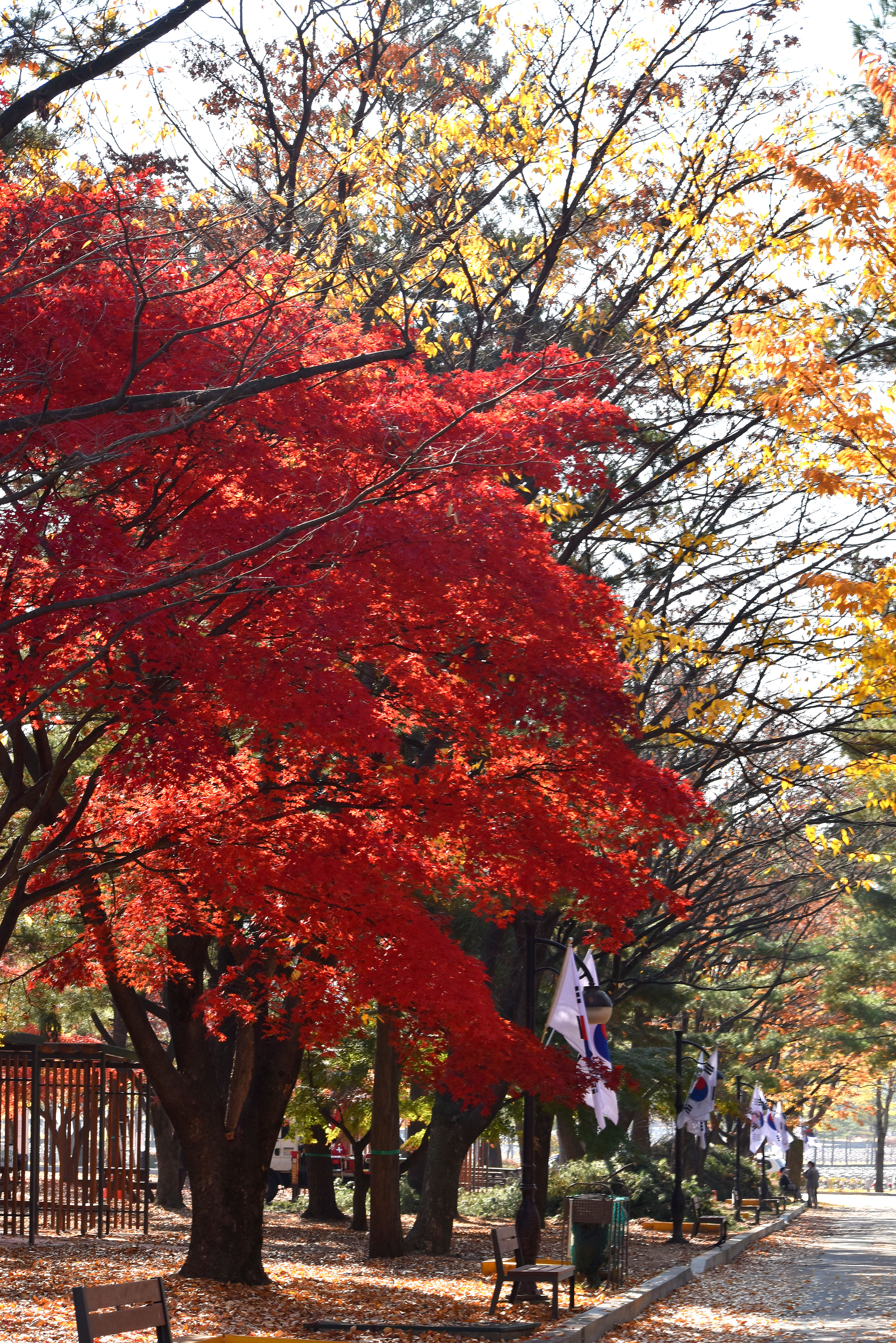 은행나무는 절정을 이루고 있고 단풍나무는 다소 이른편이지만 절정을 향해