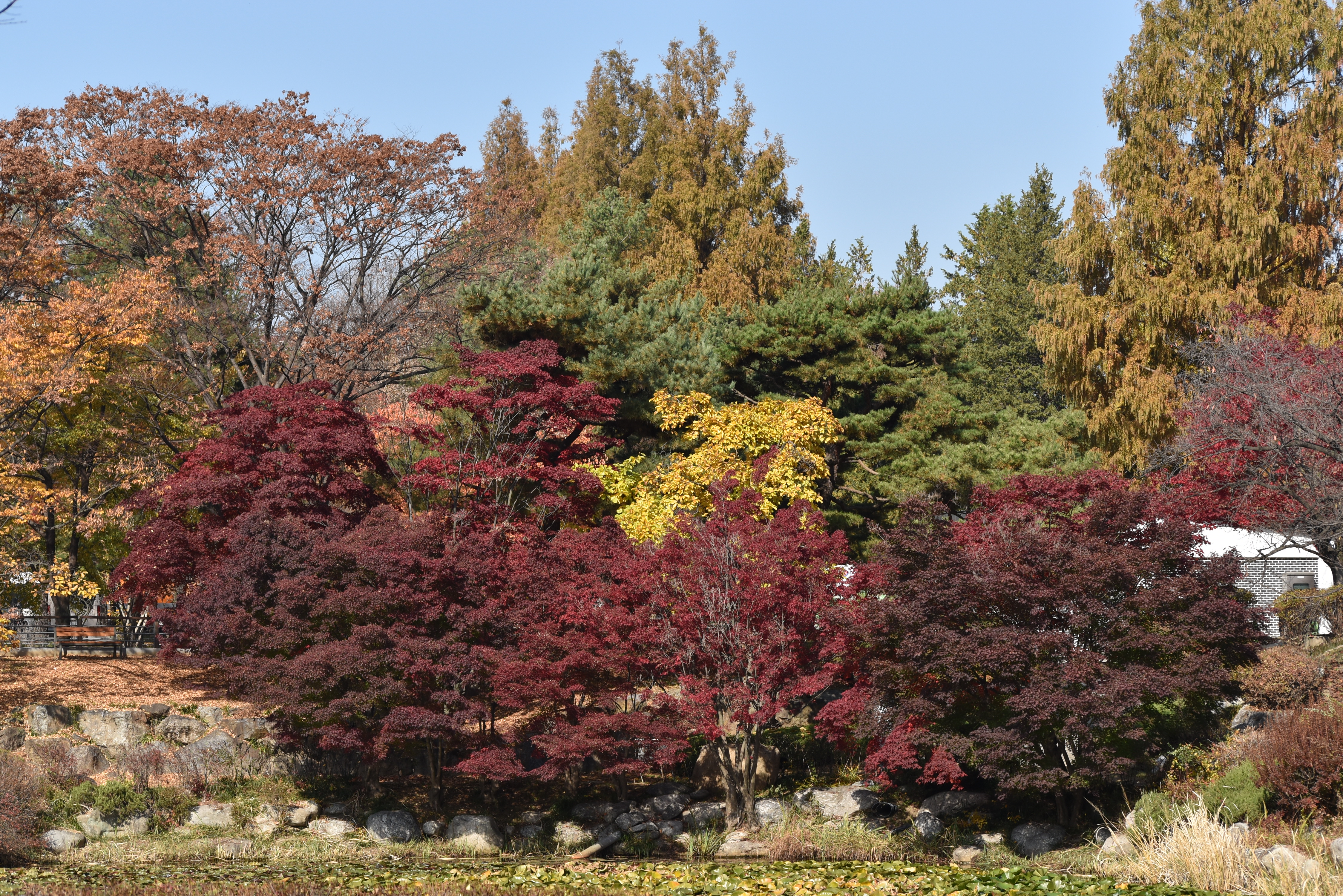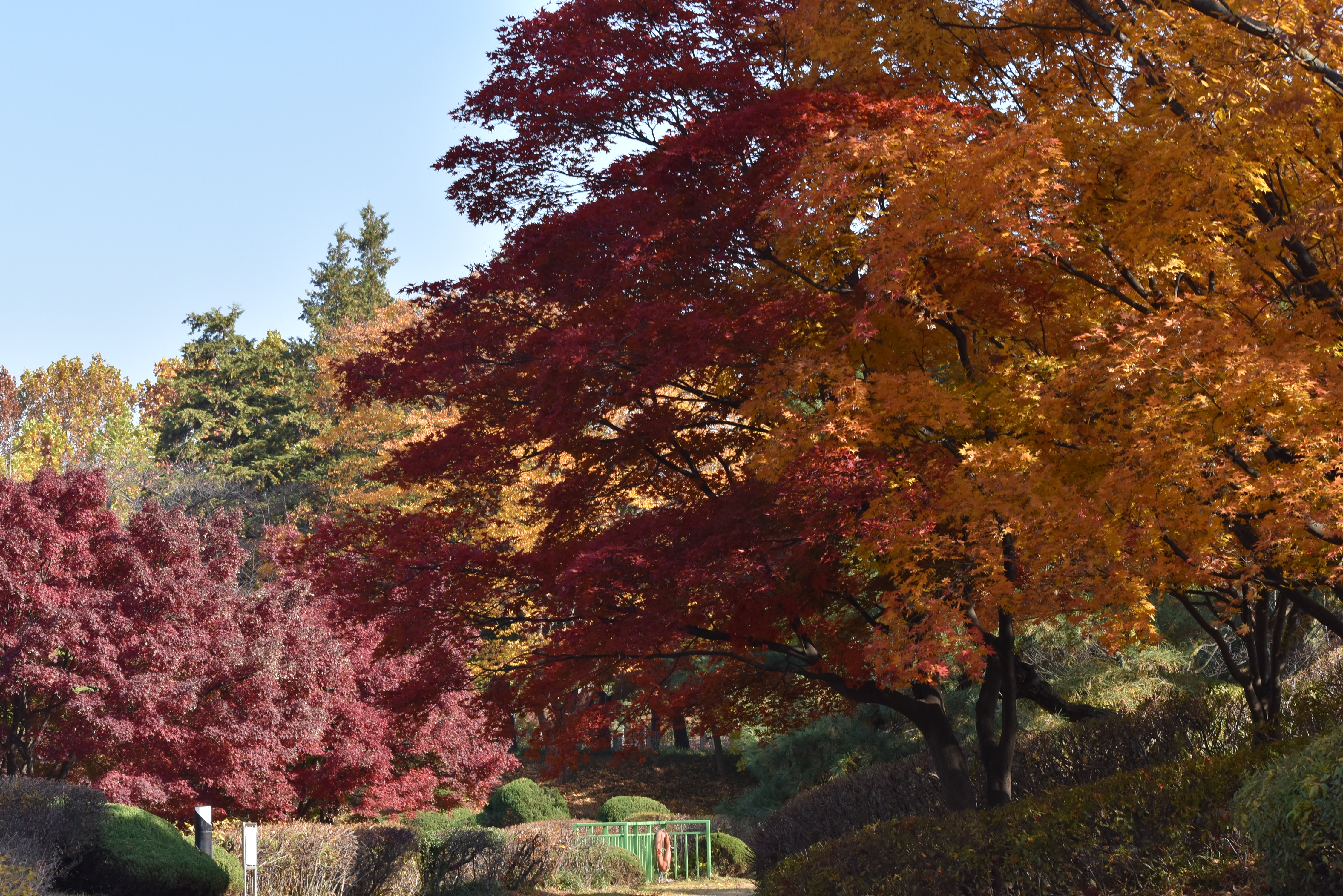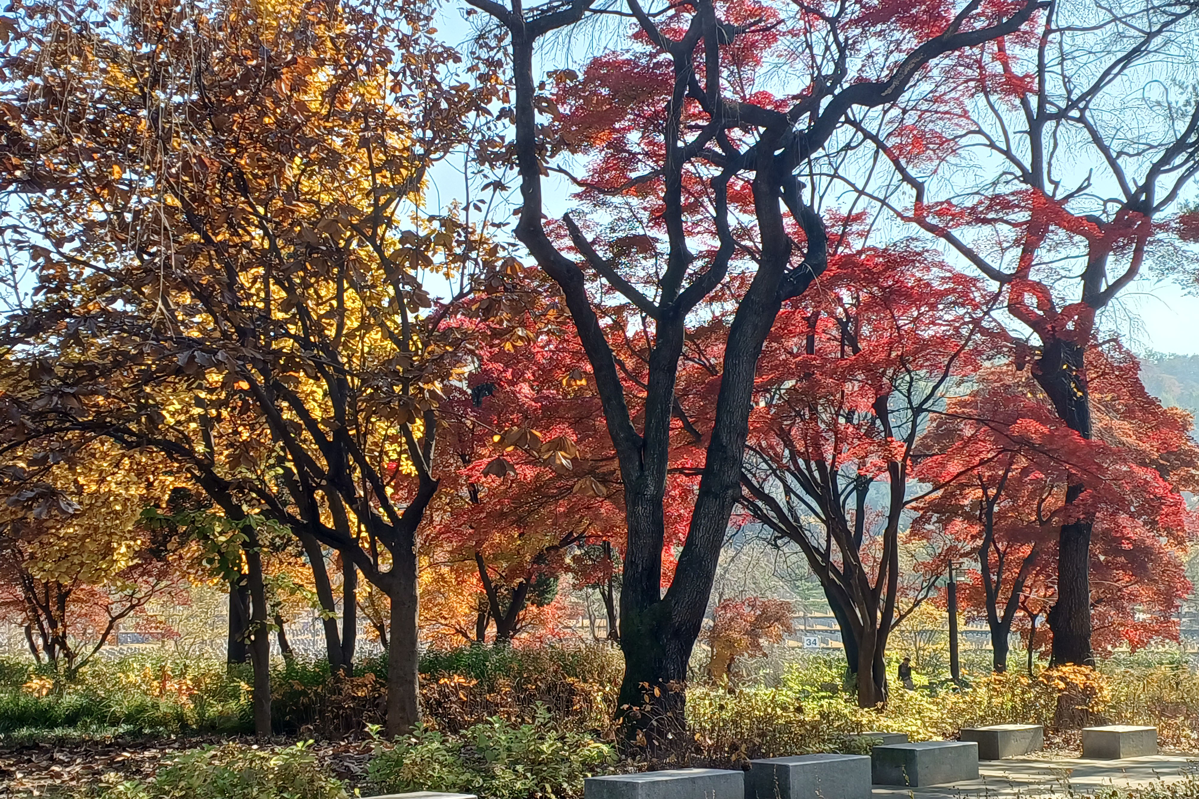 은행나무는 절정을 이루고 있고 단풍나무는 다소 이른편이지만 절정을 향해