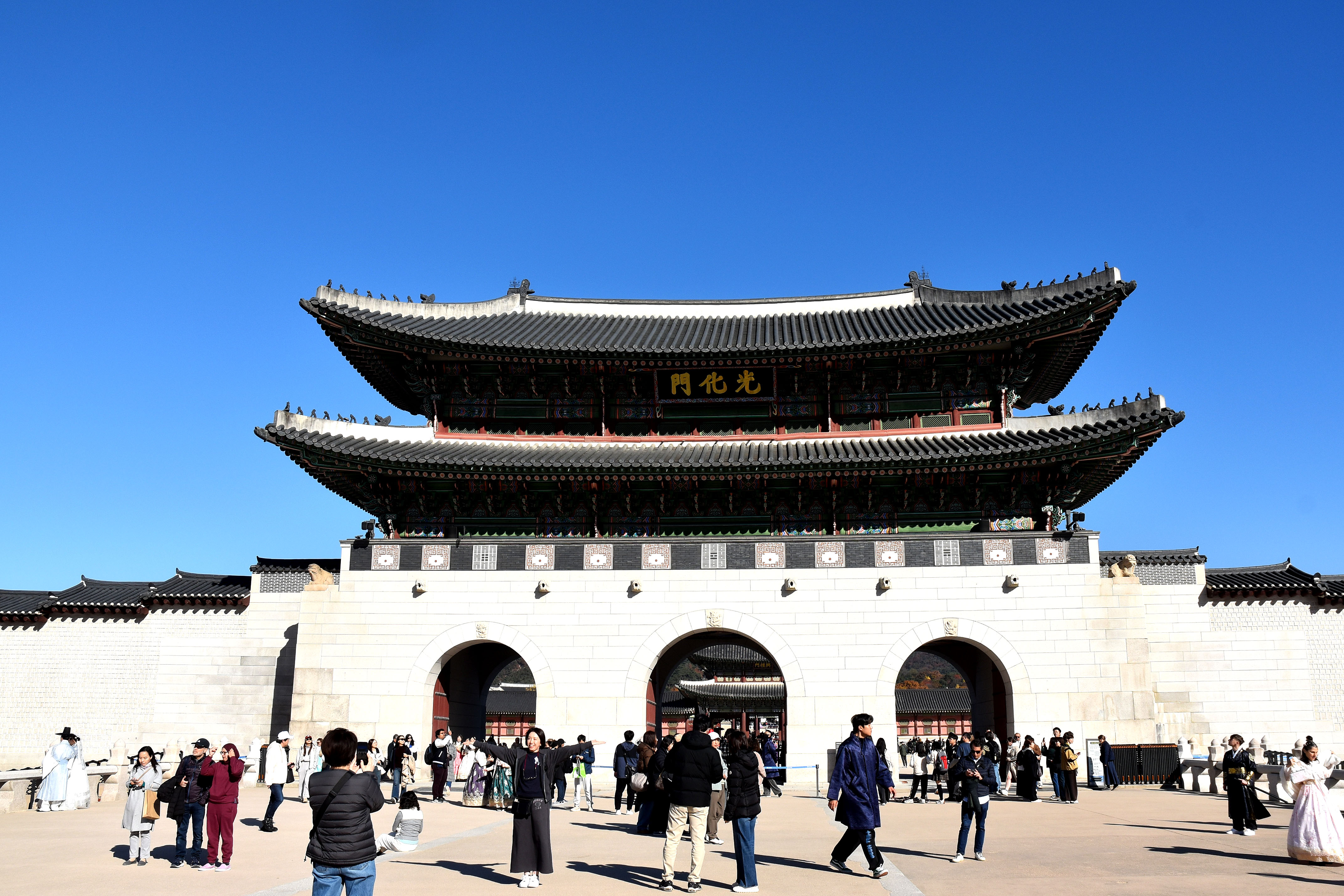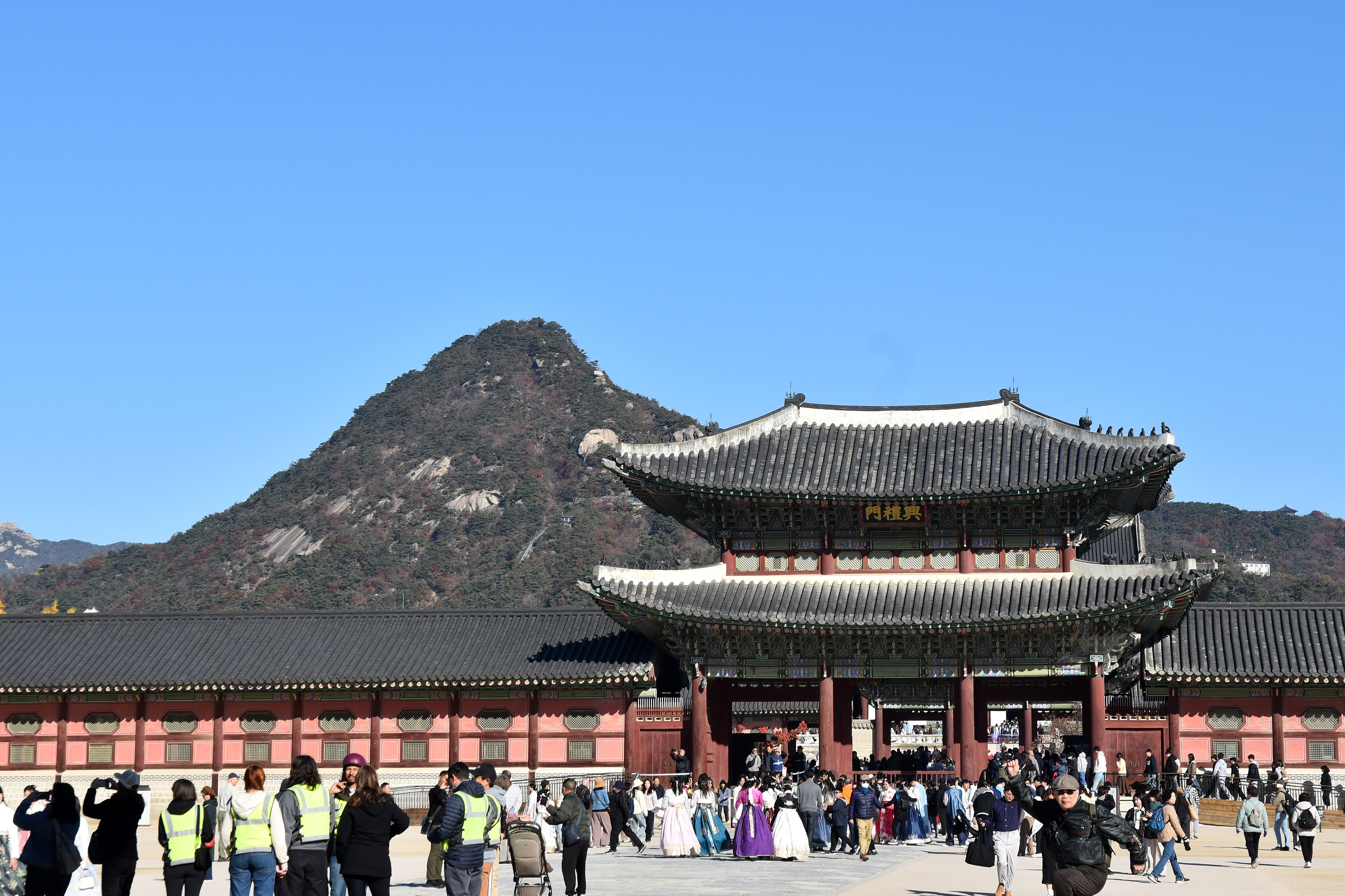 광화문 부근엔 언제나 그렇듯이 방문객들로 붐빈다