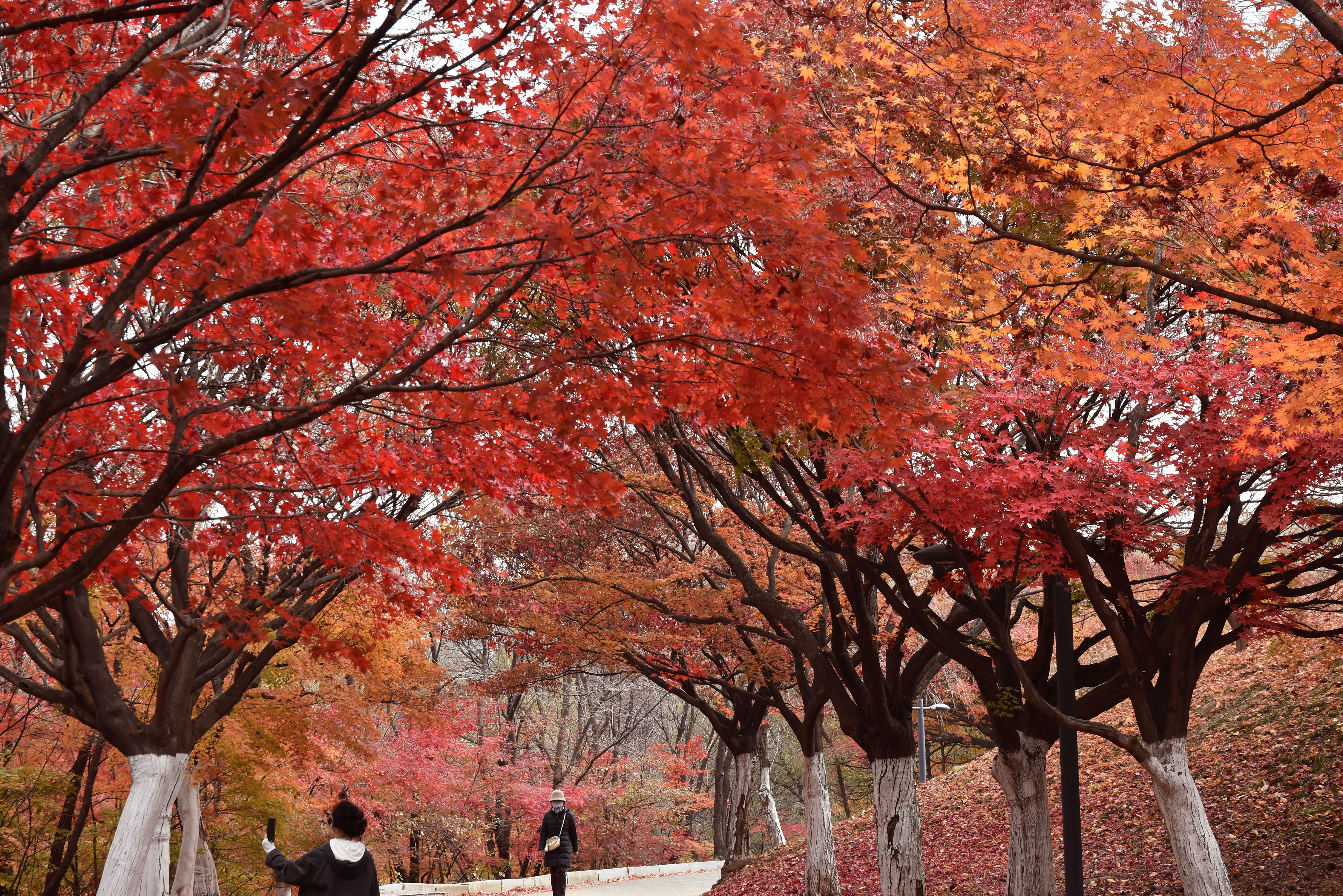 내가 올림픽공원에서 가장 좋아하는 단풍 스팟인 몽촌정 주변의 단풍길에서