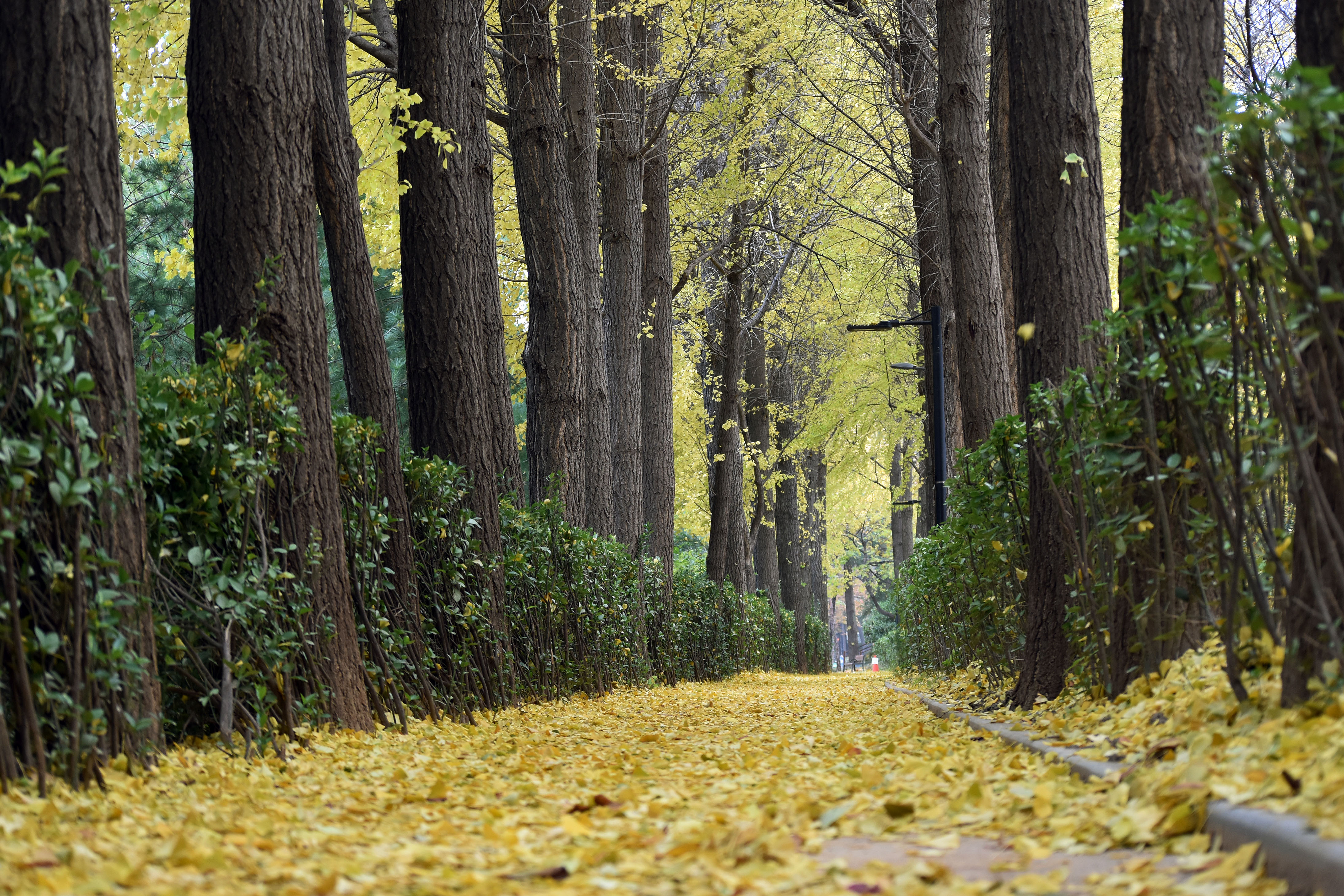 샛노란 카펫처럼 보기도 좋고 밟는 촉감도 좋은데 왜 궂이 치우는지.....