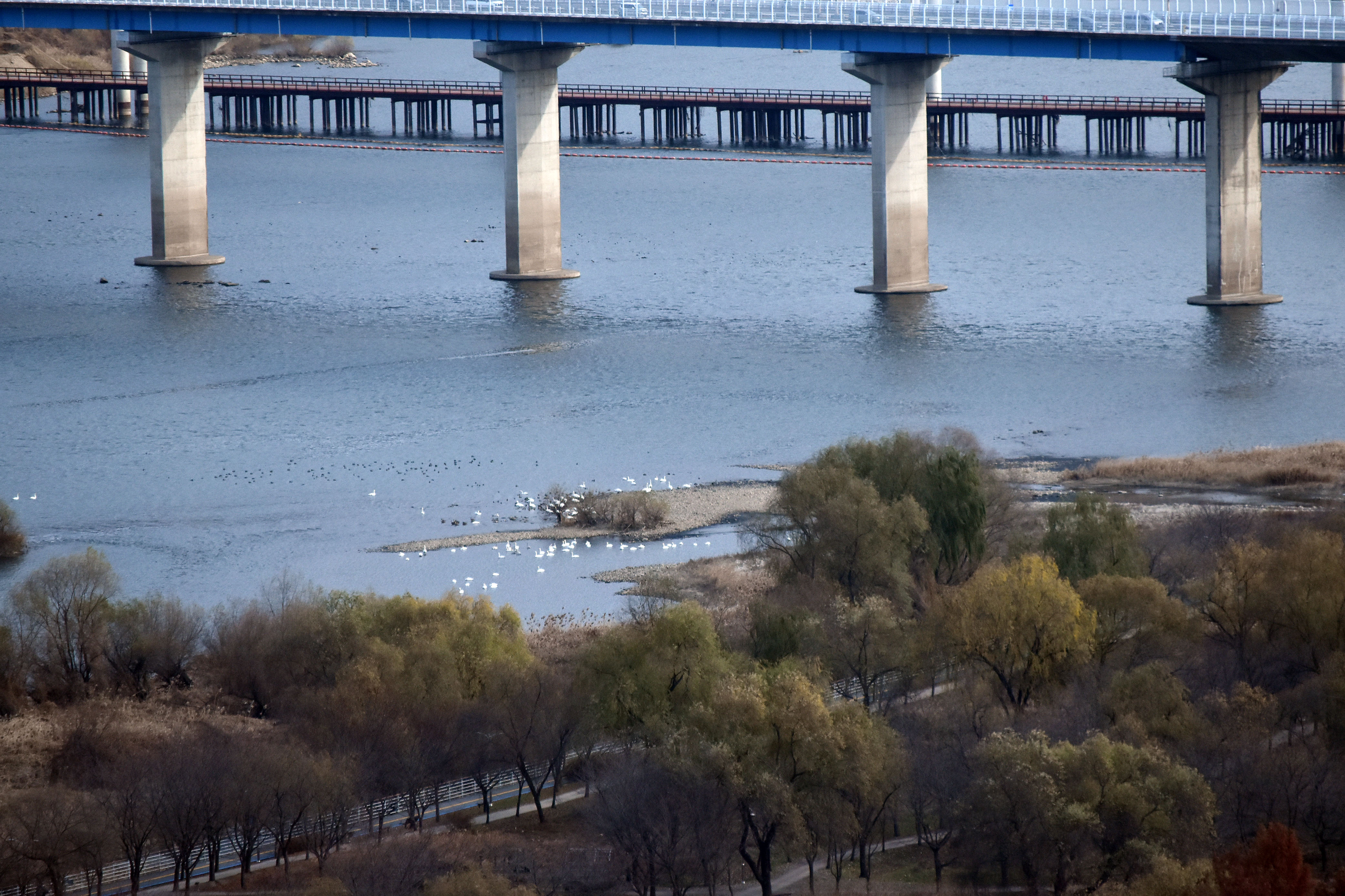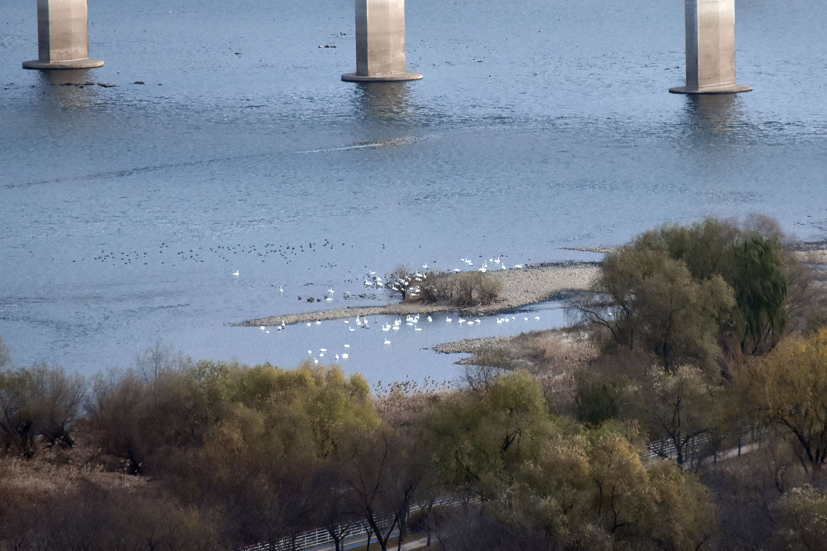 당정섬에는 철따라 철새들이 많이 몰려오는 곳이다. 특히 겨울철엔 고니들의 월동지로 유명하다