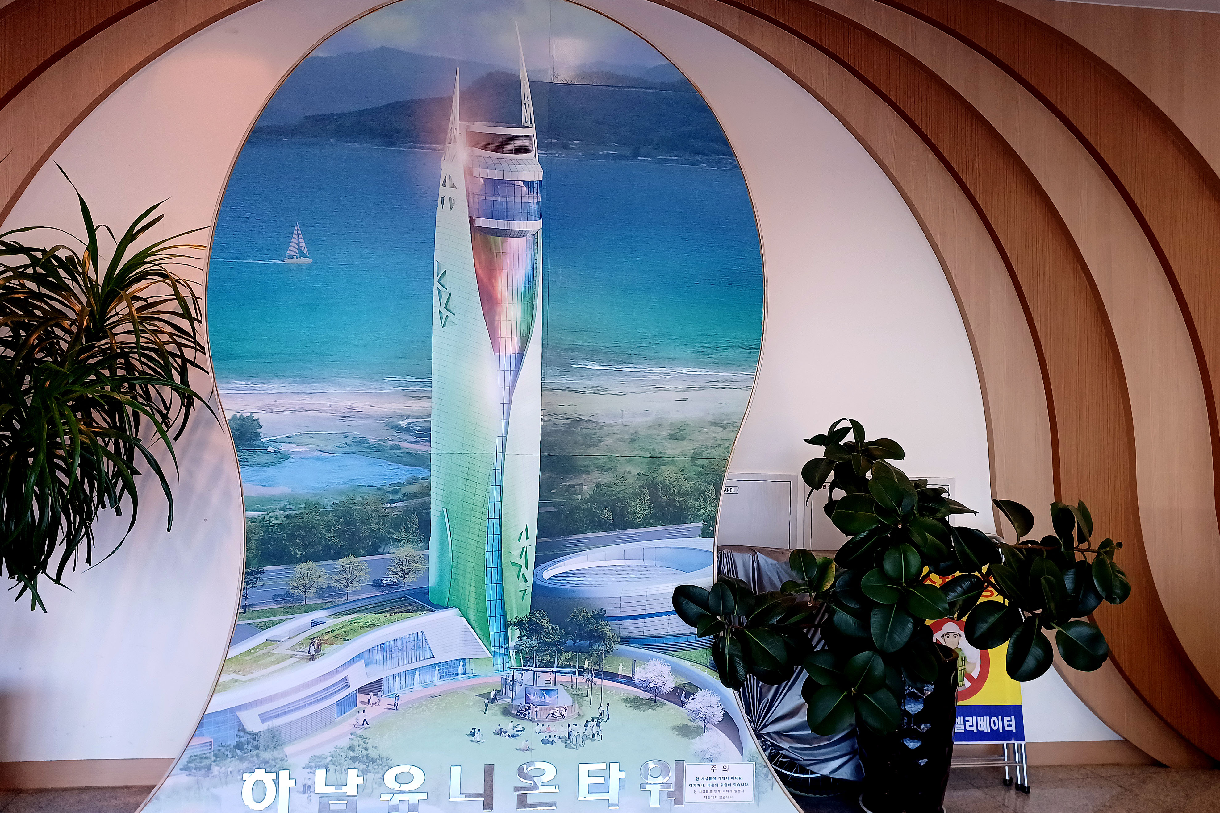 유니온타워 로비의 전망대 오르는 엘리베이터 옆 그림