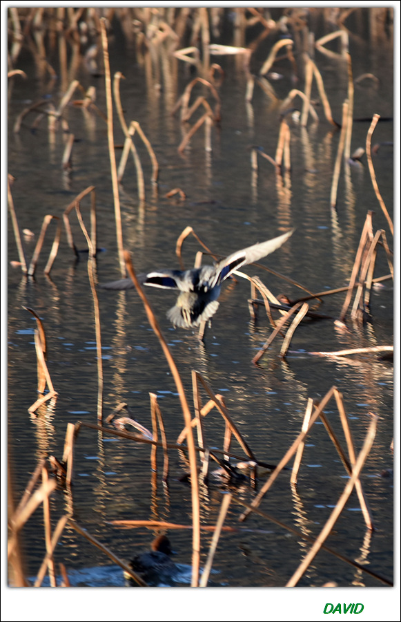 비상하는 오리 한마리