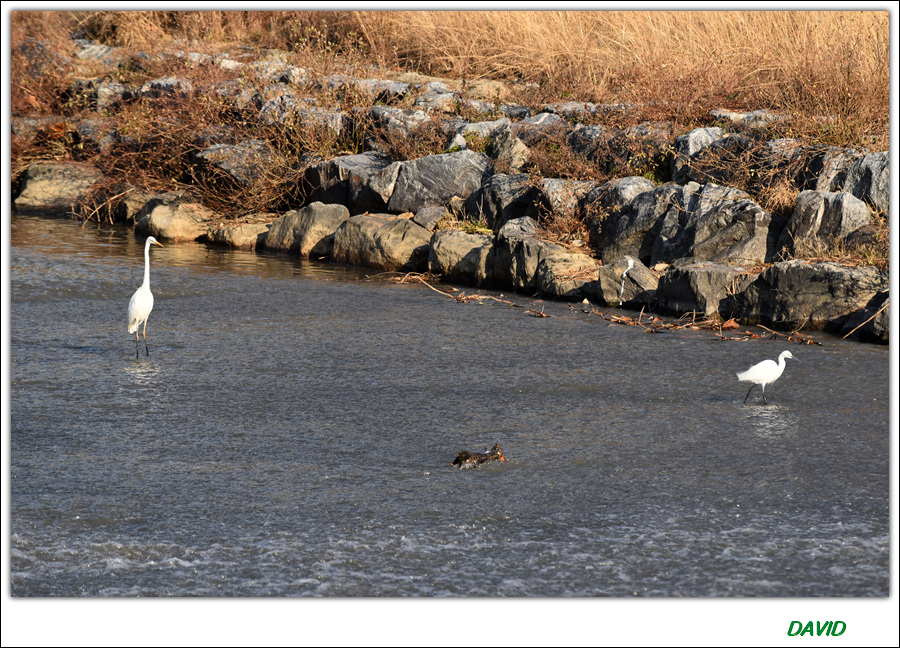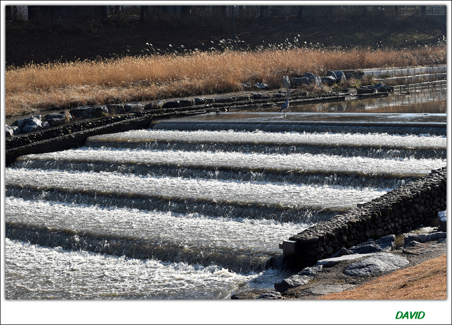 계단식 폭포 스타일의 어로에는 힘들게 올라오는 물고기를 쉽게 잡으려는 새들이 길목을 지키고 있다