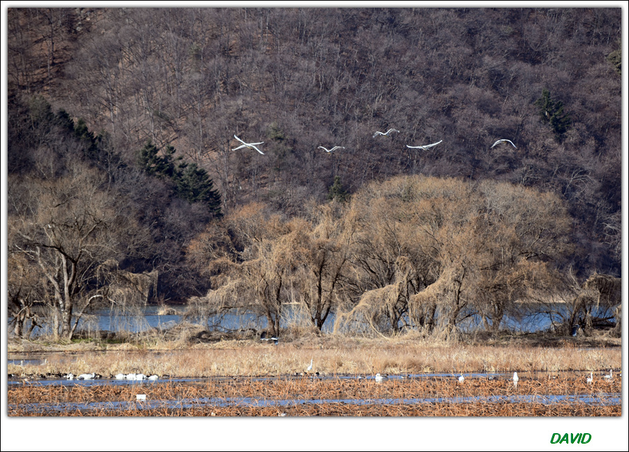 이때는 대부분의 고니들은 고향으로 돌아가고 지각생 철새들 극히 일부가 돌아가는