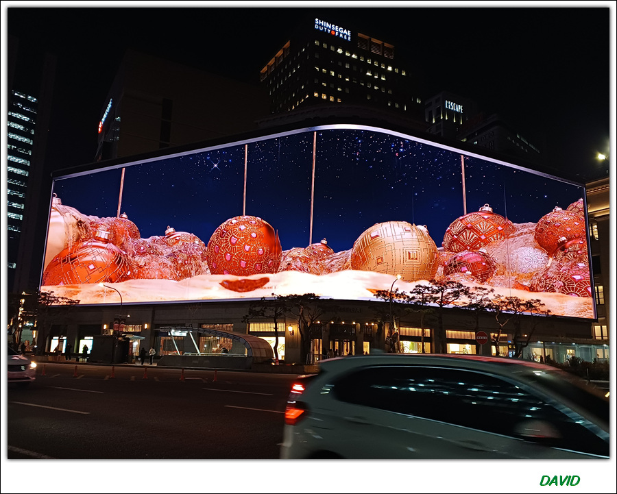 크리스마스이브를 한주 남겨놓은 12월 17일 저녁 신세계백화점의 미디어 파사드를