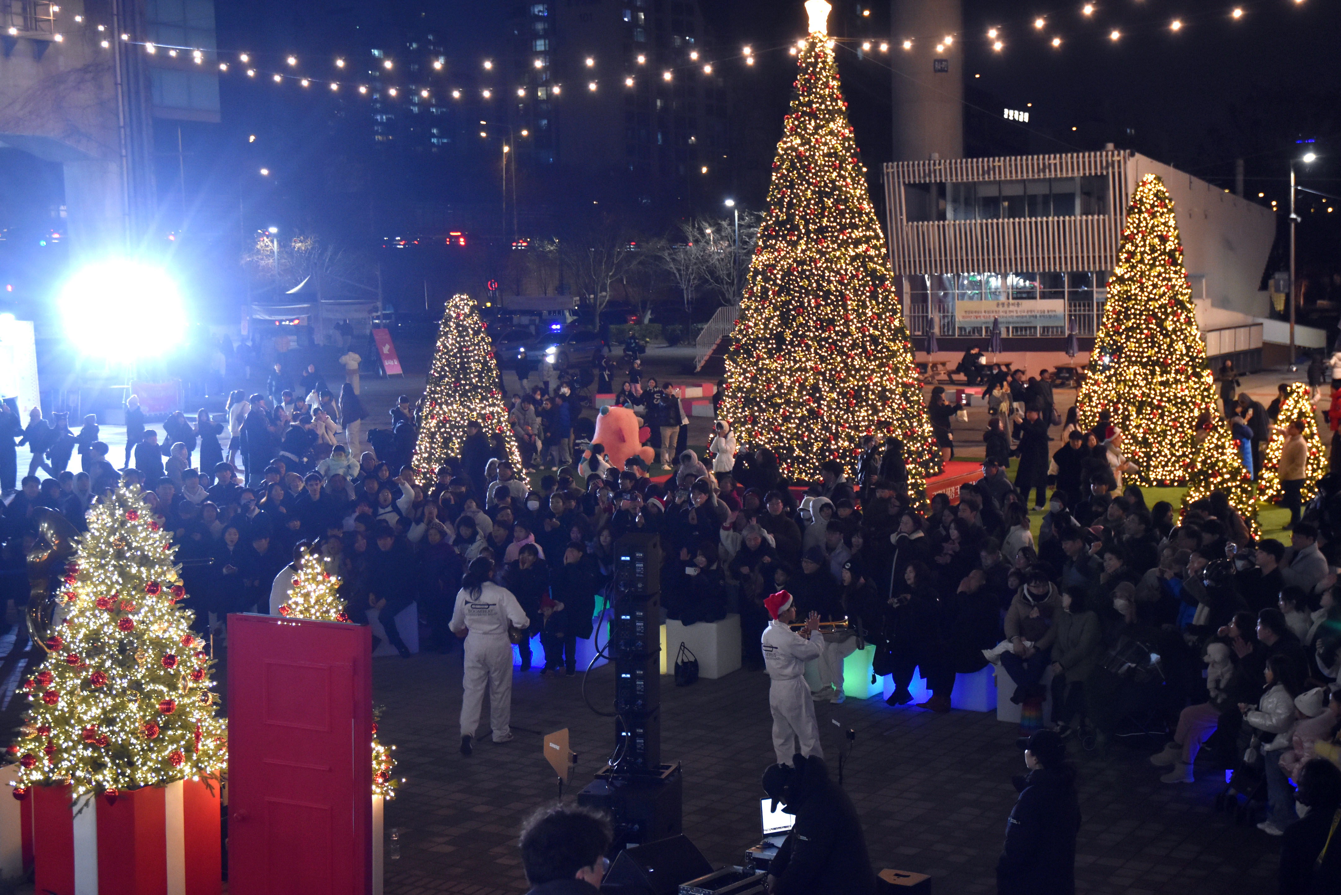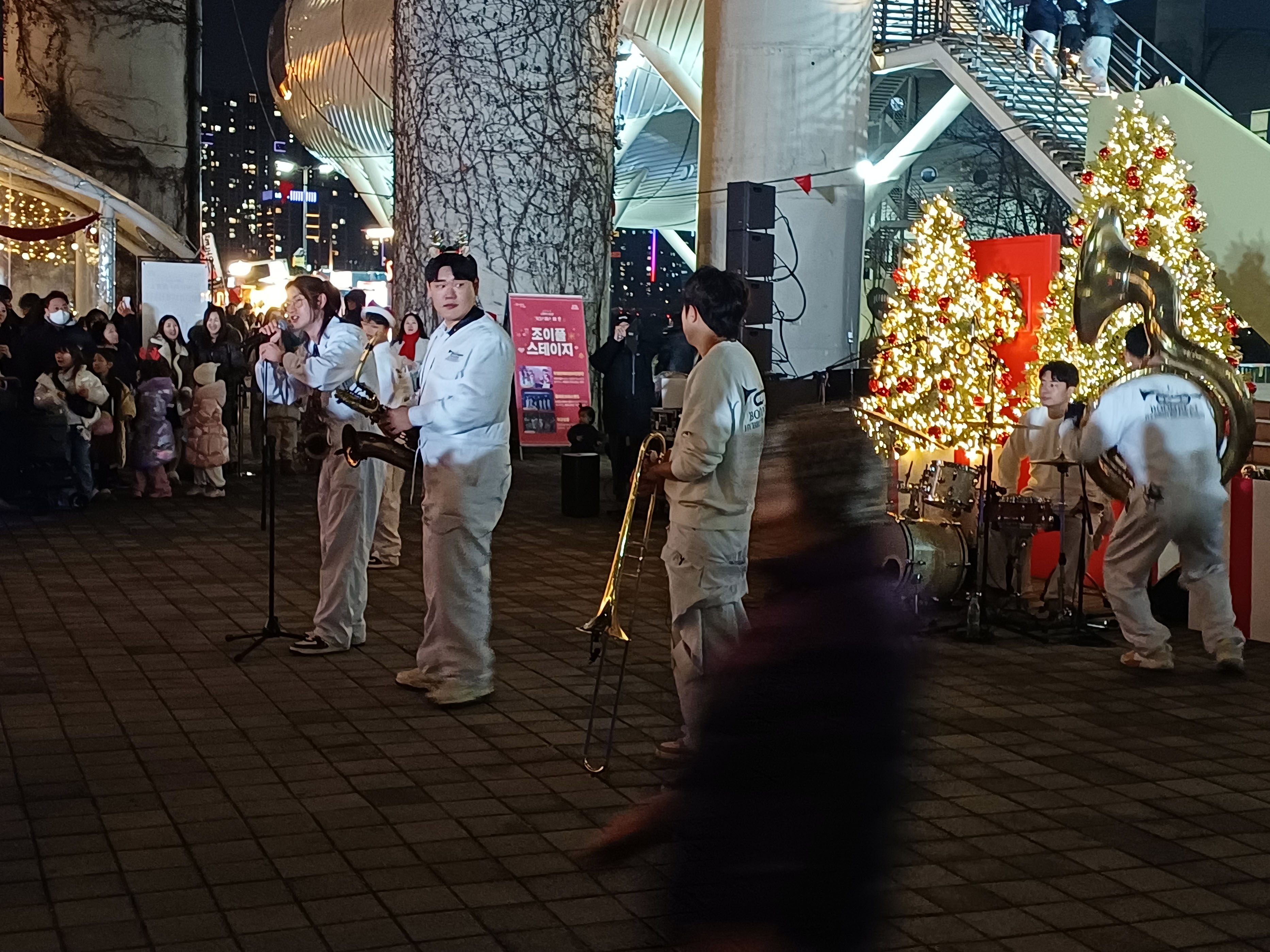 어제 뚝섬한강공원 그피스마스 마켓에서 연주한 Boombeat Brass Band의 연주중