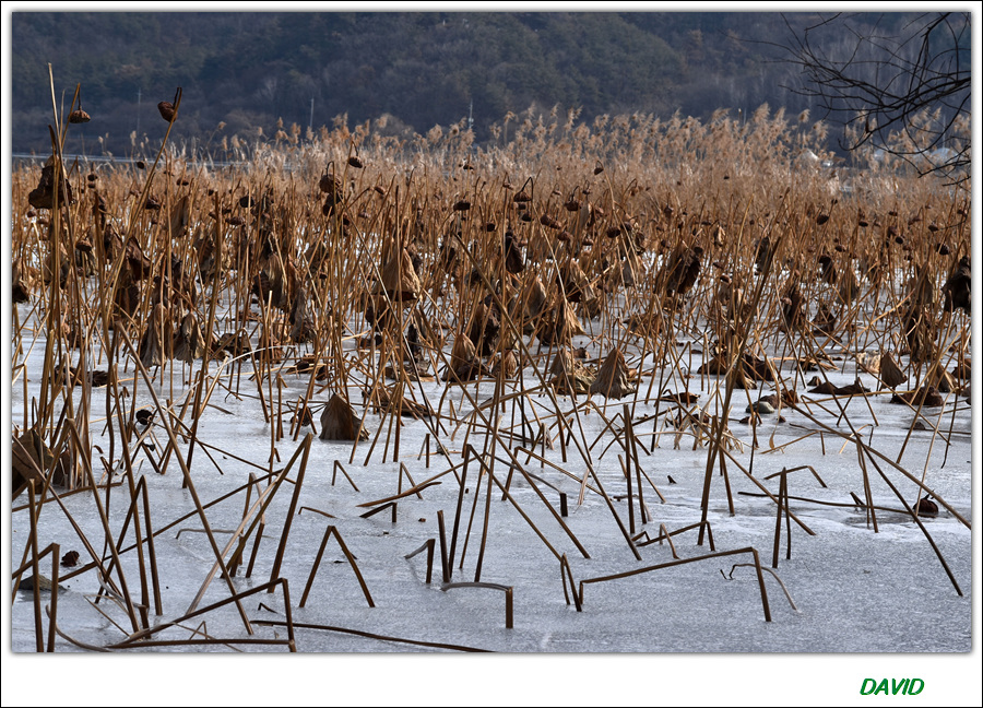 말라죽은 연잎과 연줄기도 나름 멋진 모습을 연출한다.
