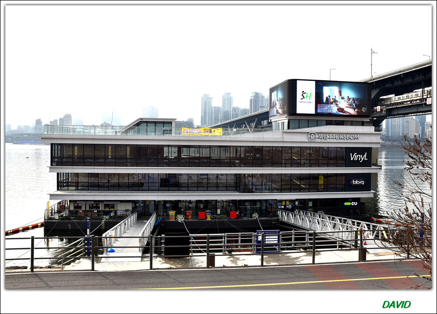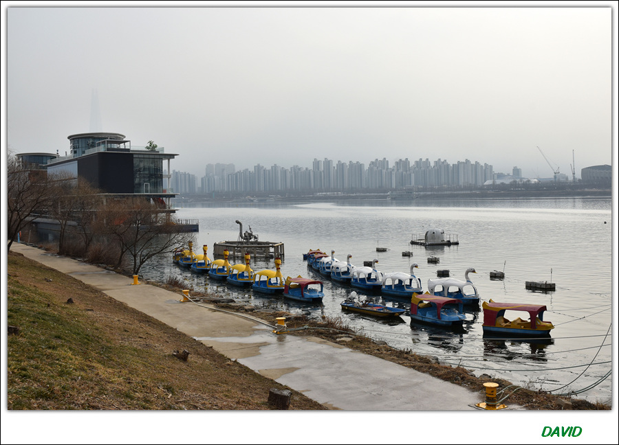 겨울철이라 꽃도 나무도 별로 볼거리가 없어 강변의 풍경과 한강 버스 운영을 앞두고