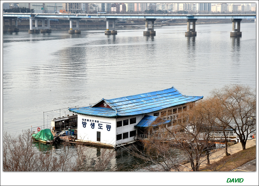 조계종 사찰인 방생도량(아마도 우리나라의 유일한 강물위의 사찰이 아닐까?)과 영동대교