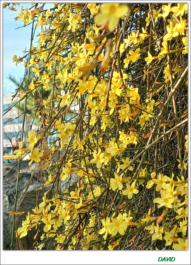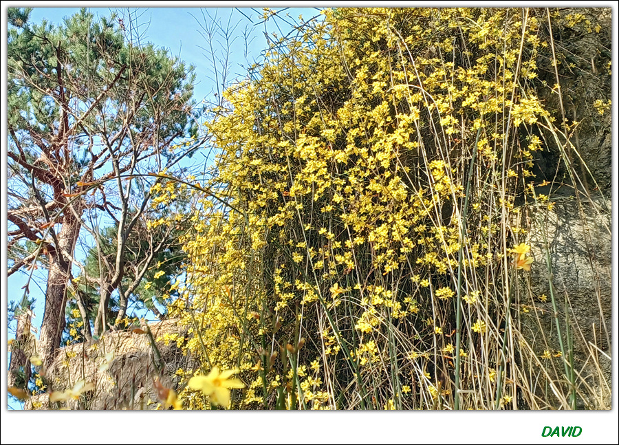 영춘화가 만개한 모습을 보고 핸폰으로 동영상과 사진을 모두 담아왔다.