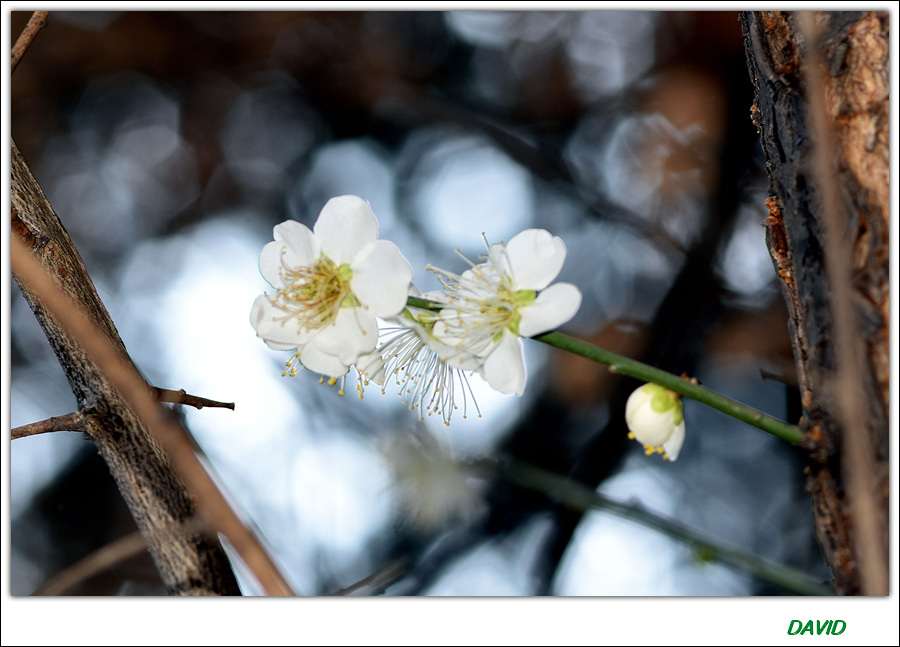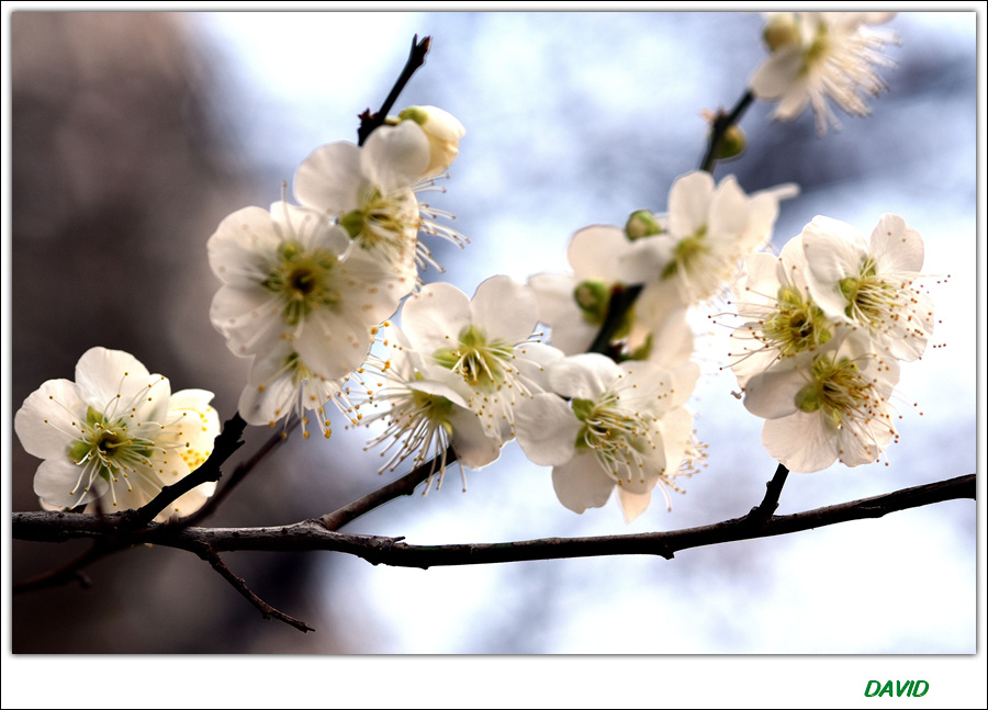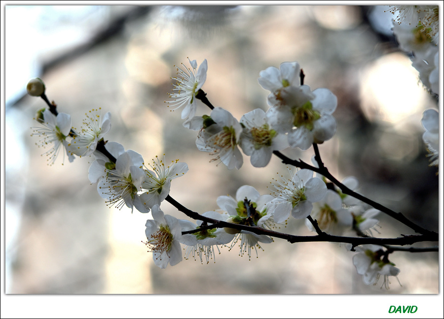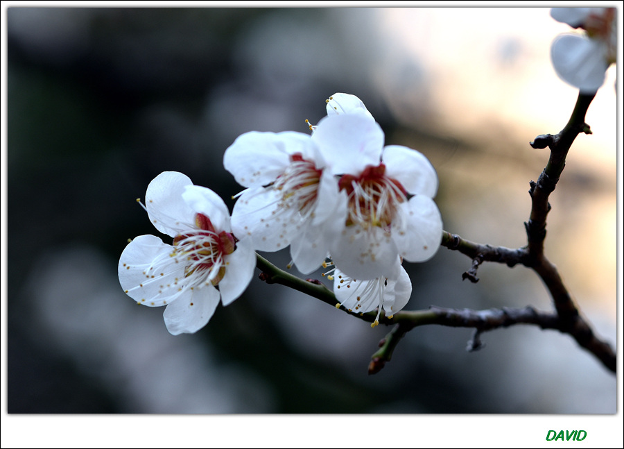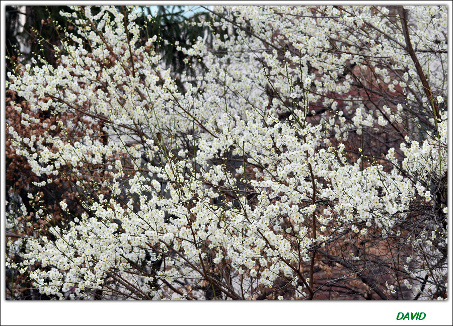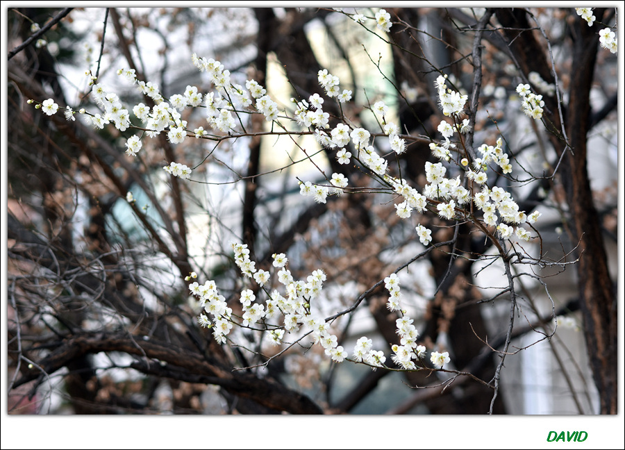 매화는 다섯 장의 순결한 백색 꽃잎을 가진 아름다운 꽃이다.