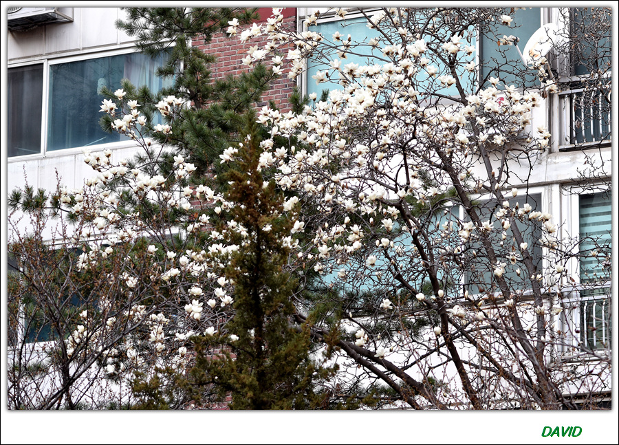 목련은 개화 시작한지 얼마 되지않아 아직 절정기에 이르려면 며칠 더 있어야 할듯.