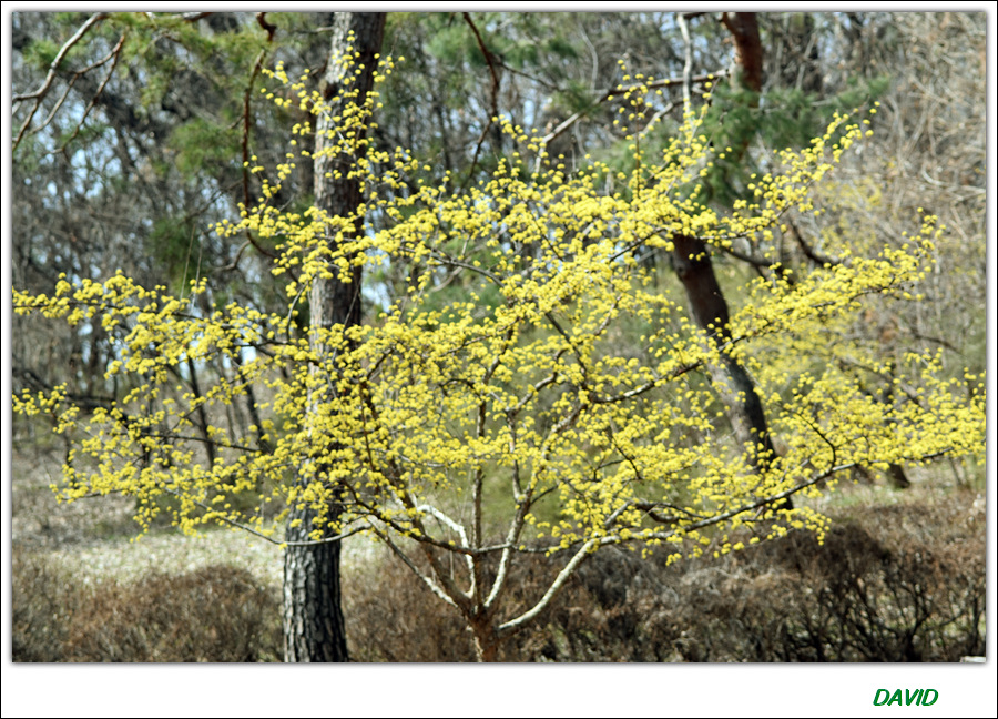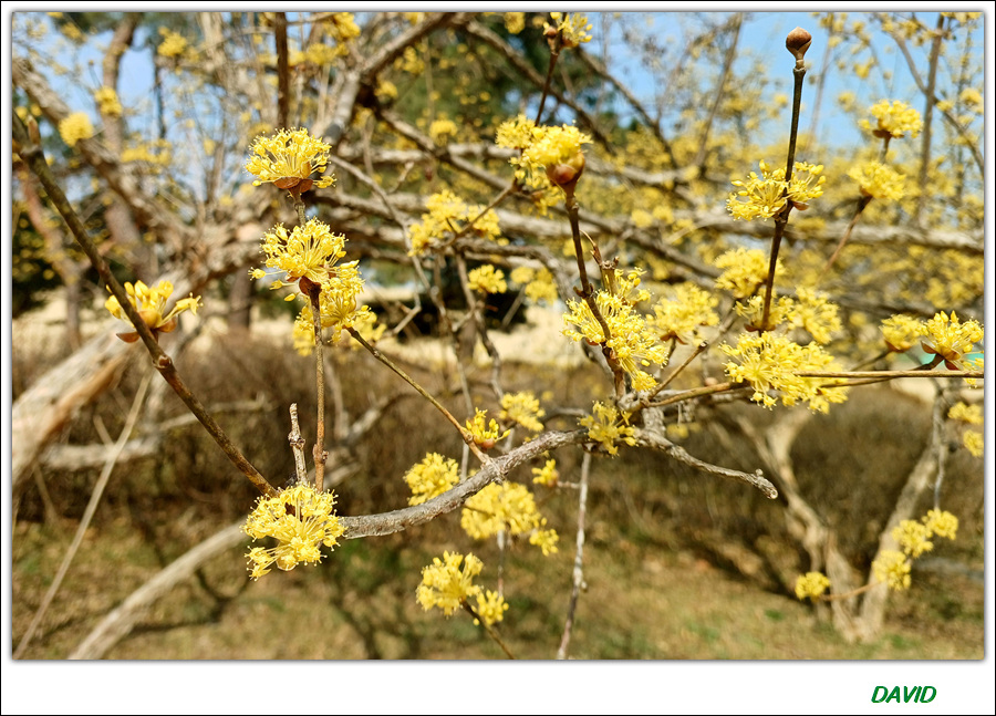 올봄 들어서 3월 중 올림픽공원에서 세 번째로 담아 온 산수유 꽃의 모습이다.